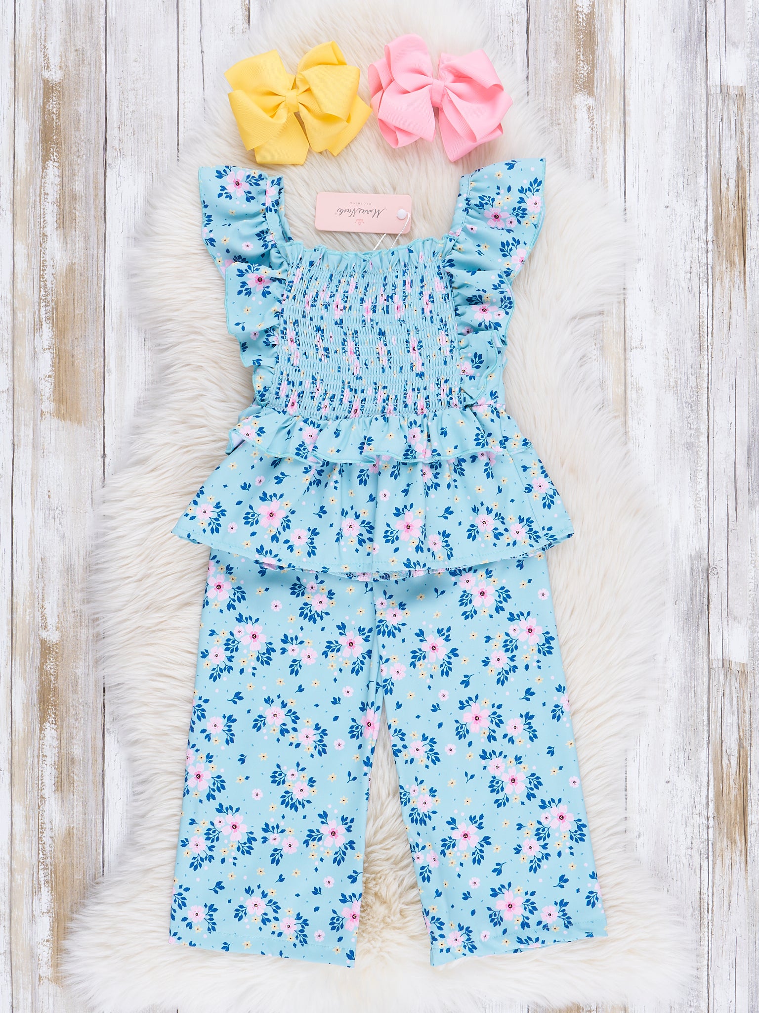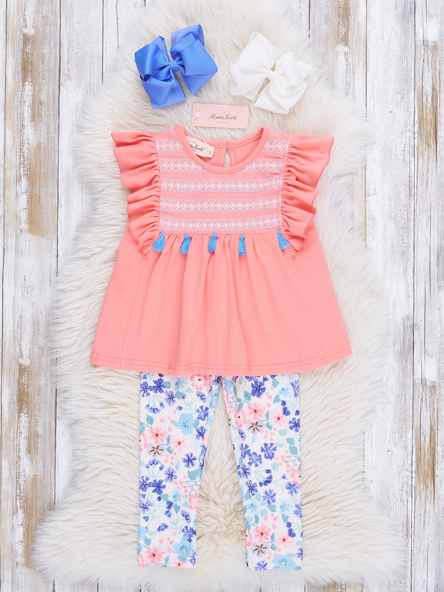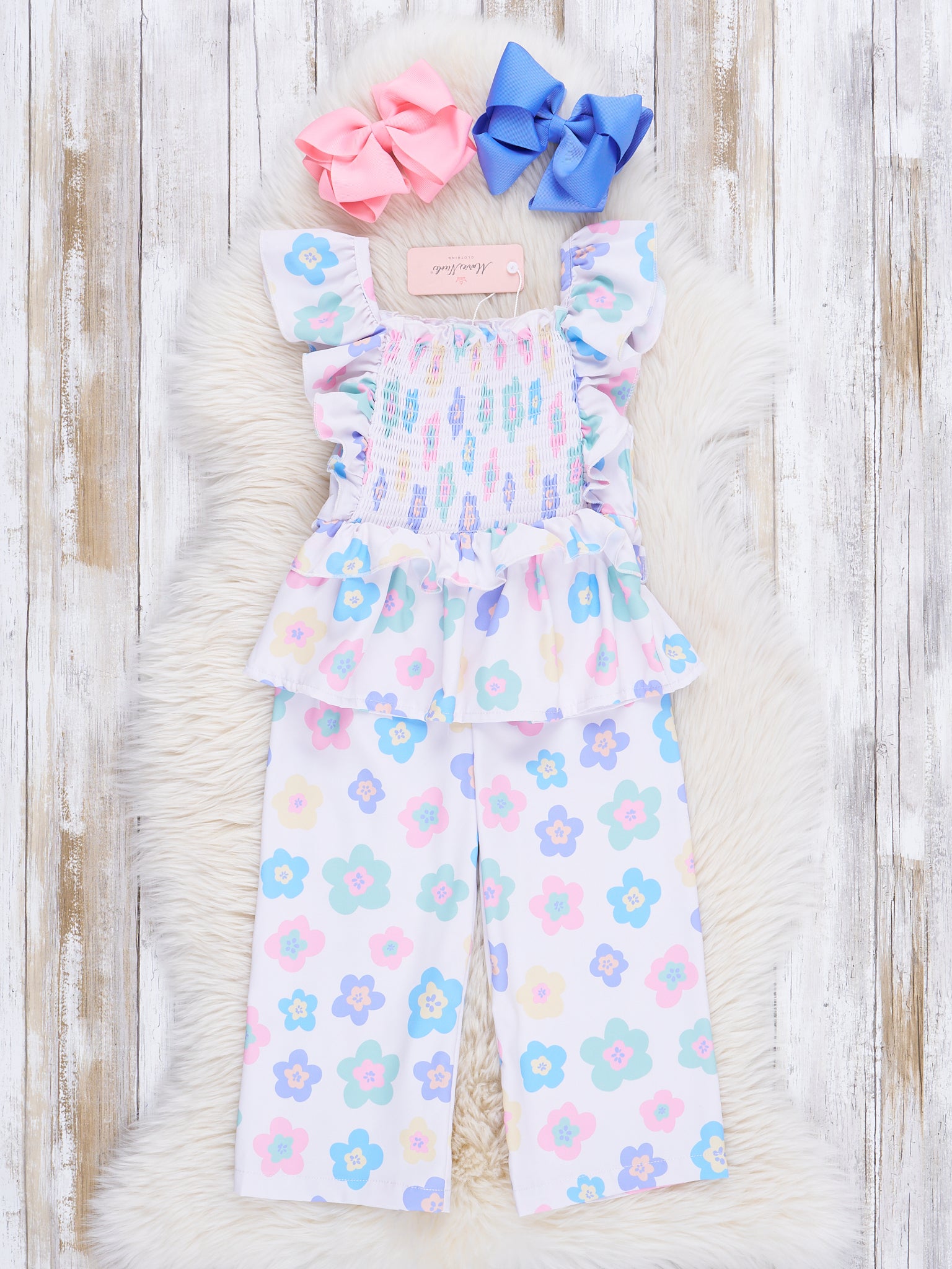 Blush & Lilac Blooms Smocked Ruffle Outfit