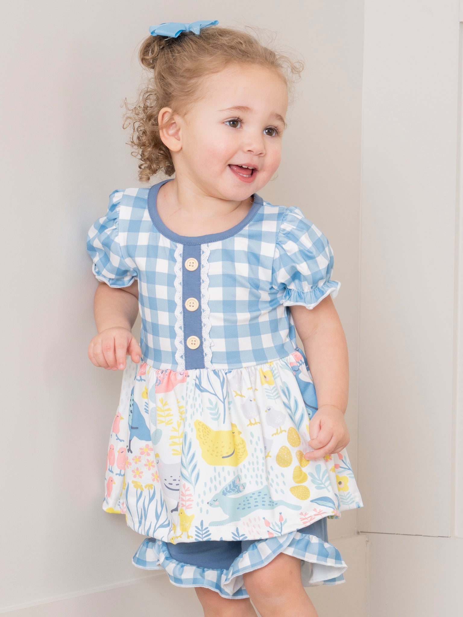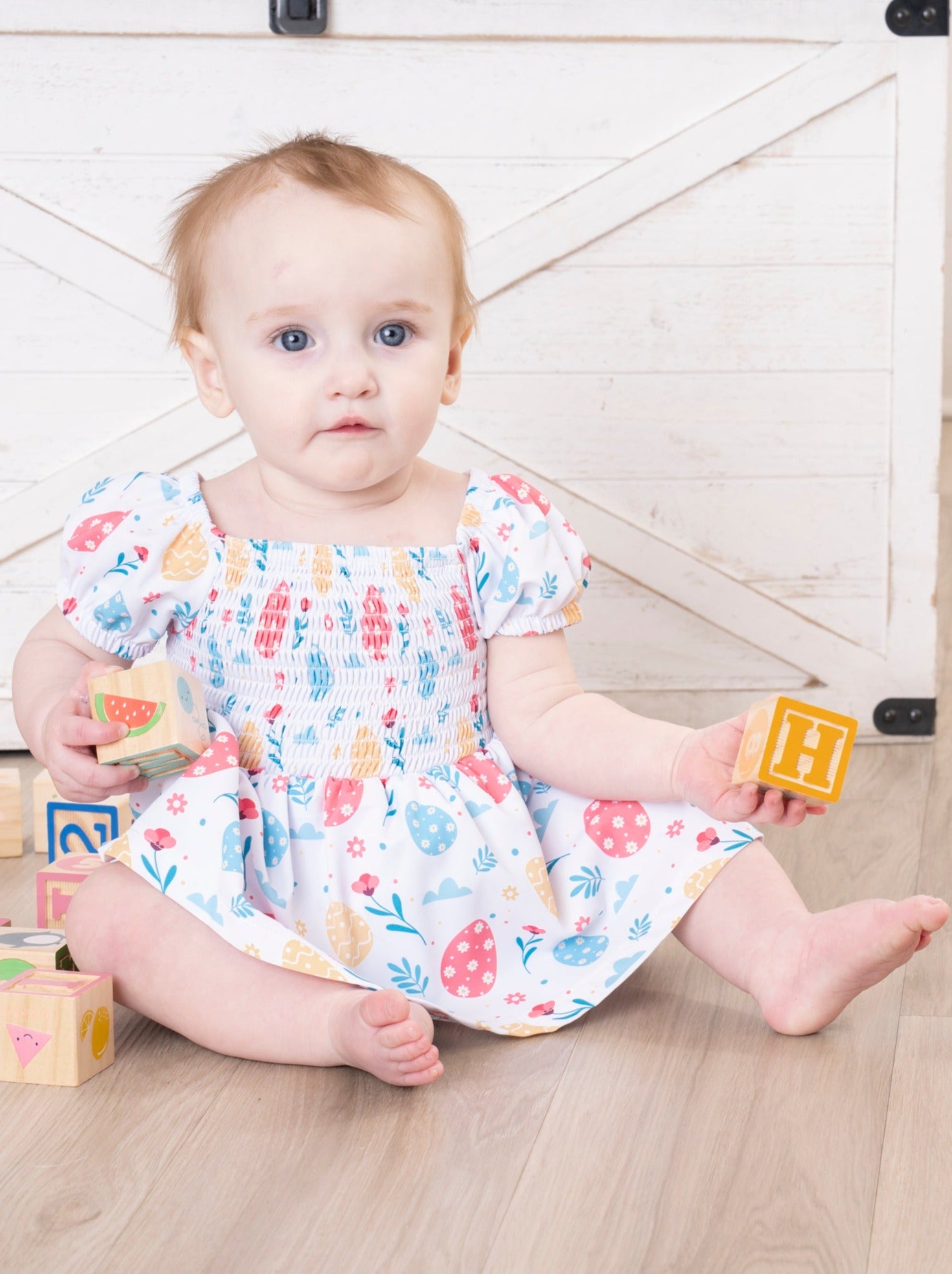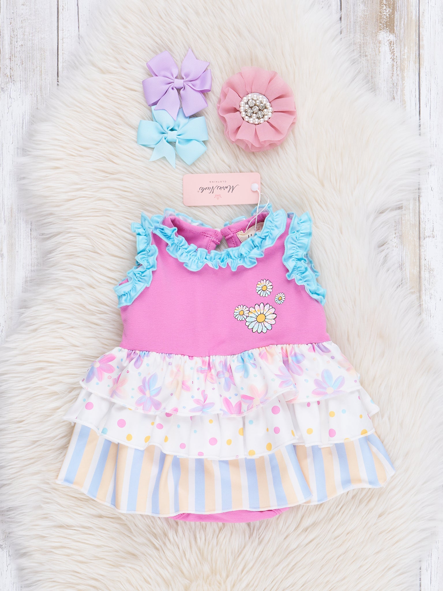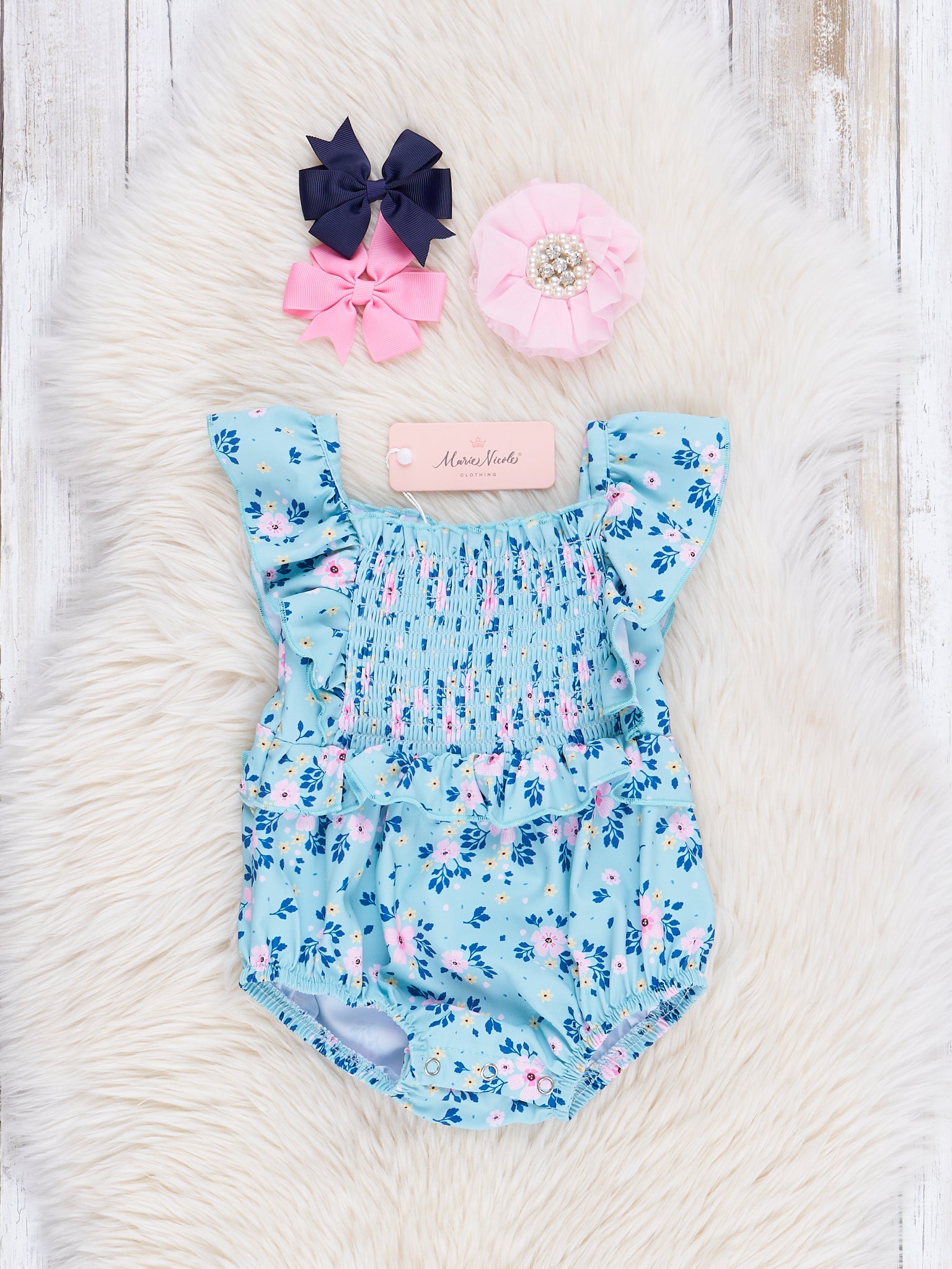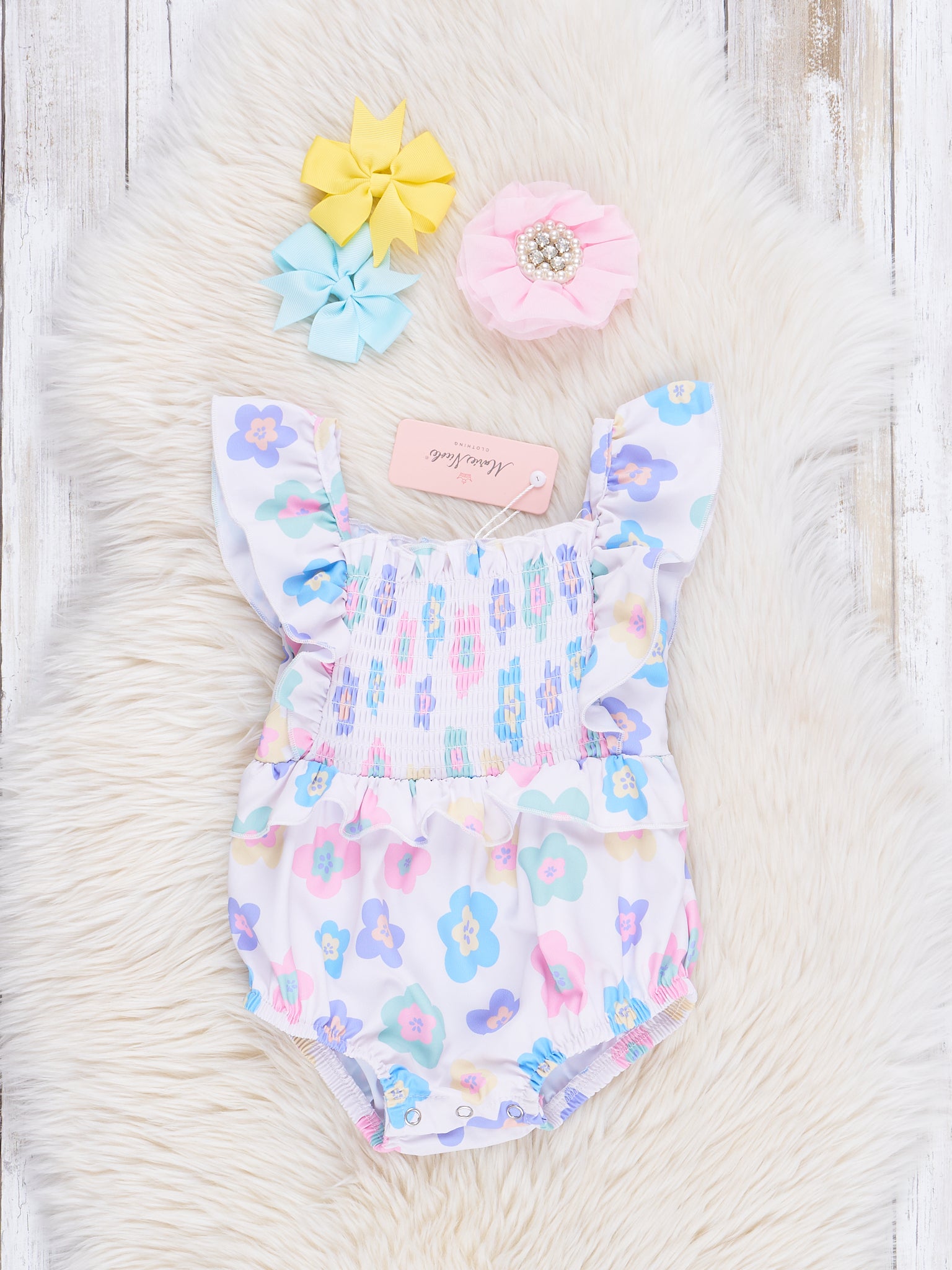 Blush & Lilac Blooms Smocked Ruffle Bubble