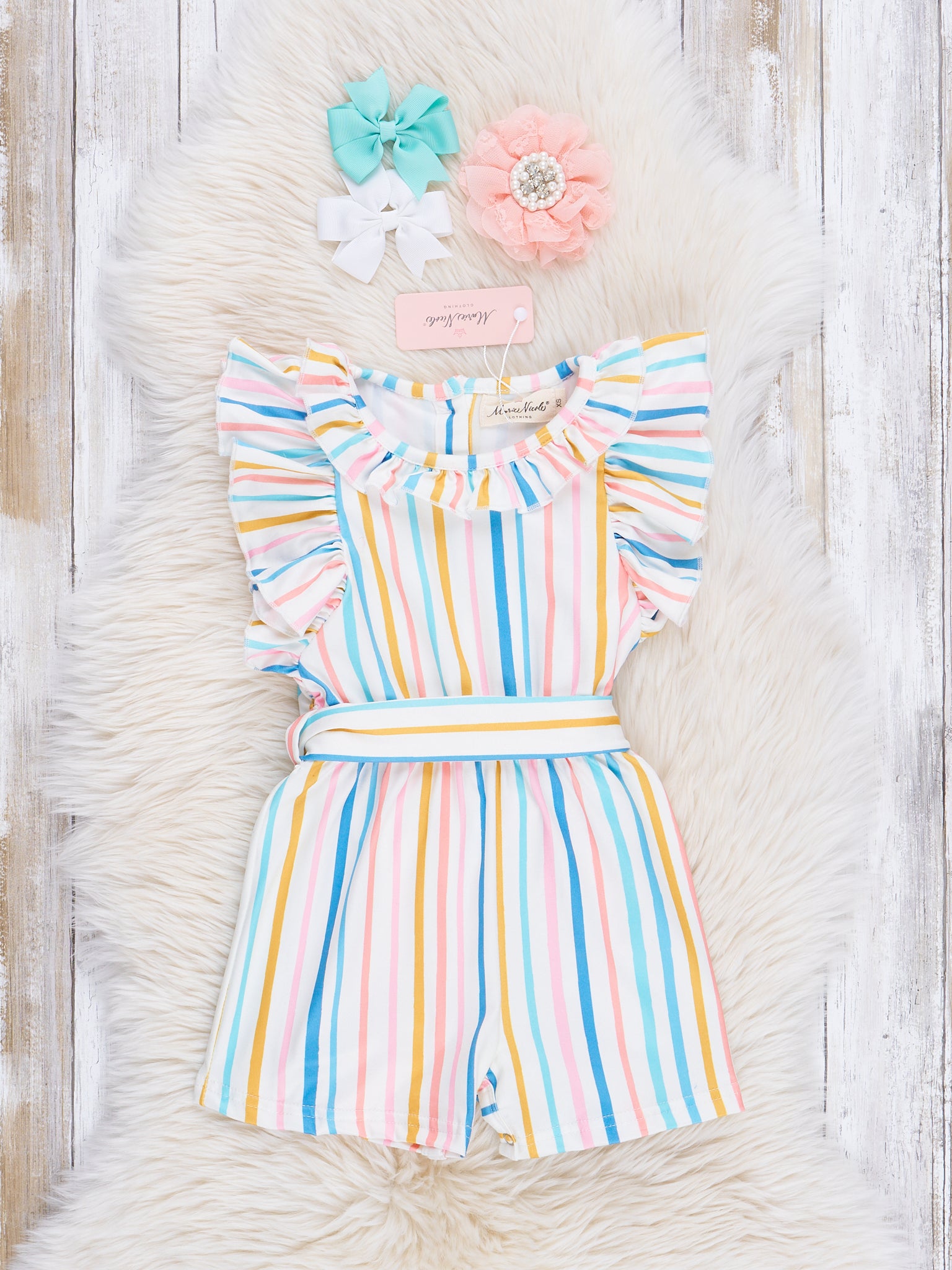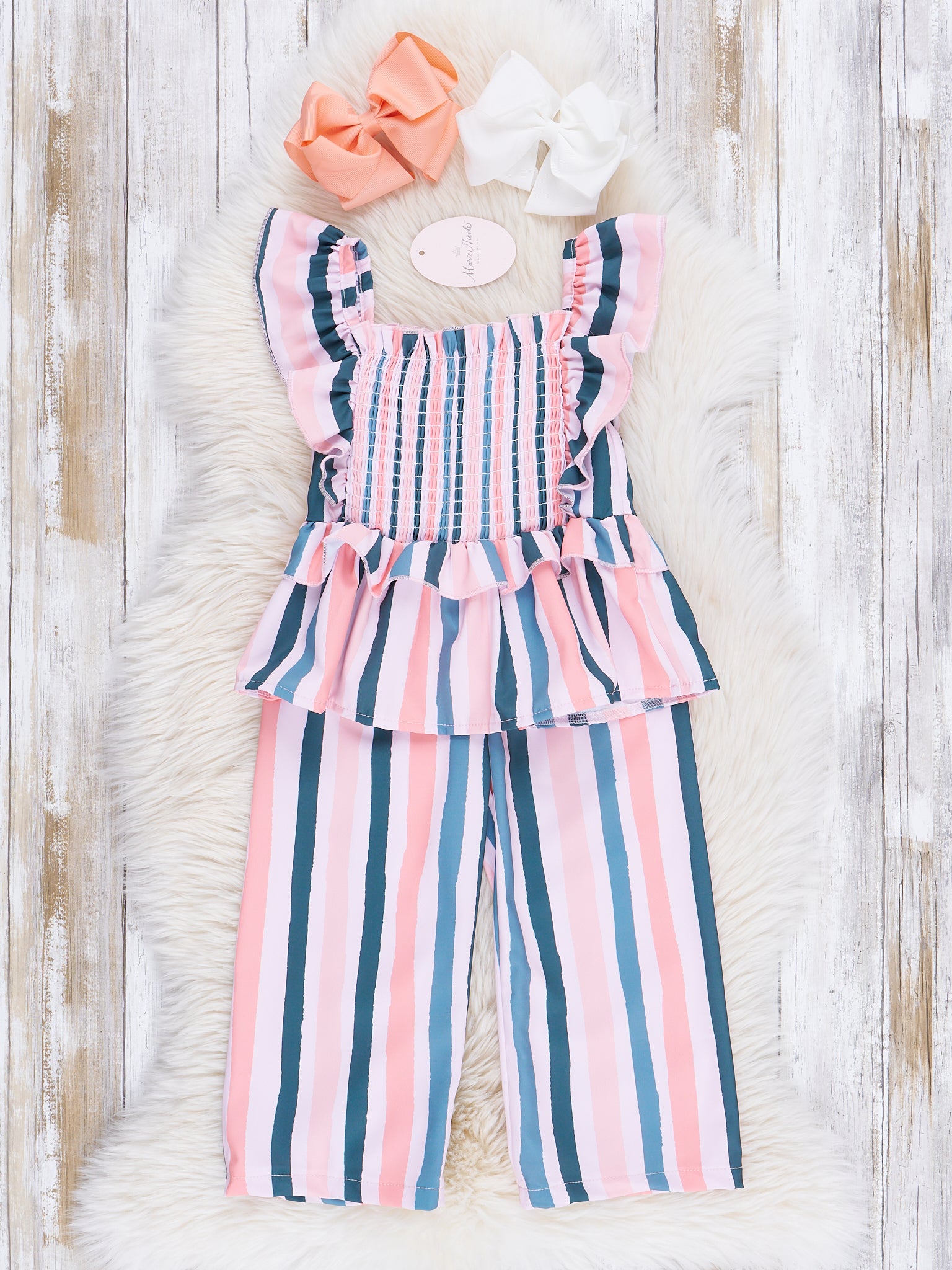 Navy & Rose Stripes Smocked Ruffle Outfit