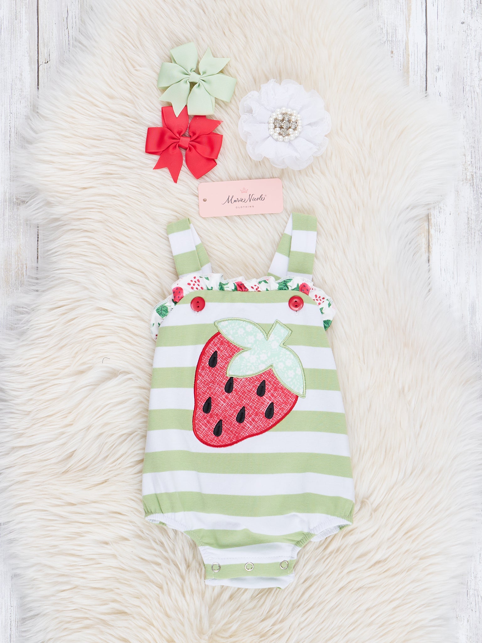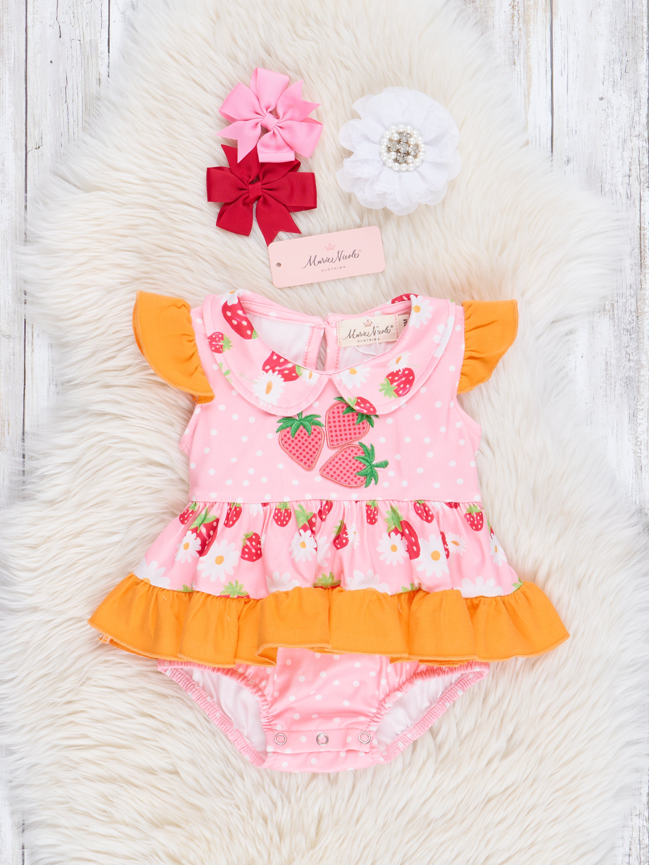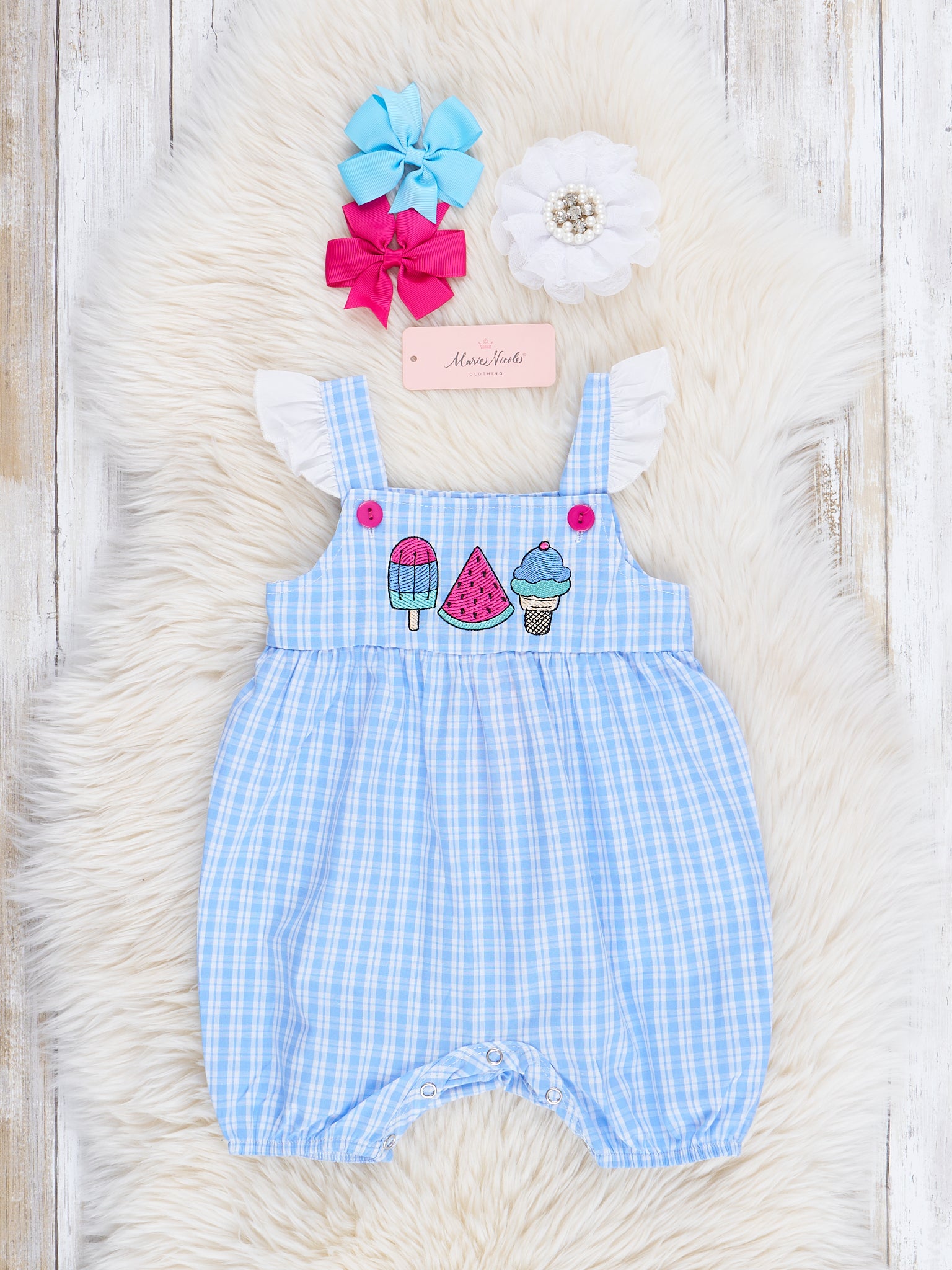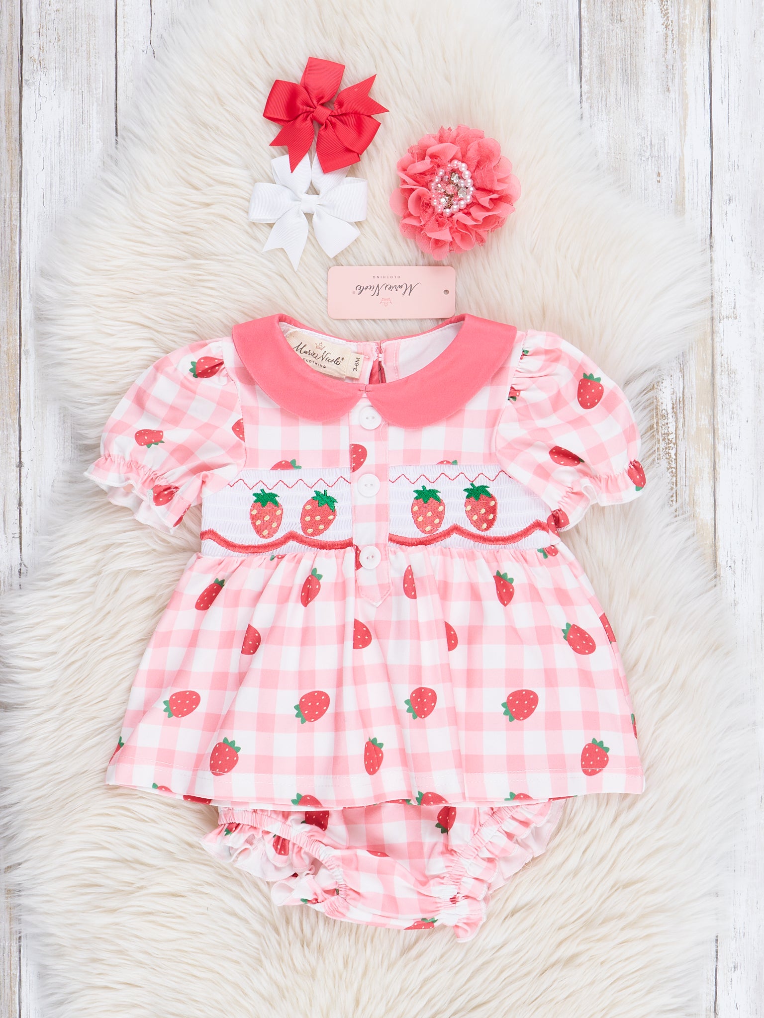 Pink Gingham Smocked Watermelon Ruffle Bubble