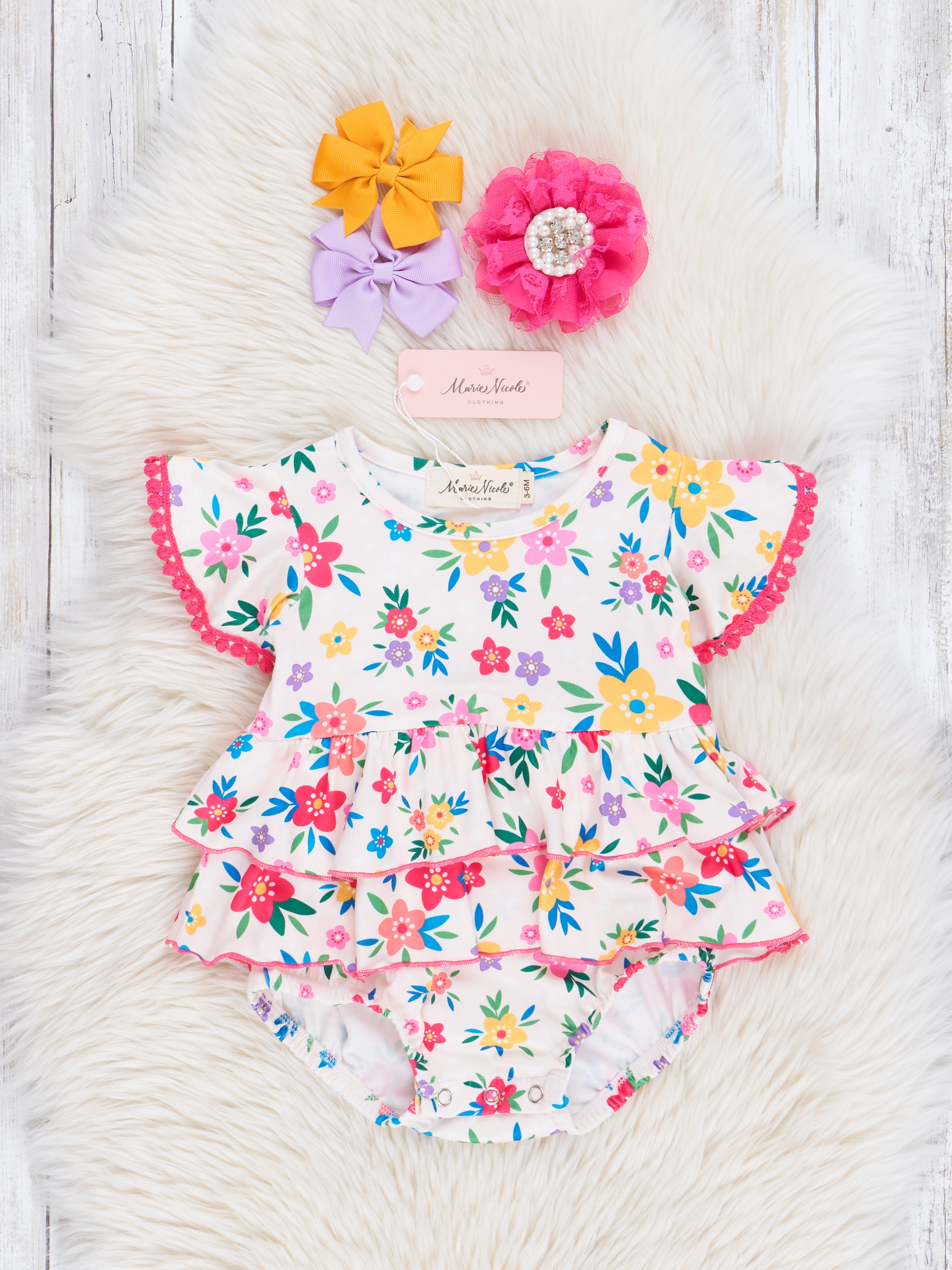 Pink & Blue Smocked Easter Train Ruffle Bubble