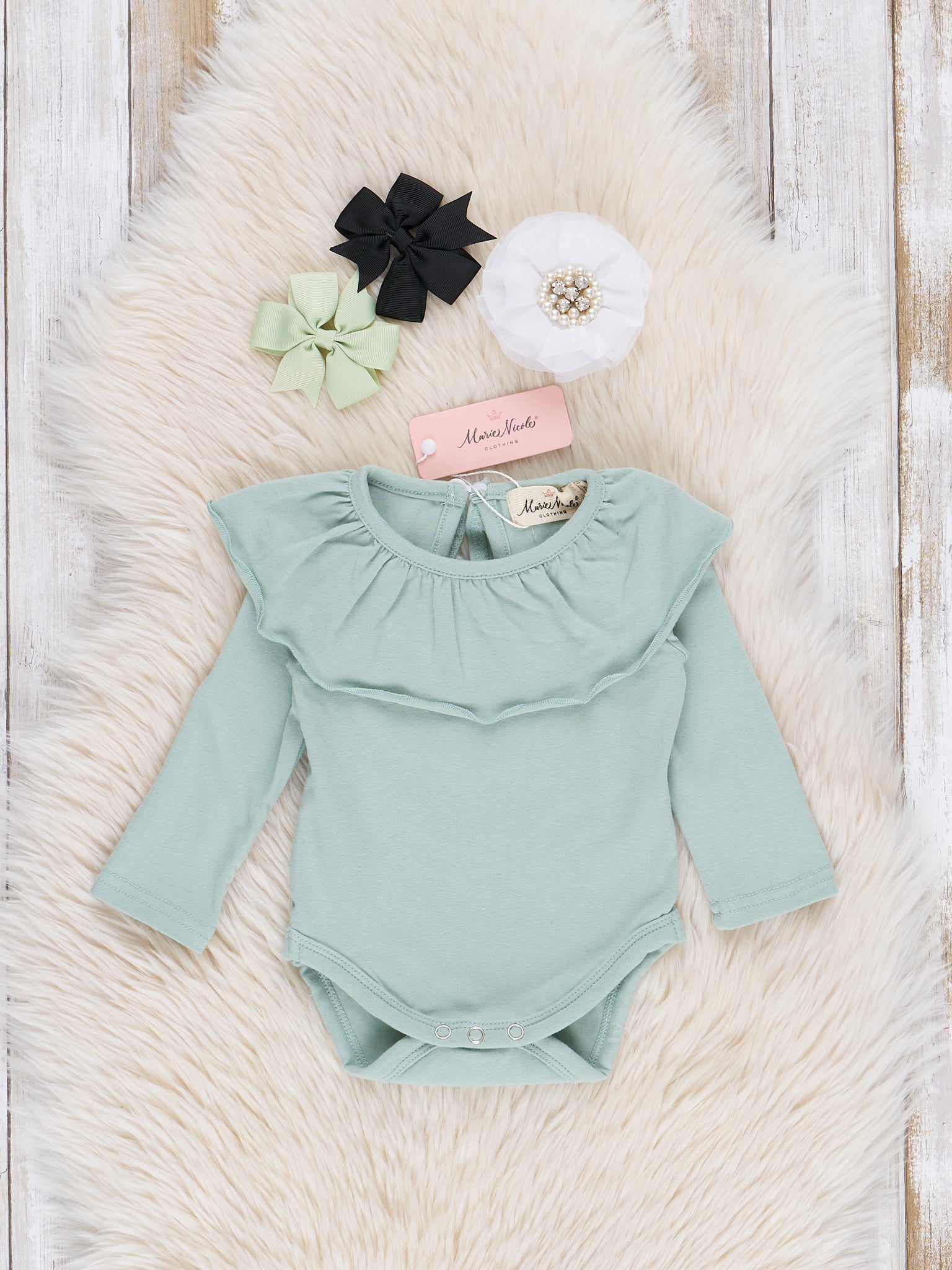 Get your little one ready to ruffle in this cute cotton outfit! The ruffle shoulder overlay adds a playful touch to this matching set, perfect for your stylish girl. Complete with comfy leggings, this outfit is a must-have for any fashion-forward child. Warning: may cause extreme adorableness!