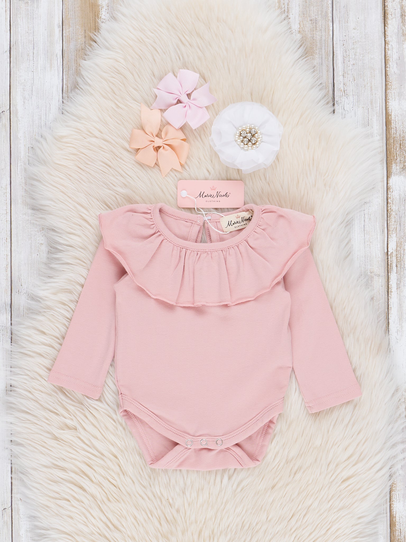Get your little one ready to ruffle in this cute cotton outfit! The ruffle shoulder overlay adds a playful touch to this matching set, perfect for your stylish girl. Complete with comfy leggings, this outfit is a must-have for any fashion-forward child. Warning: may cause extreme adorableness!