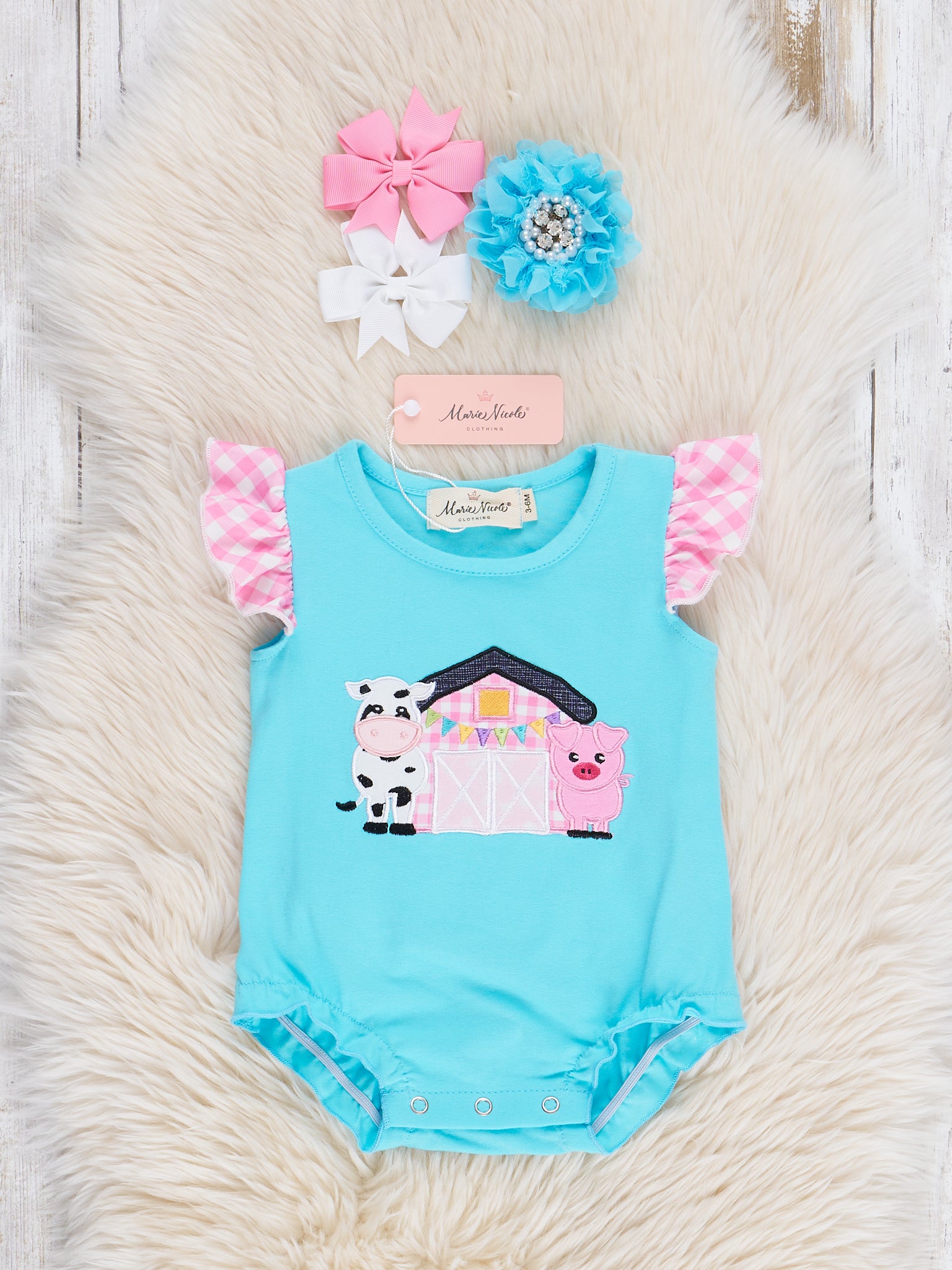 Gingham Farmhouse Embroidered Ruffle Bubble