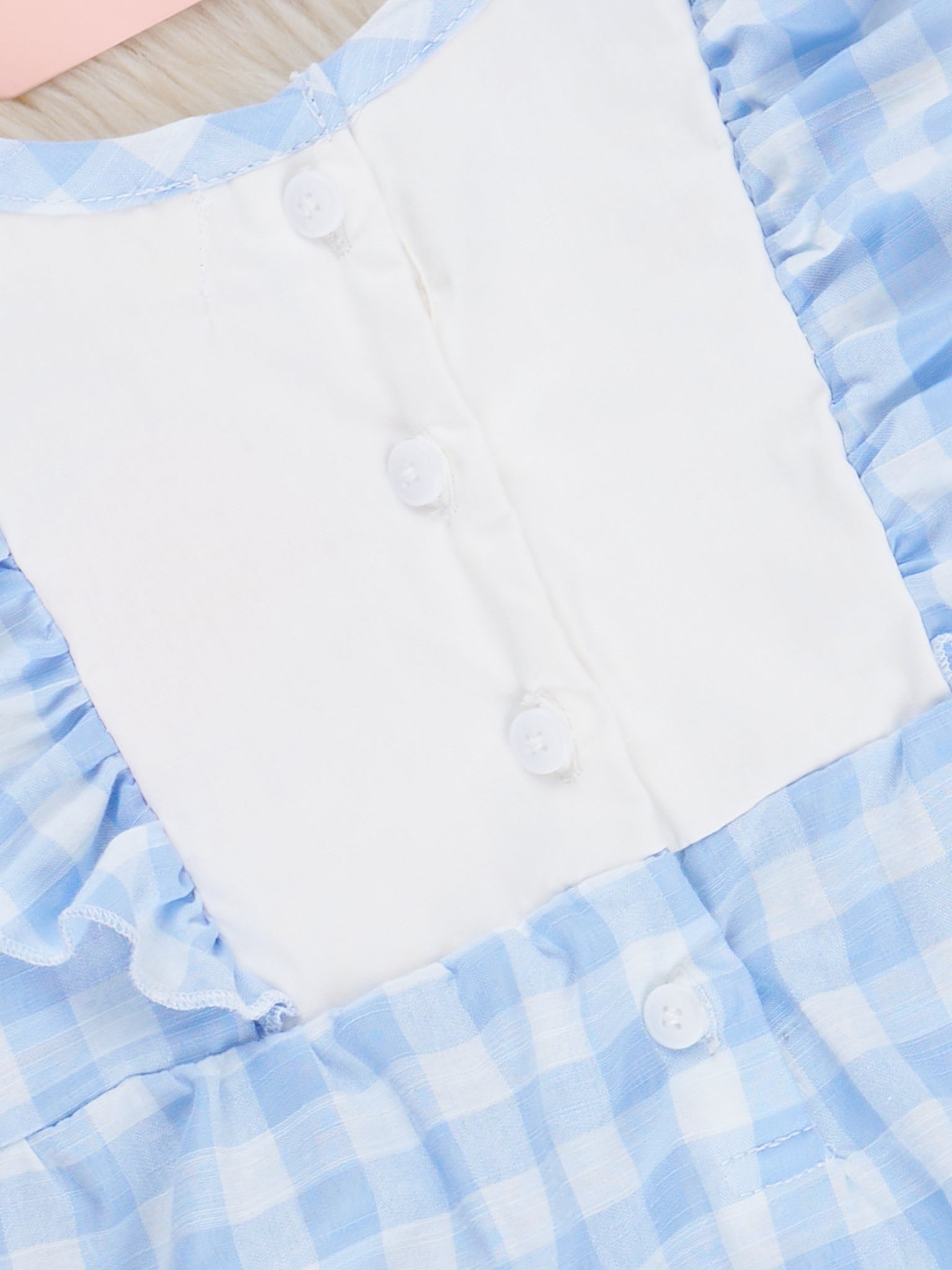 Embroidered Ice Cream Gingham Ruffle Bubble