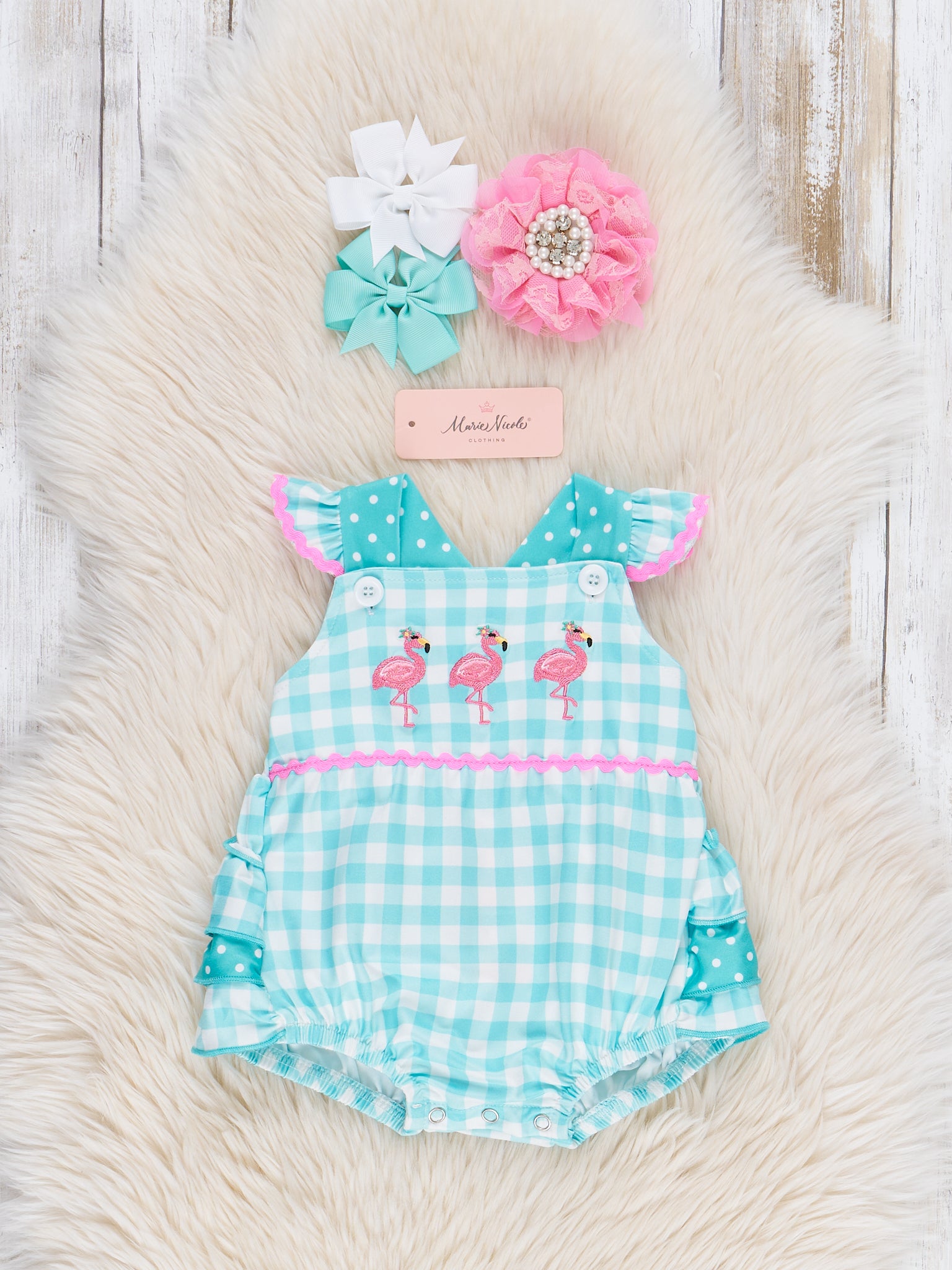 Gingham Embroidered Flamingo Party Ruffle Bubble