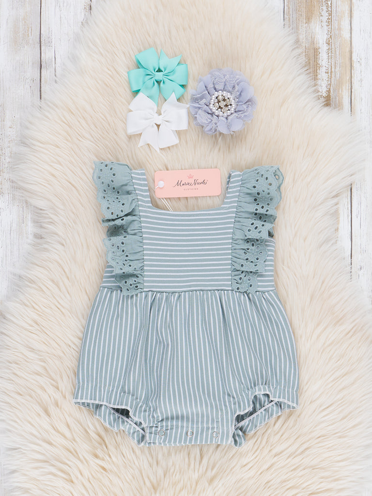 Sage Striped Eyelet Ruffle Bubble