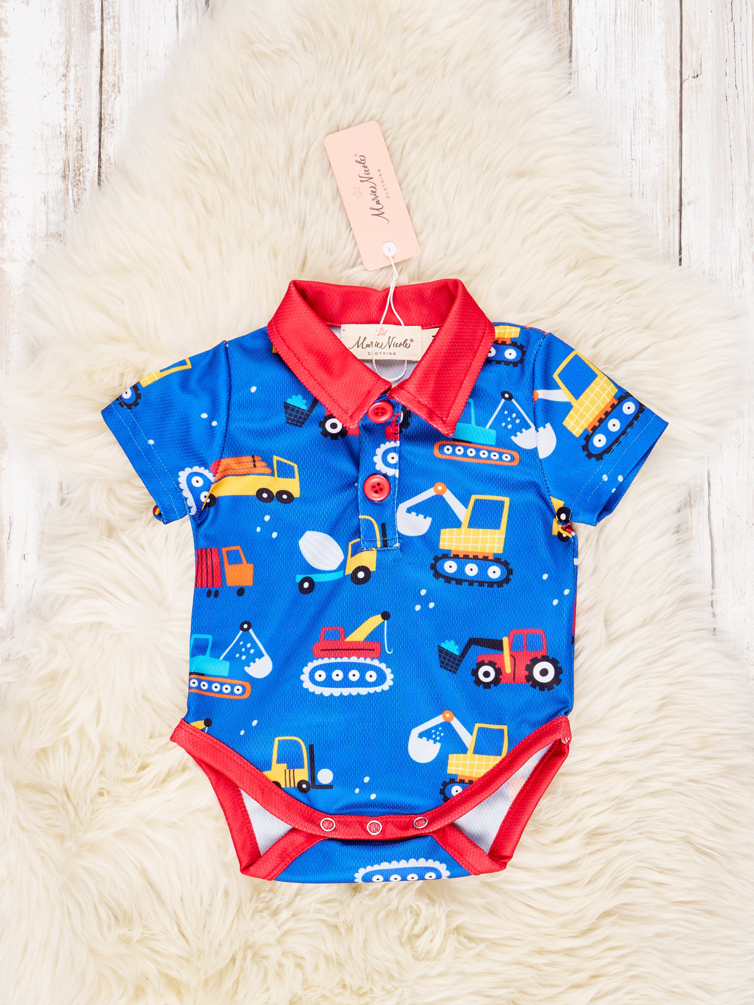 Blue Construction Polo Romper