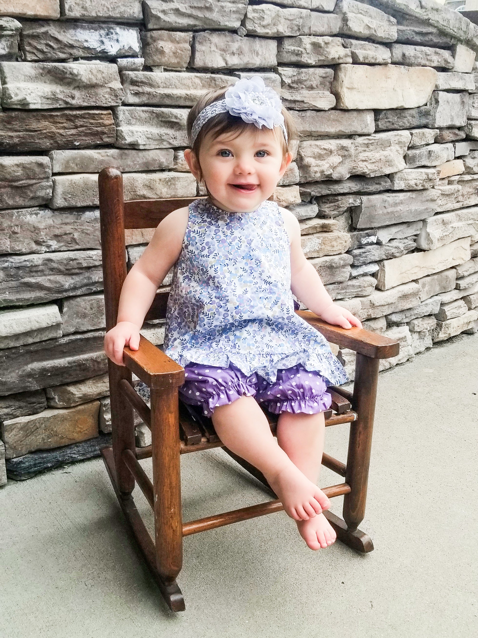 This outfit is so sweet. The details are amazing. I unfortunately had to size up quite a bit for my girls, but one day they will get to wear this sweet outfit!