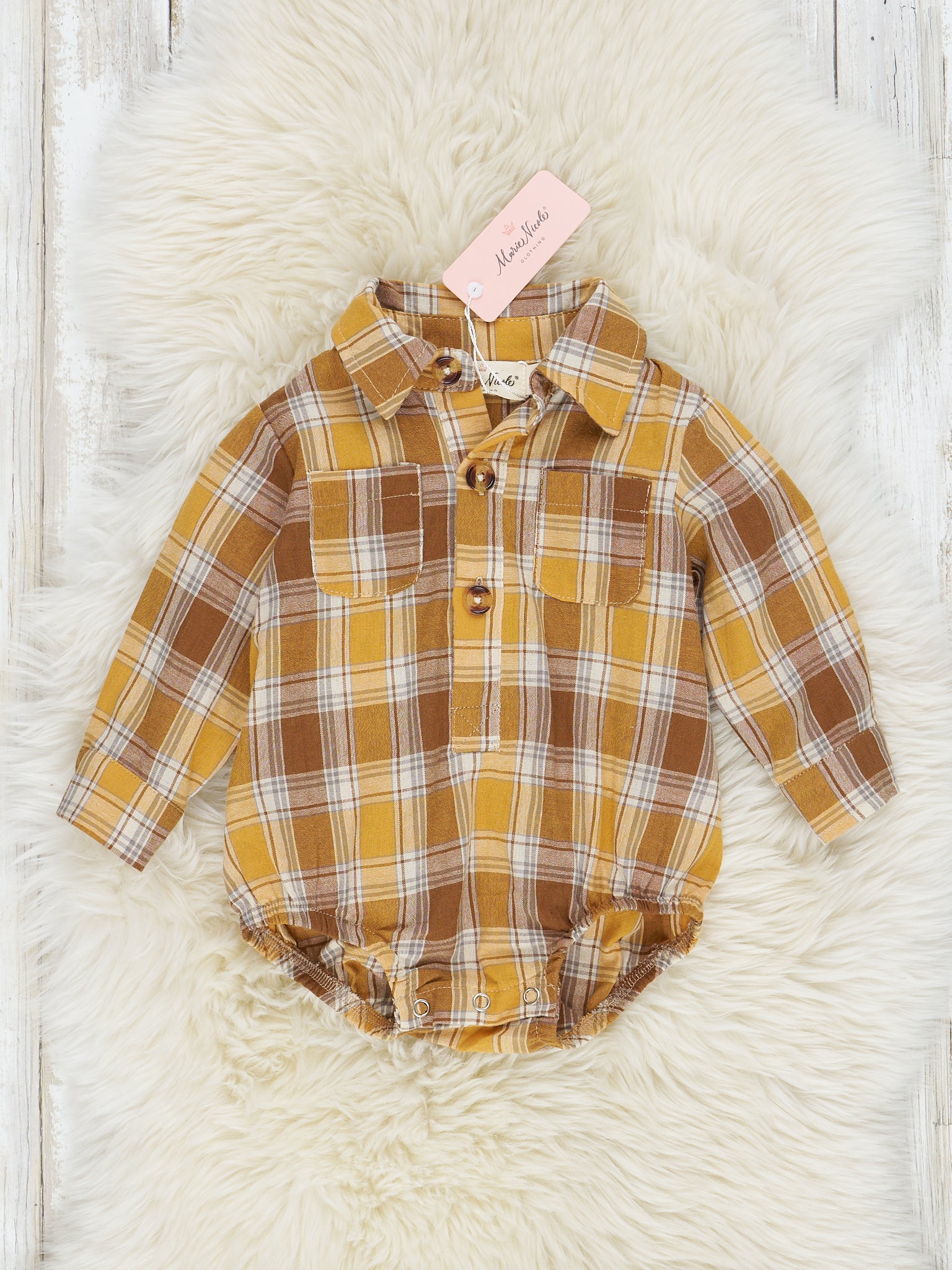 Look no further for the perfect brotherly duo this fall! With its timeless style and buttons, this collared plaid button-up romper will have your little ones ready for any event. Perfect for playdates and fall festivals! Now your kids can be as stylish as they are silly!