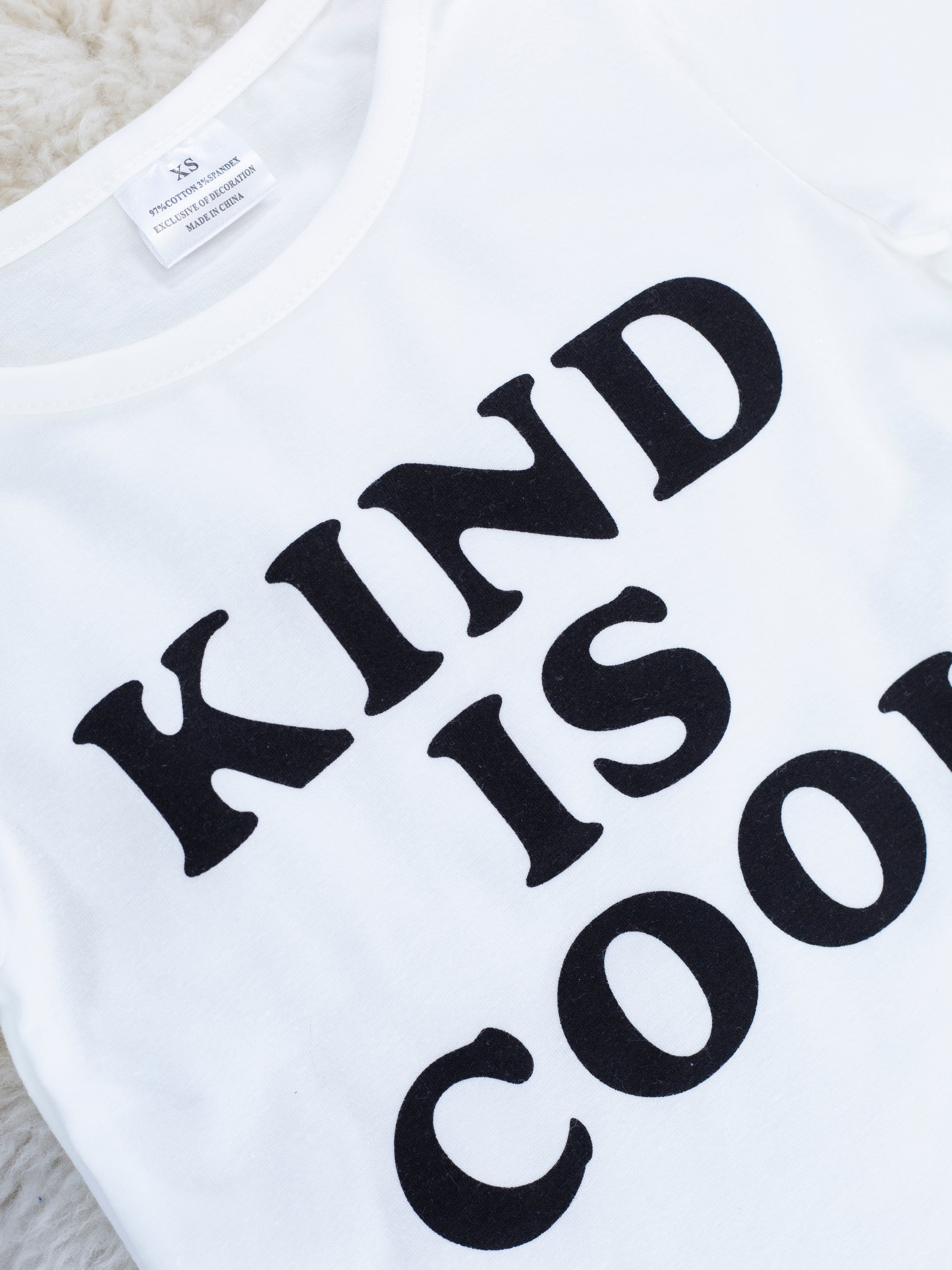 The cutest outfit for your kind kiddos! This outfit features a white top with a darling "Kind Is Cool" detail & Boho bell bottoms with an elastic waistband.