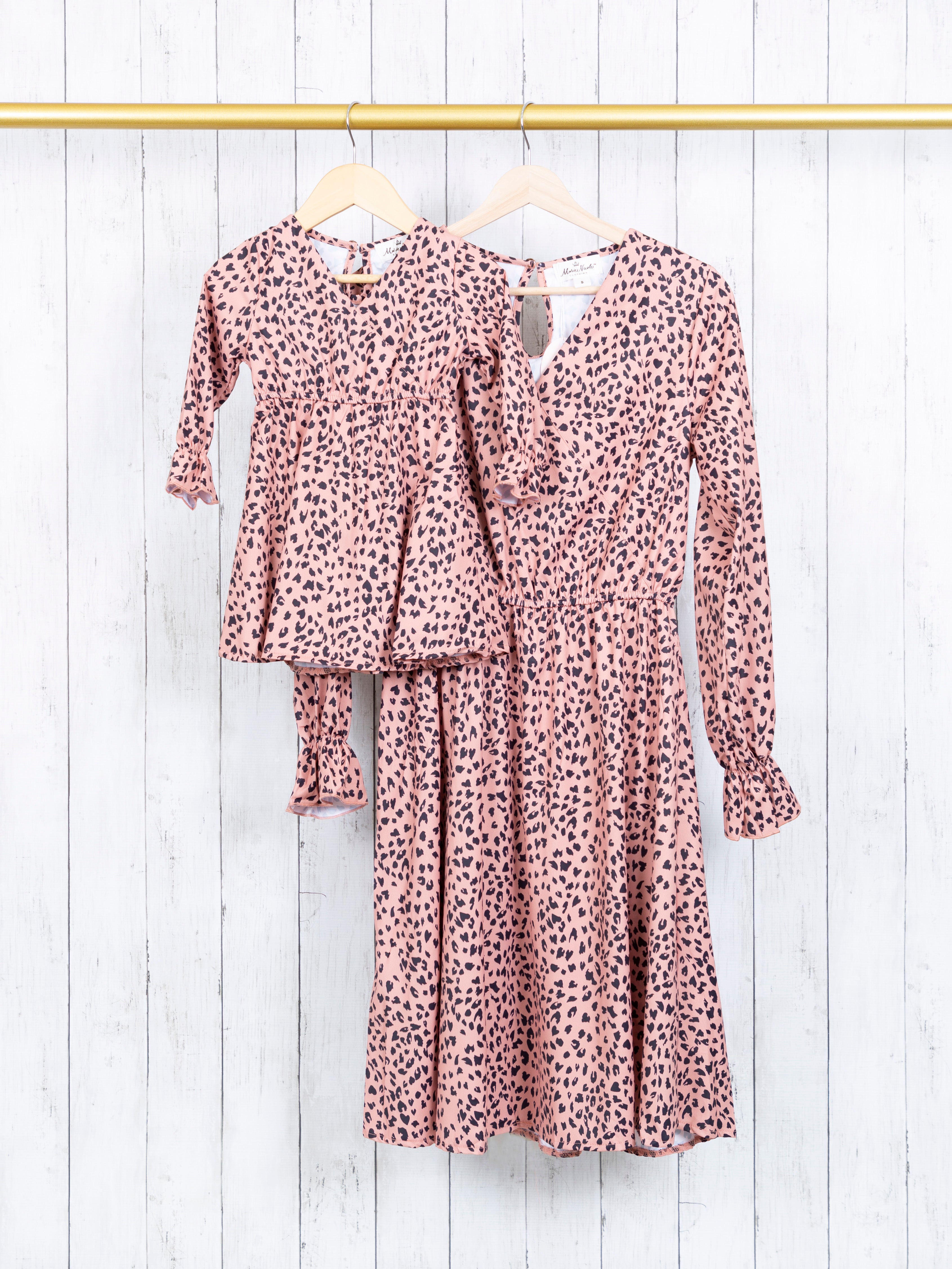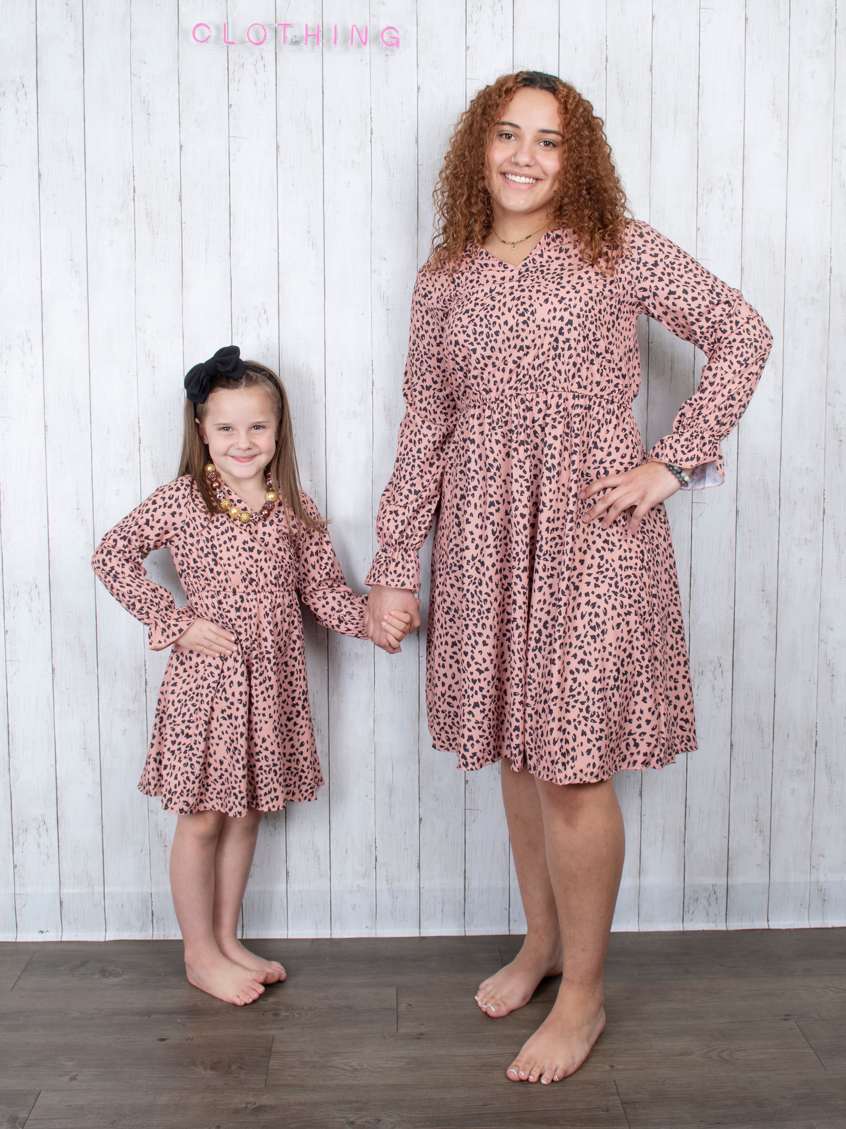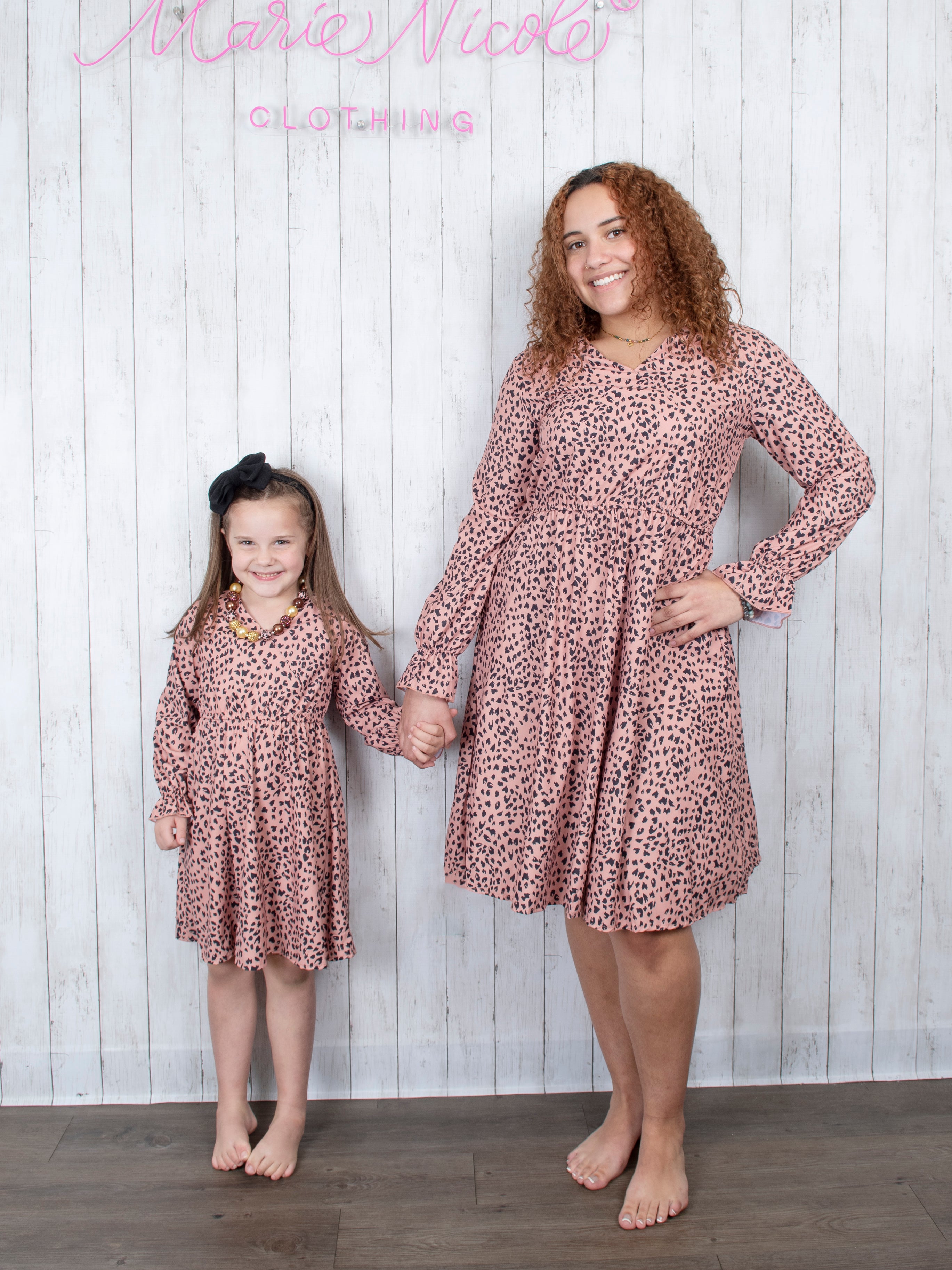 Match your mini any & every day in these dresses! These cheetah print dresses feature a cinched waist and a keyhole at the back of the neck.