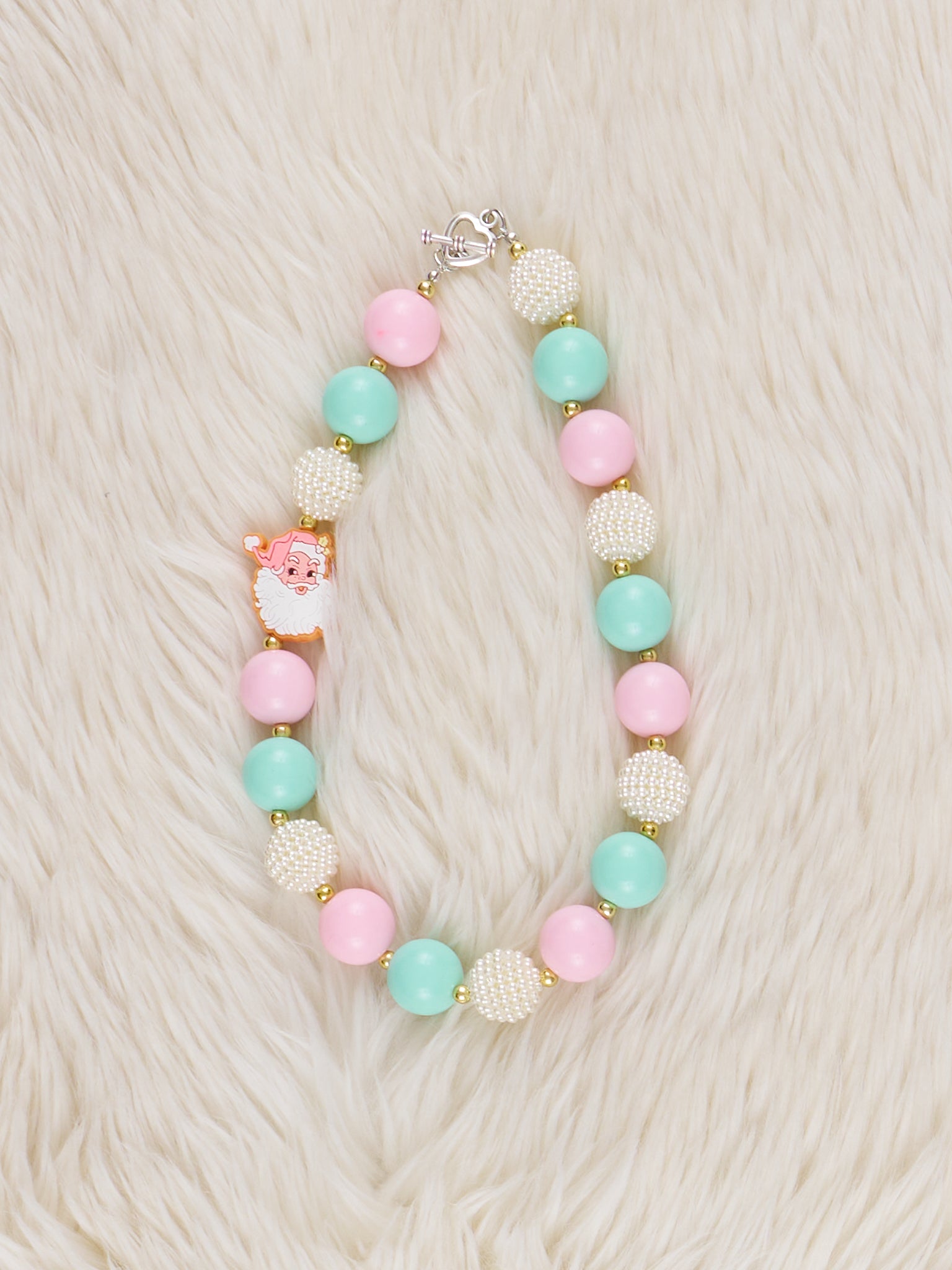The Santa Sweets Necklace is the dearest accessory for the holiday season. The round, pastel beads are colorful like gumballs. With a little Santa as well, this necklace is the sweetest piece of jewelry for your little girl's outfits as Christmas draws near!