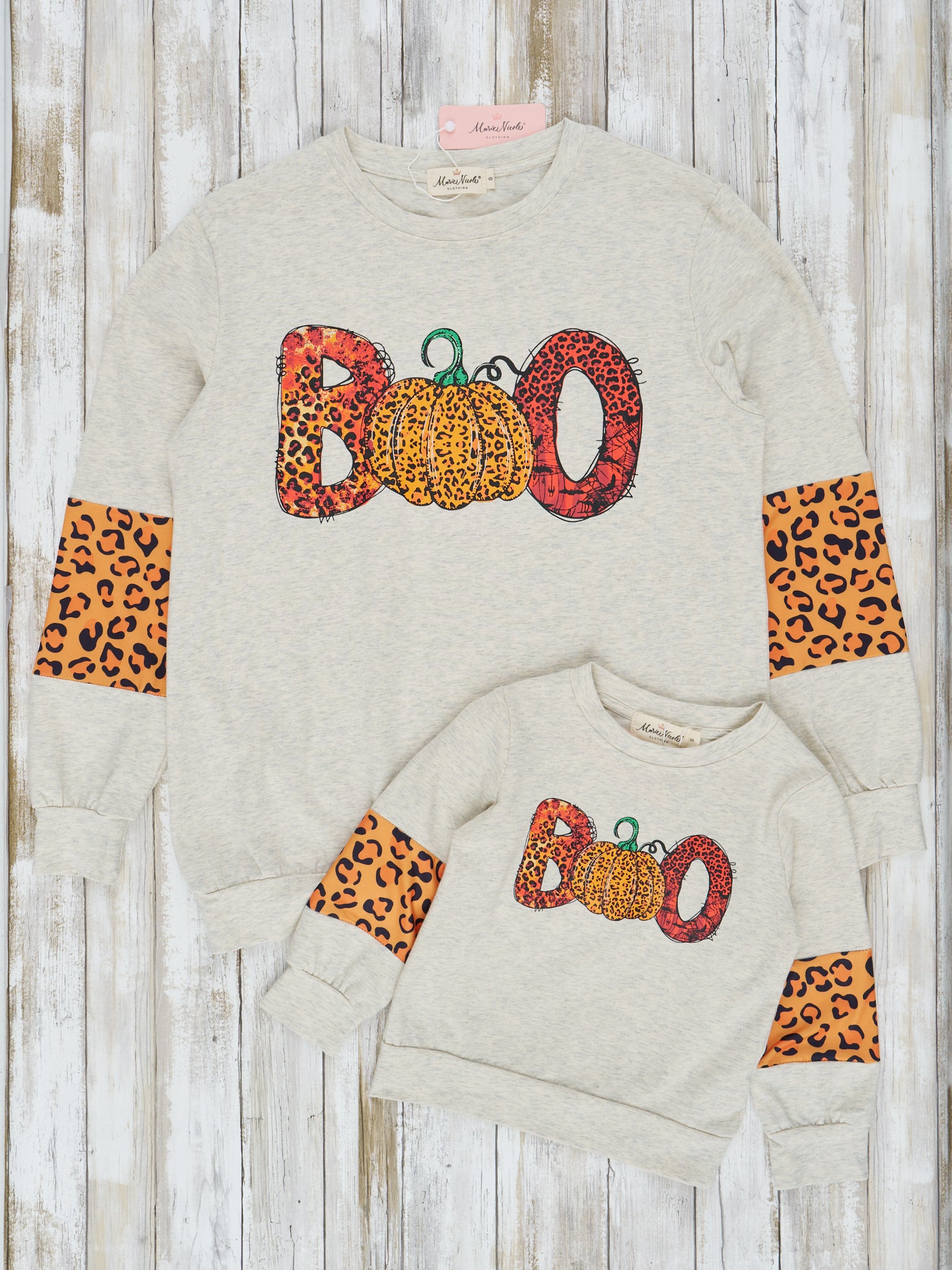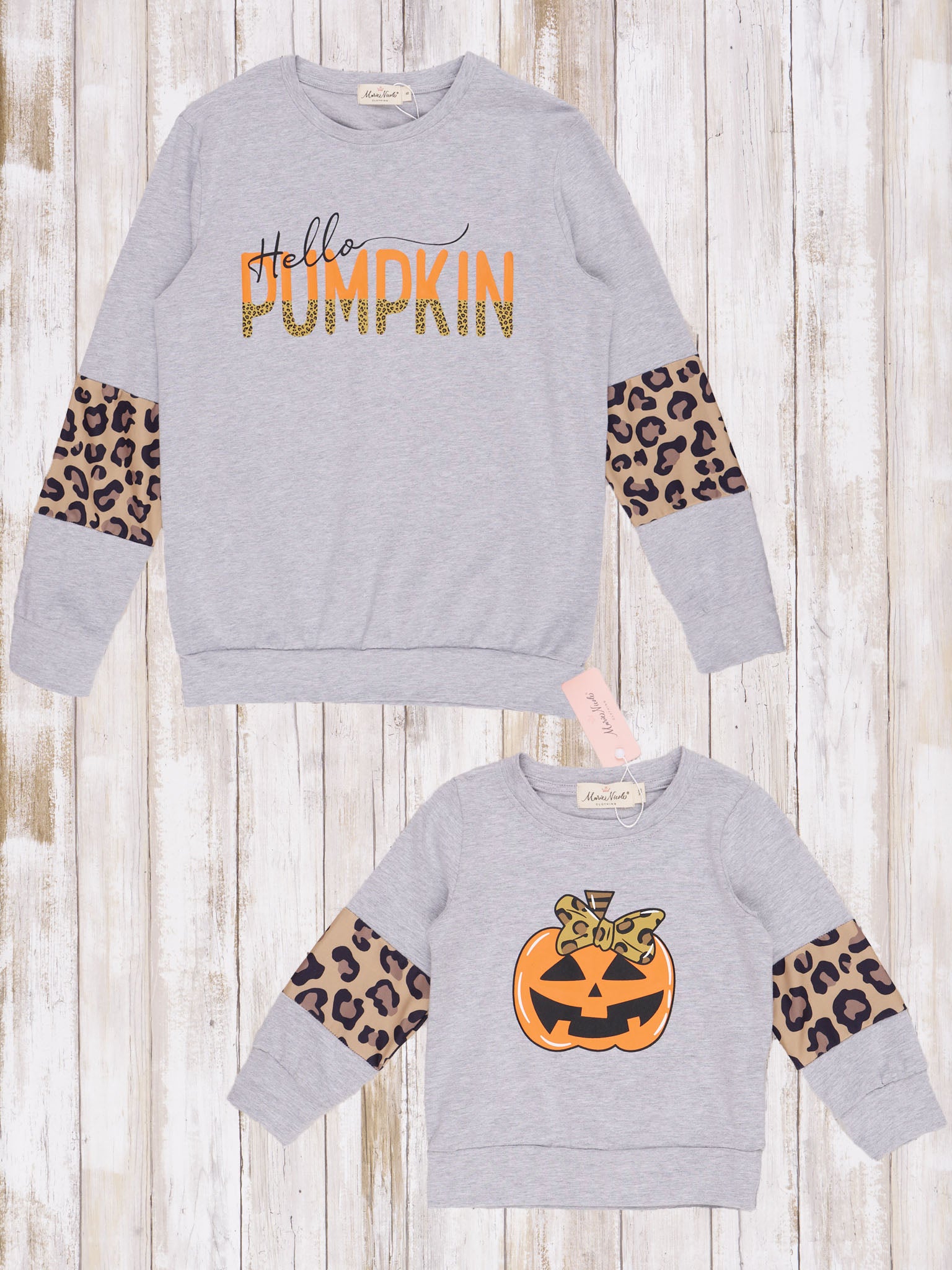 Mom & Me Grey Leopard Pumpkin Crewneck