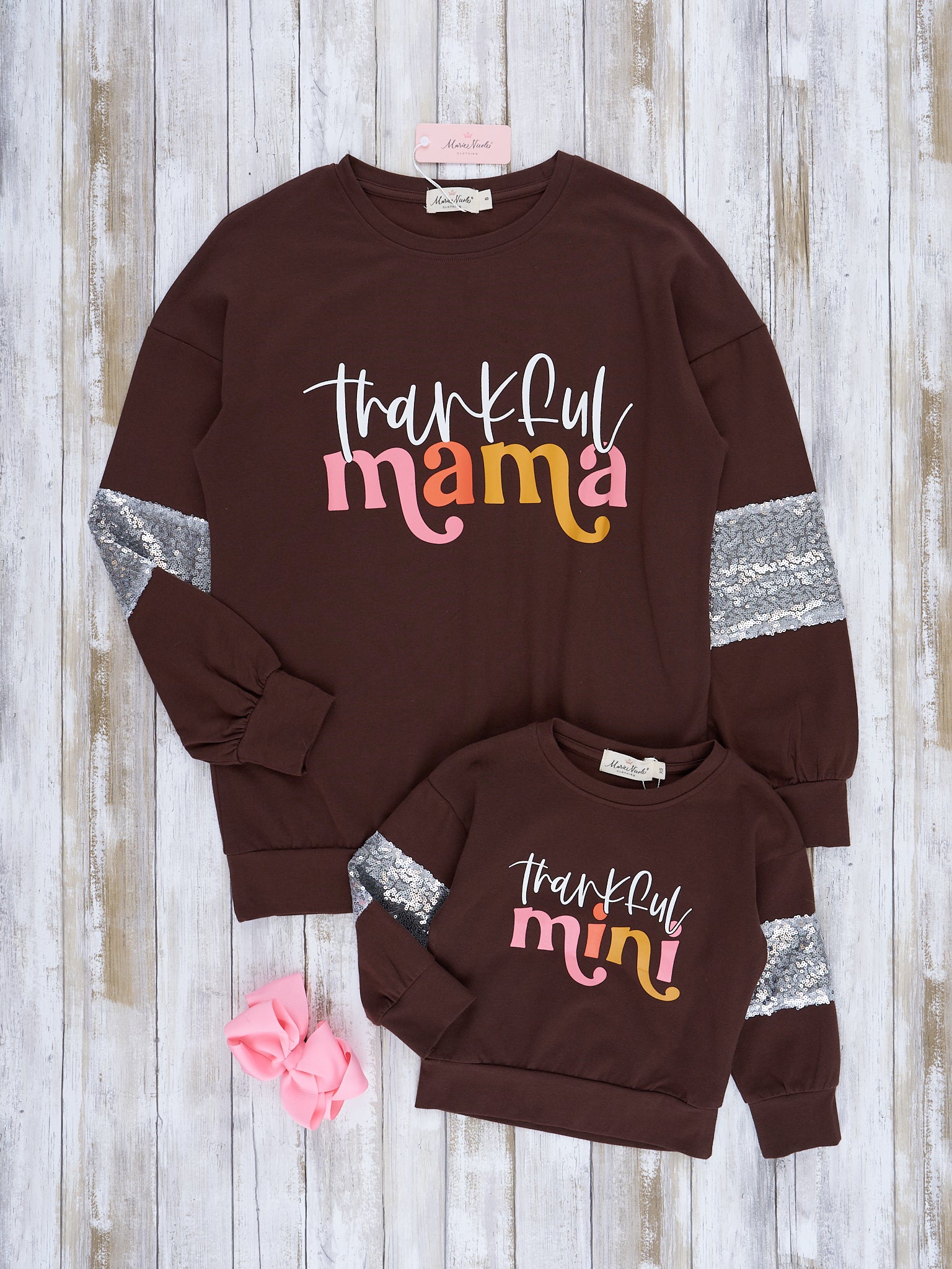 Mom & Me Brown & Gold Dots Thankful Crew Neck