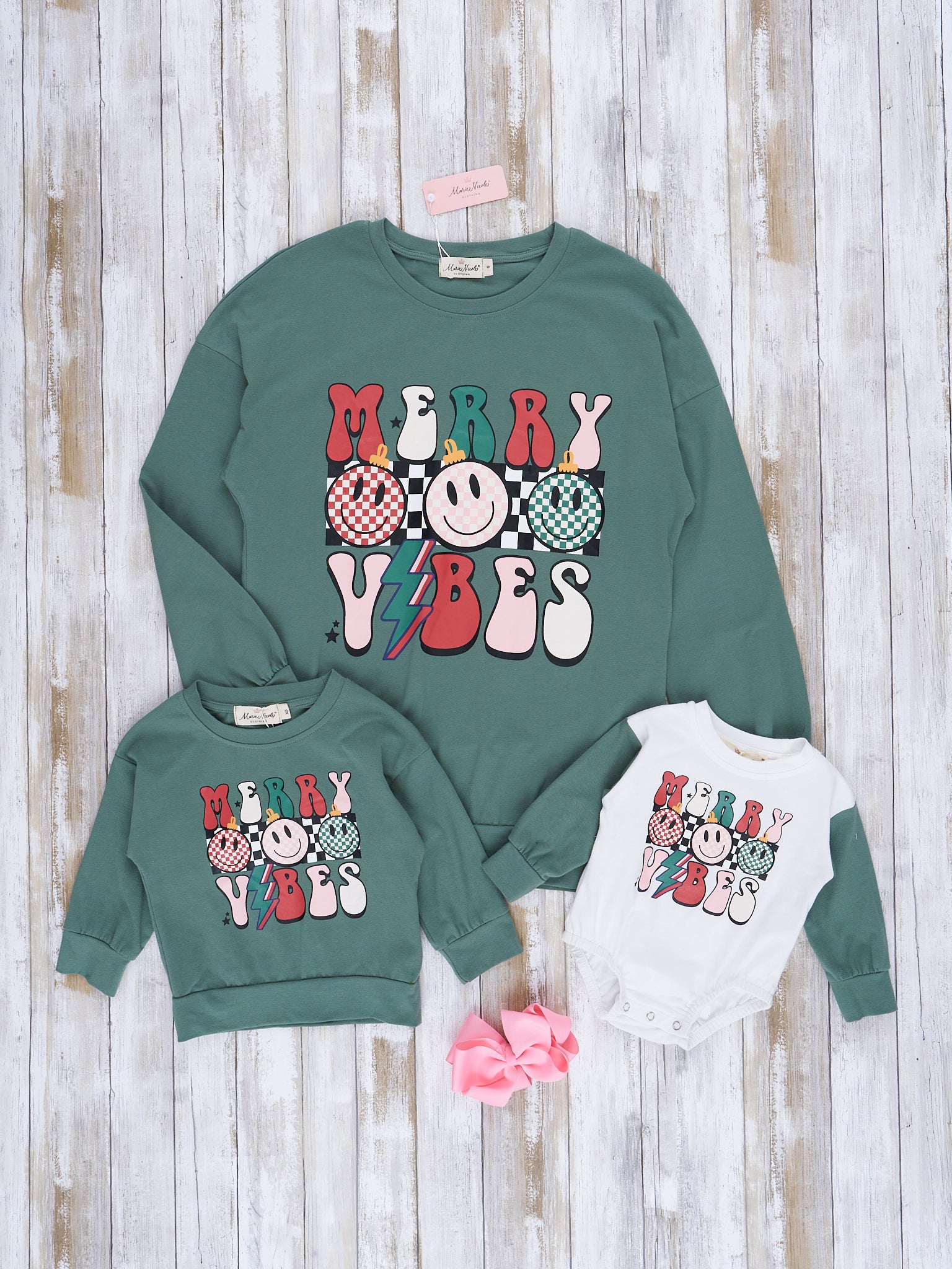 Mom & Me Heather Olive "Merry Vibes" Crew Neck Shirt