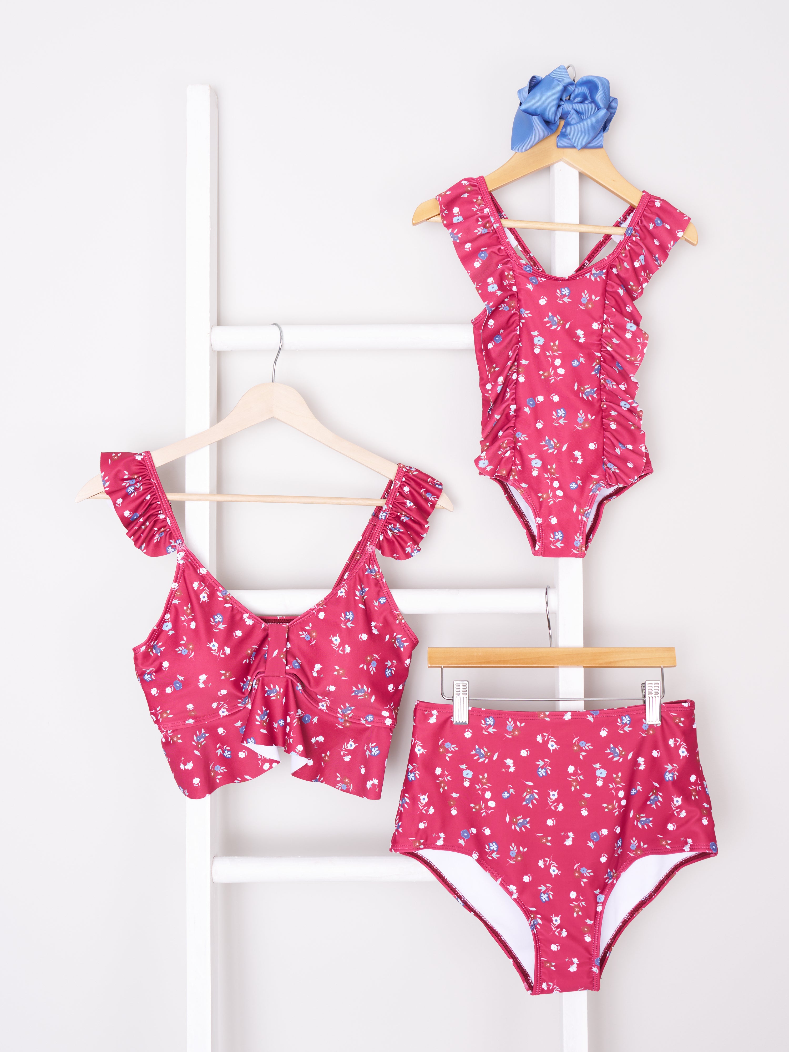 Mom & Me Burgundy Floral Ruffle Swimsuit