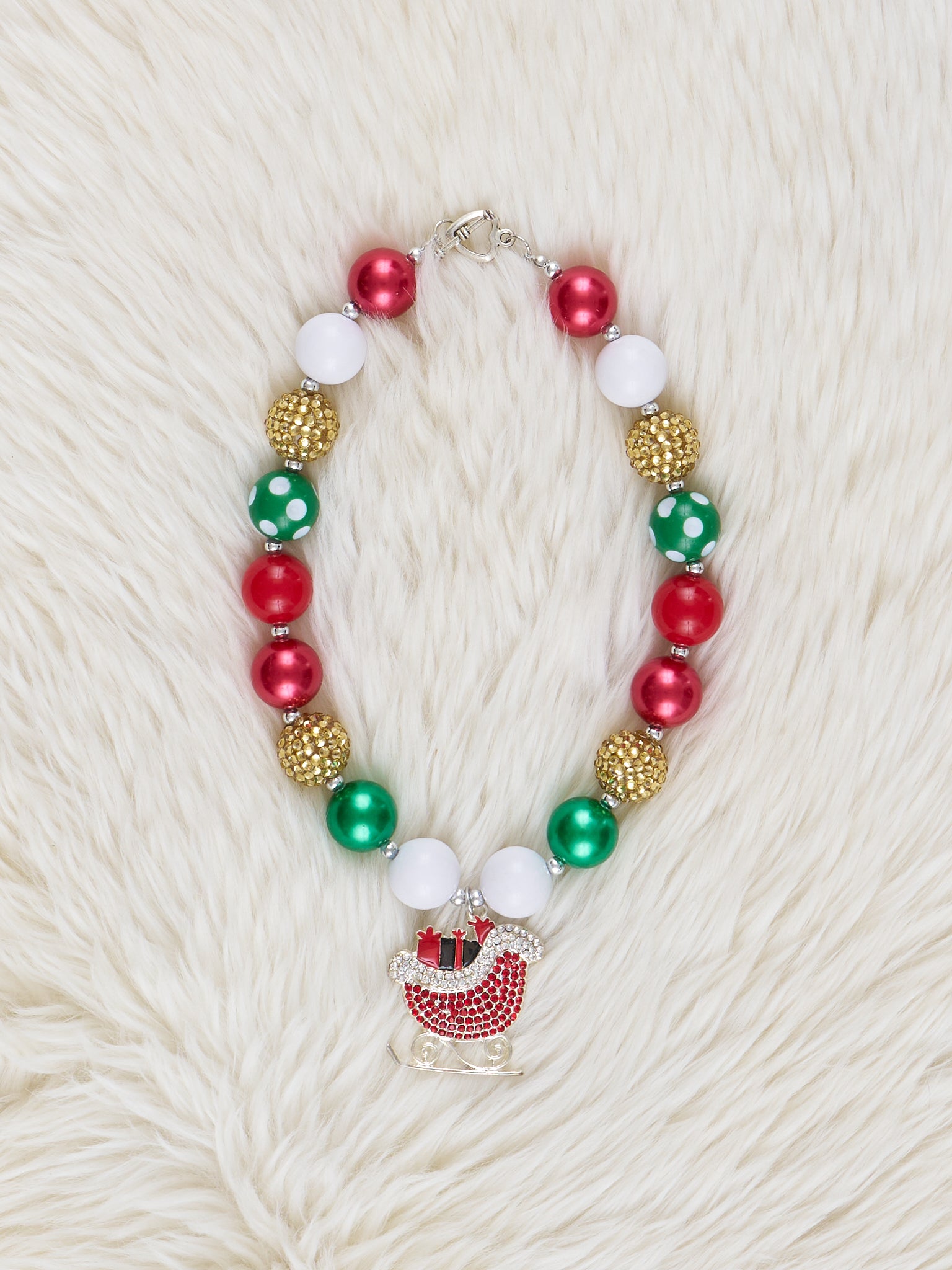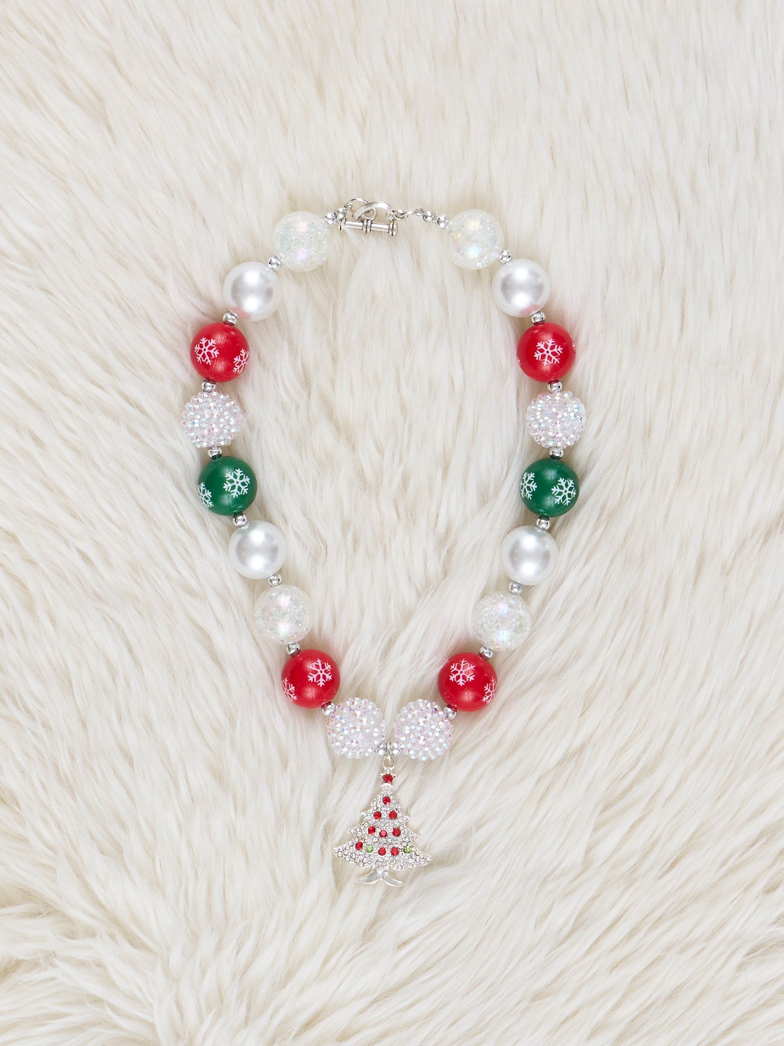 Shimmer Pearl Christmas Tree Charm Bubblegum Necklace