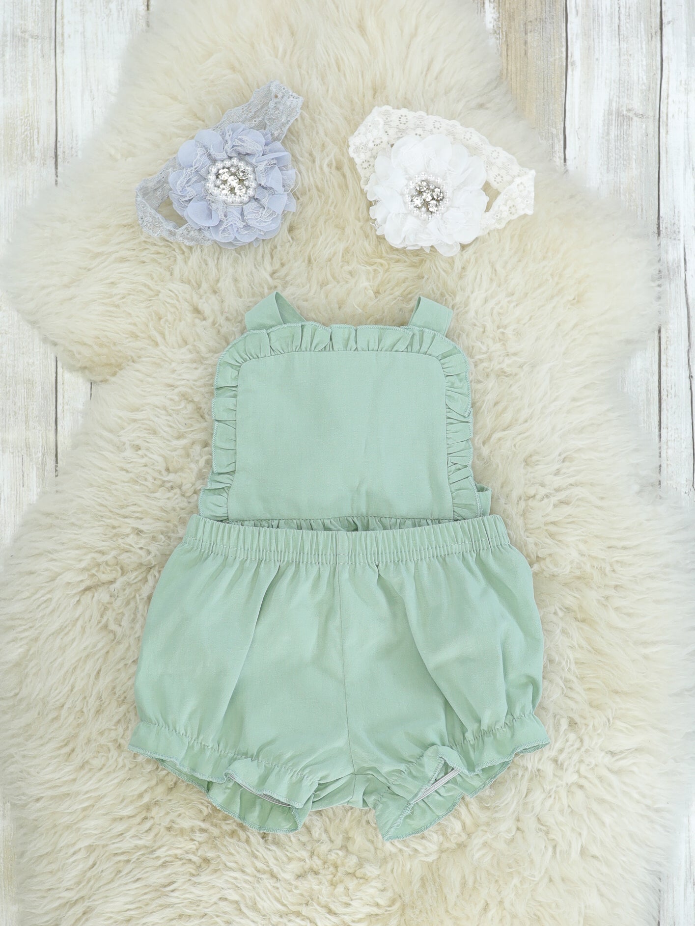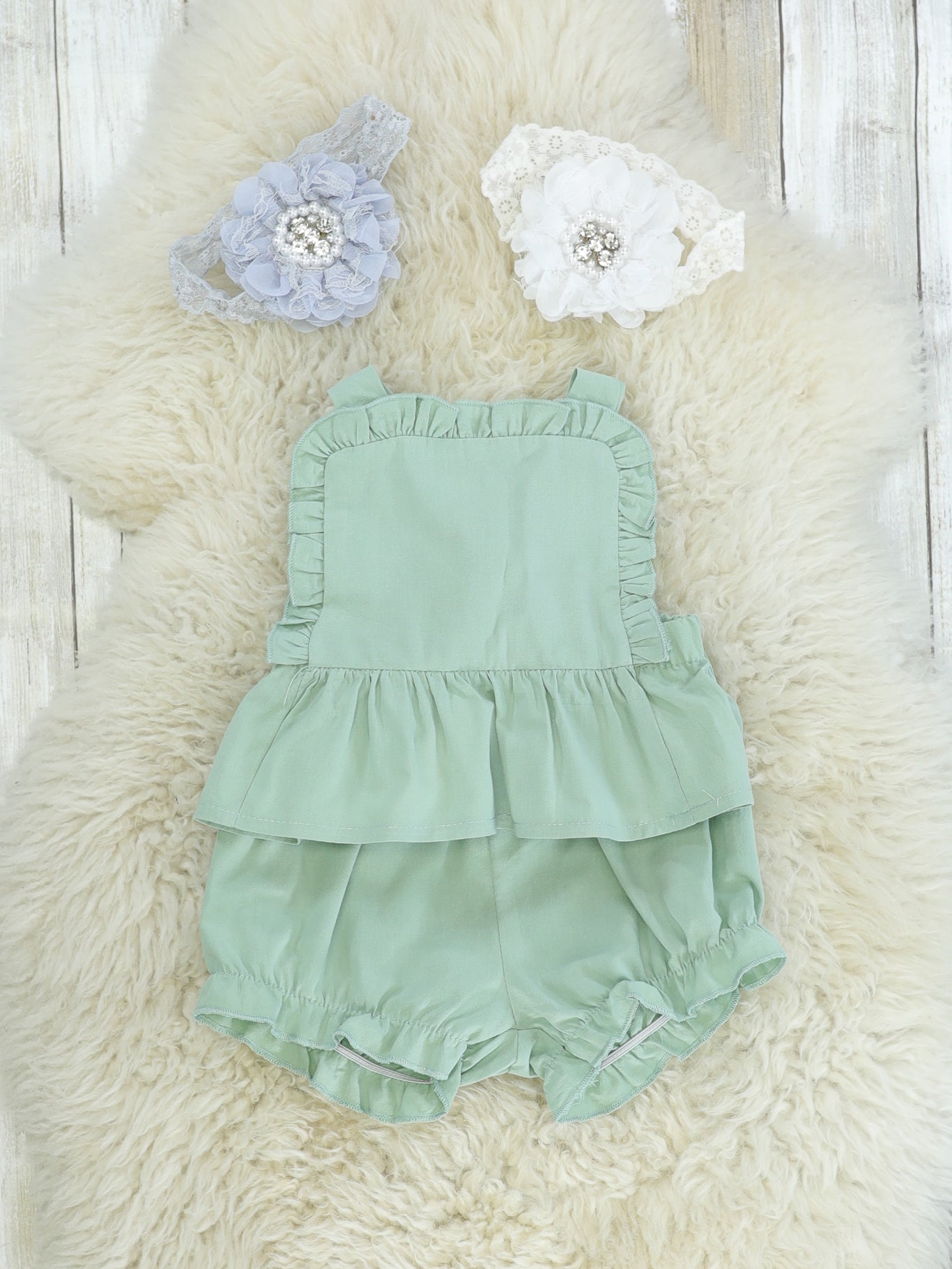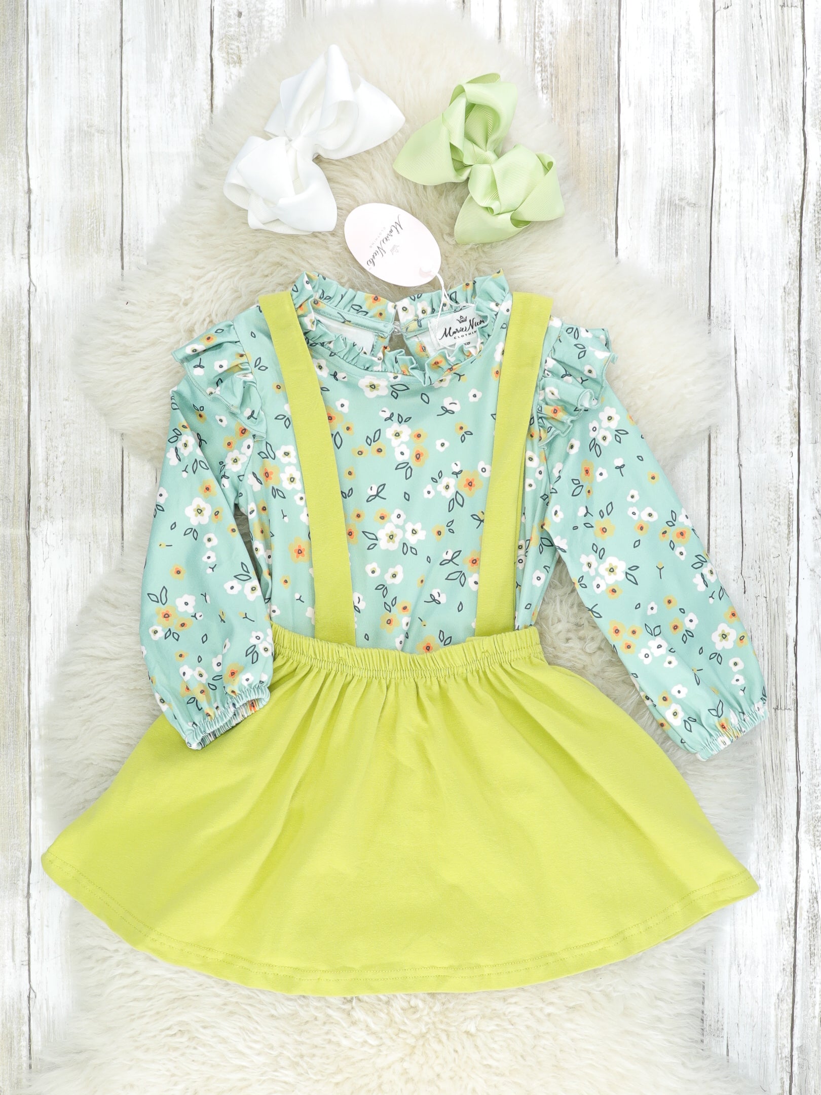 Sea Foam Green Floral Vintage Top & Suspender Skirt Set