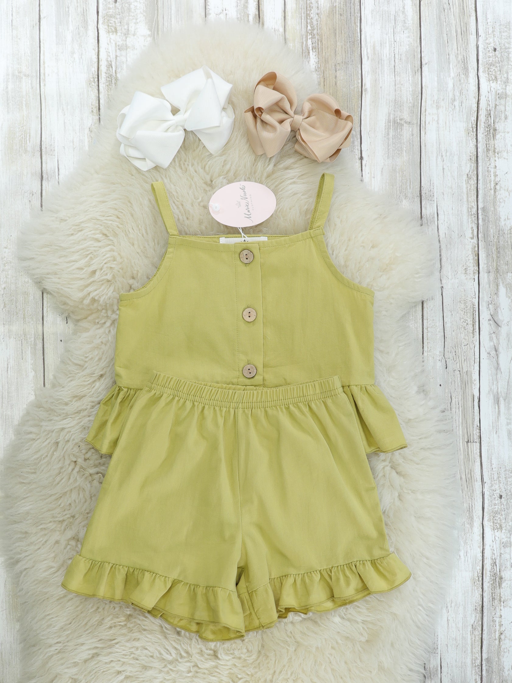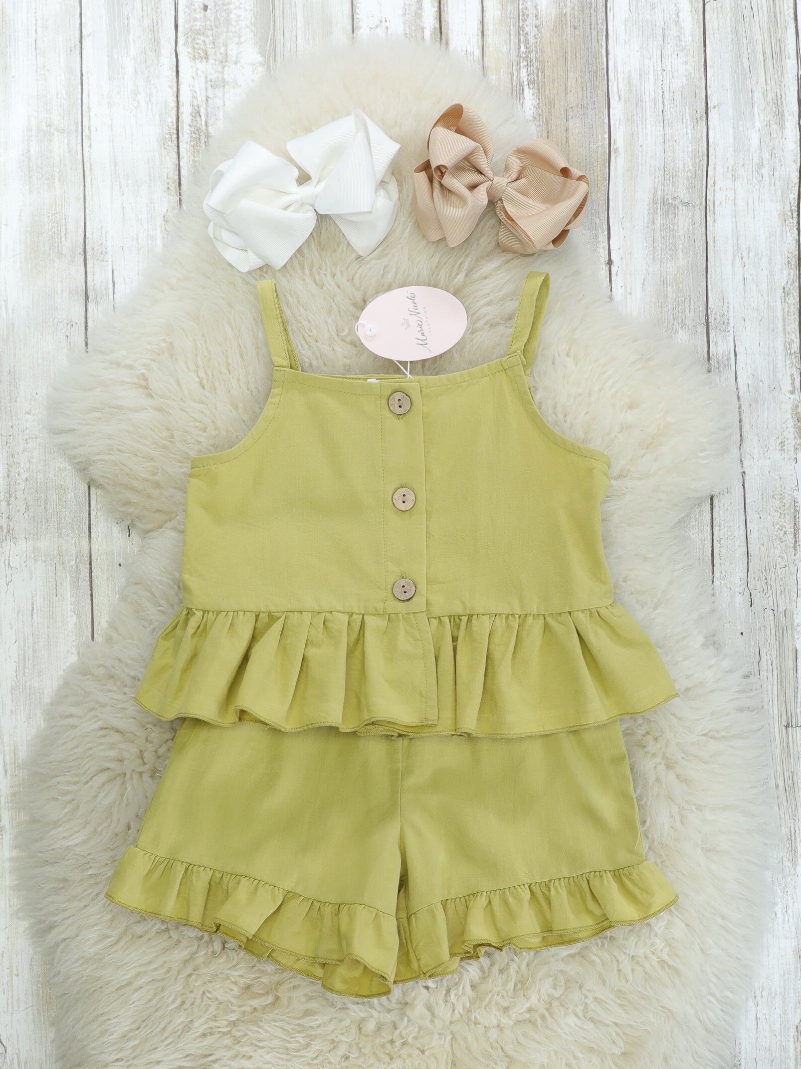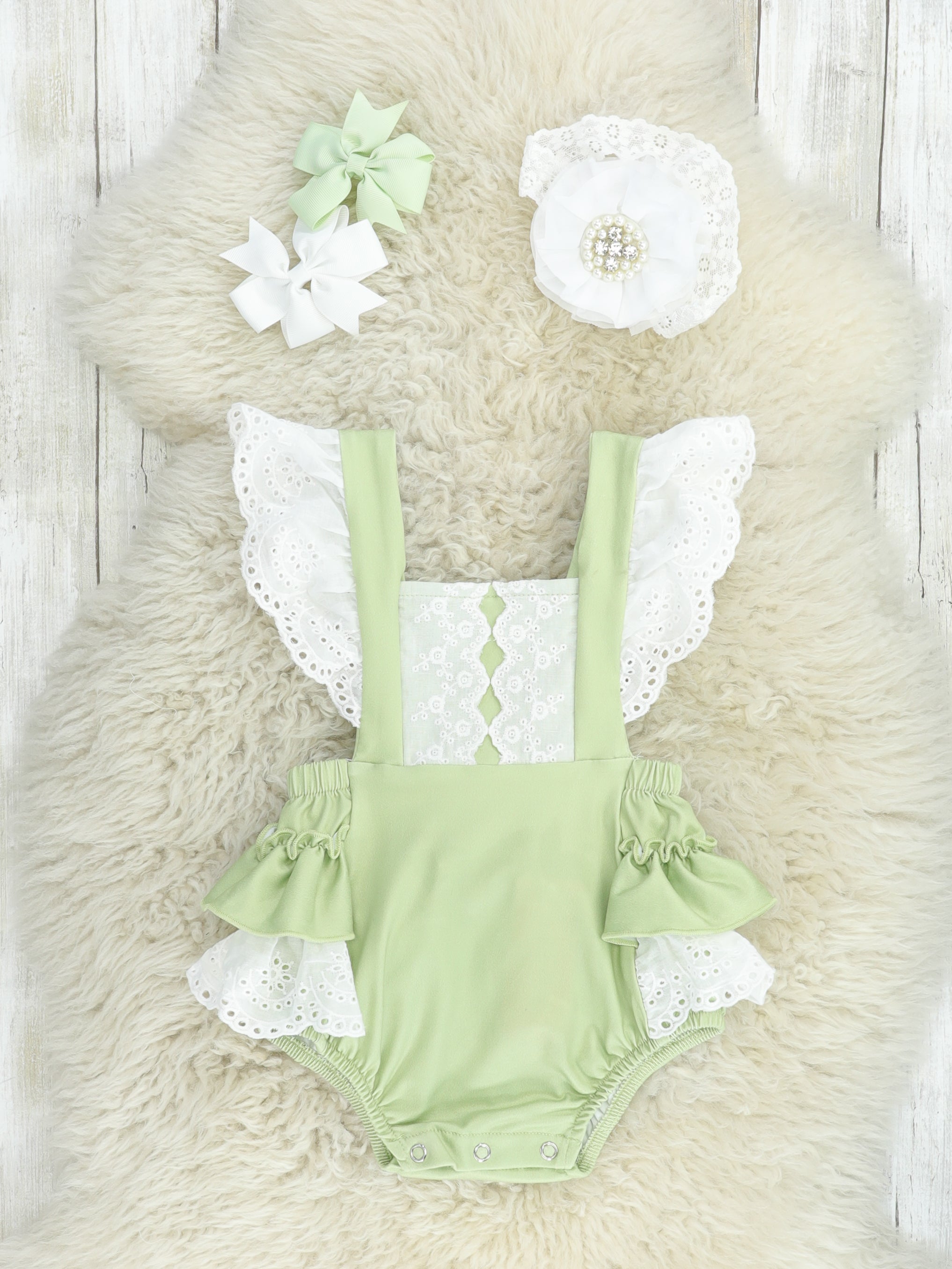 Sea Foam Green Floral Vintage Top & Suspender Skirt Set