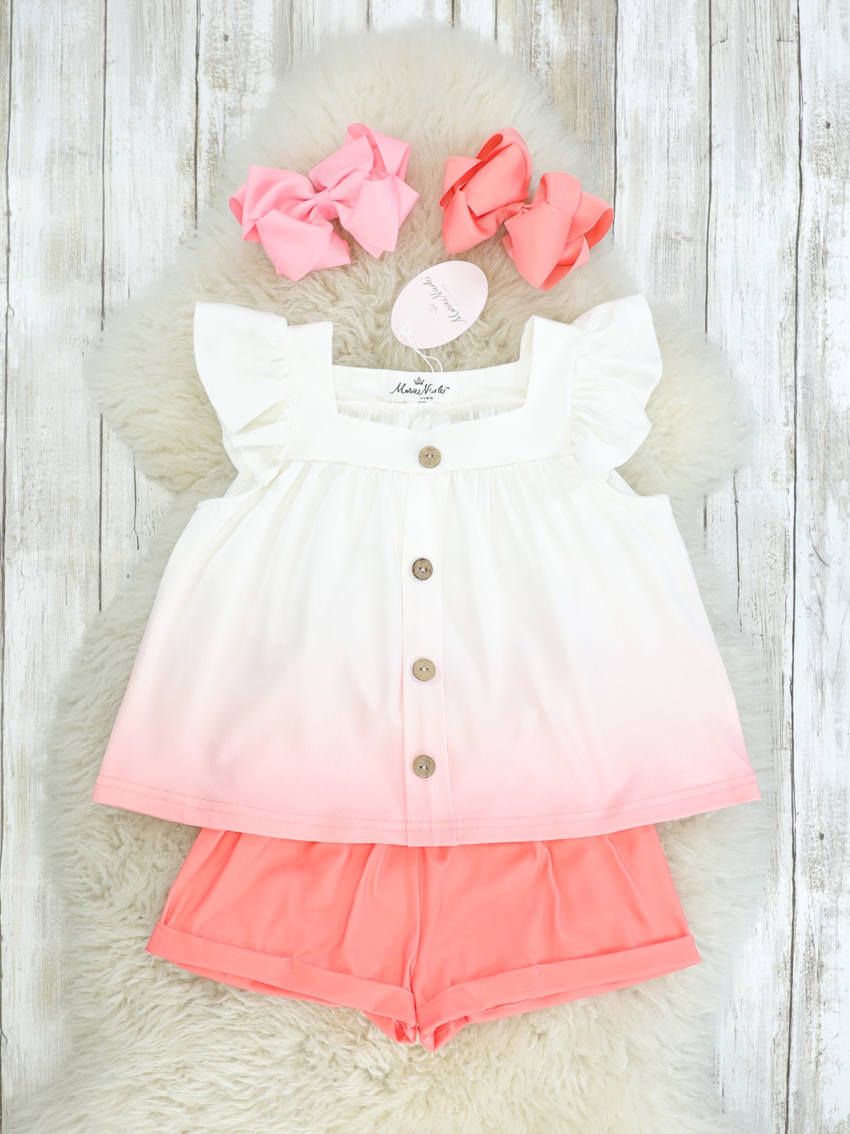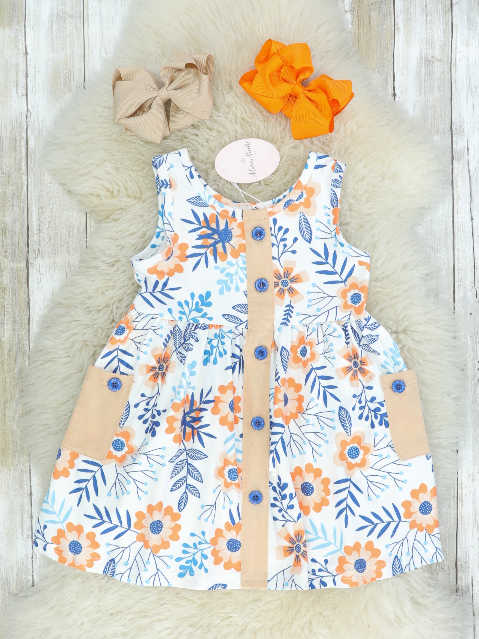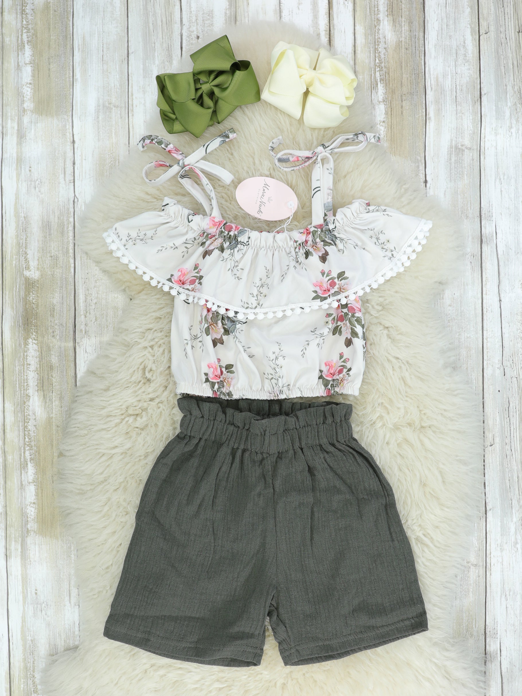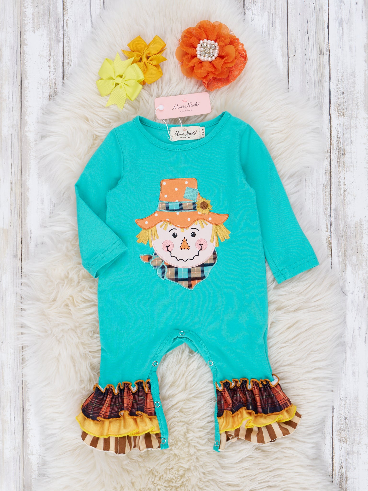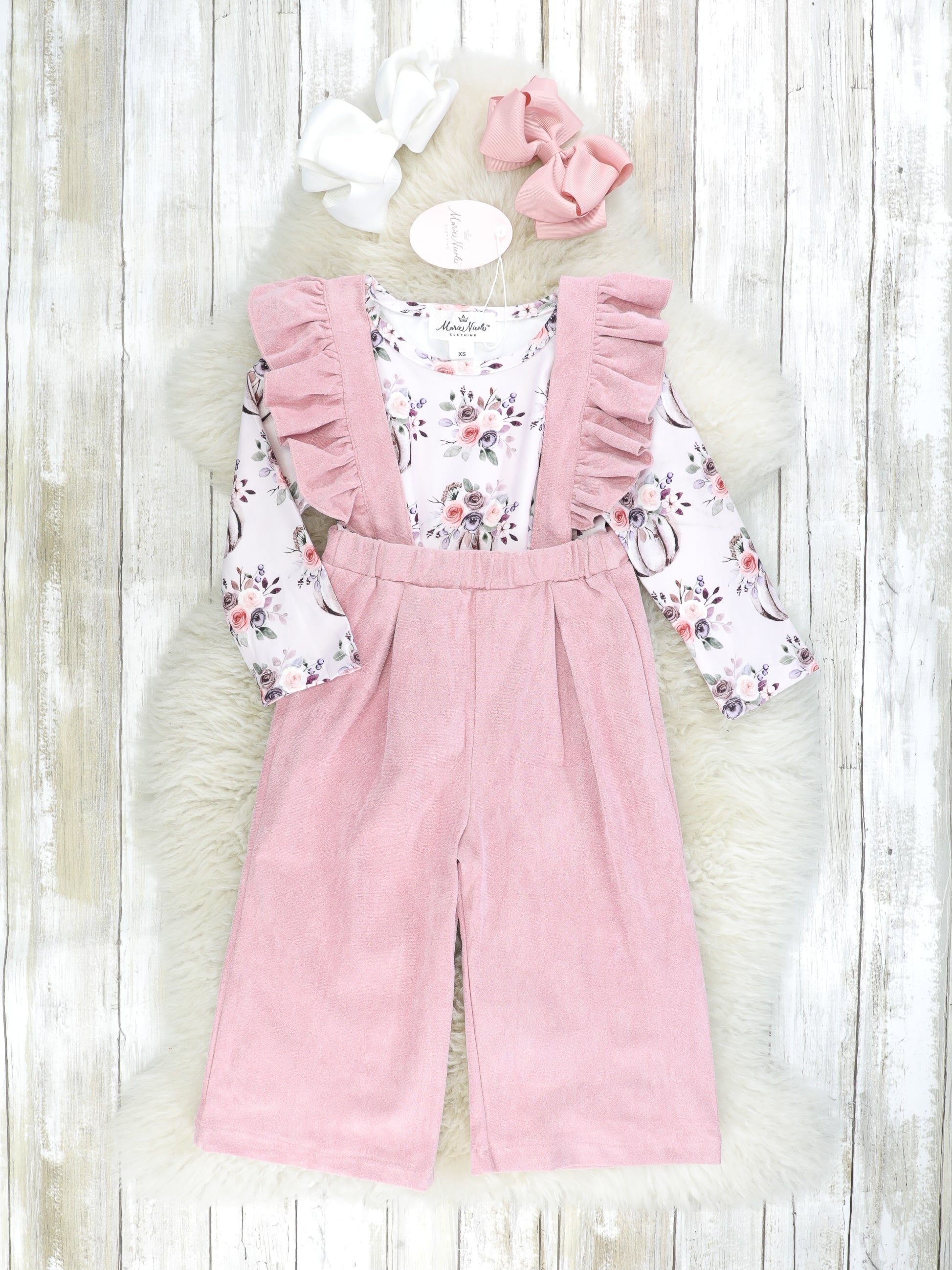 Vintage Floral Pumpkin Top & Pink Suede Ruffle Overall Set