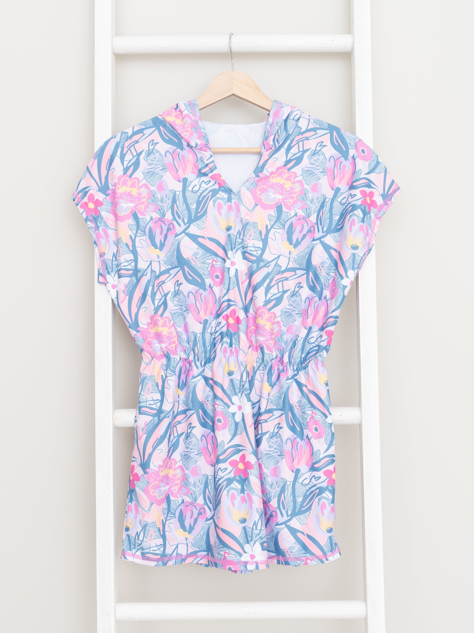 Watercolor Rose Ruffle Rash Guard Swimsuit