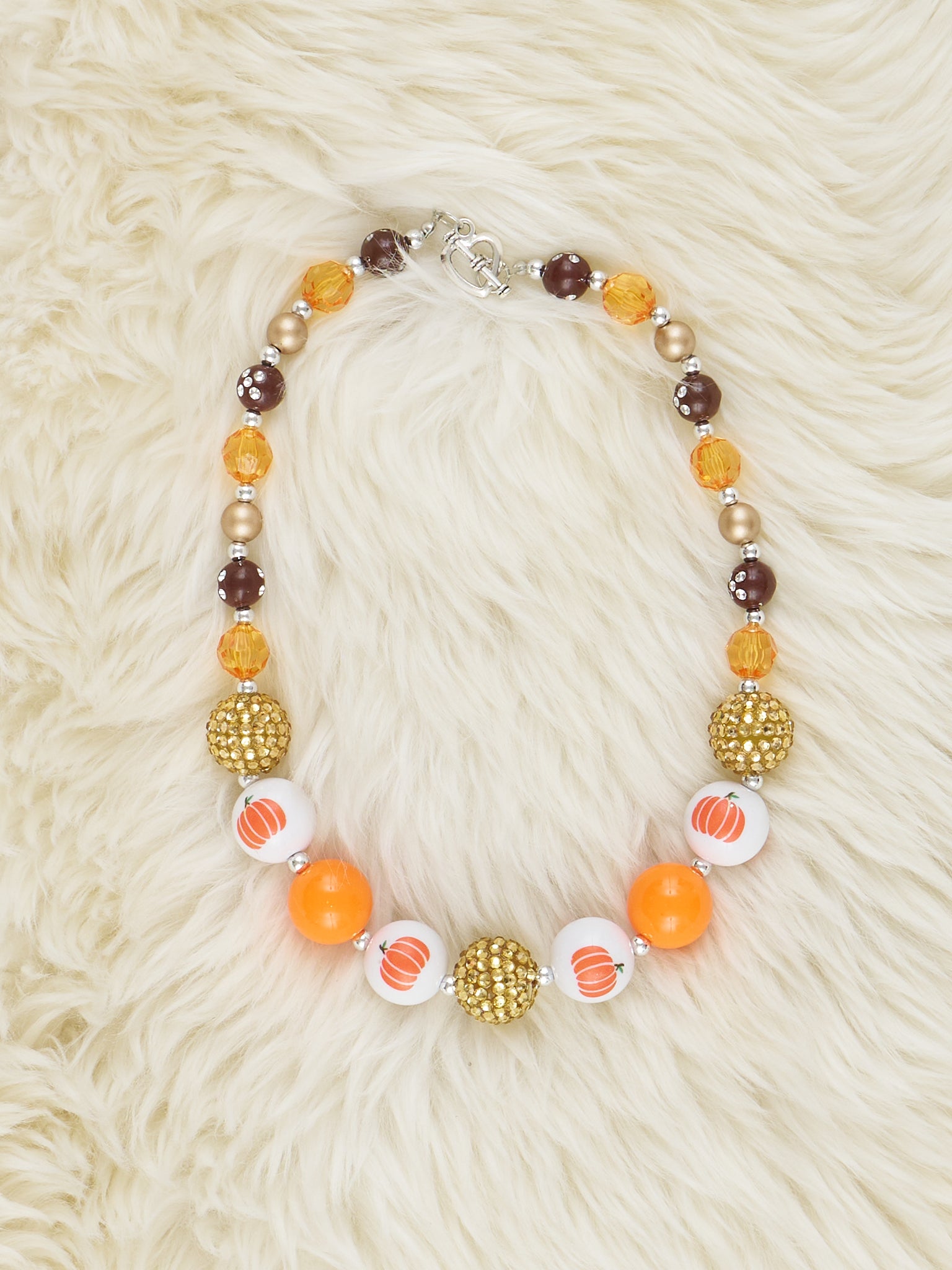 Gold Sparkle & Pumpkin Print Bubblegum Necklace