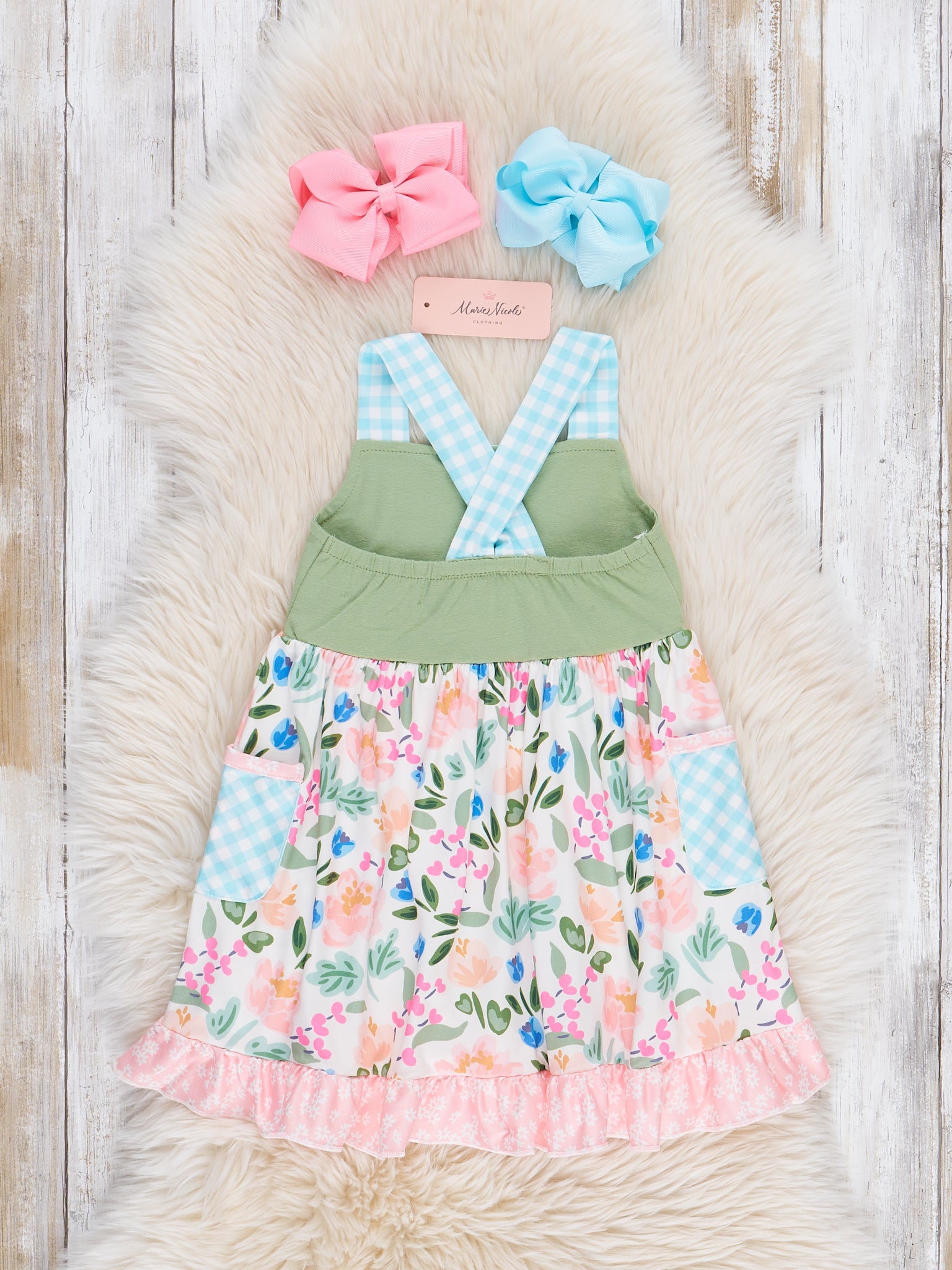 The Gingham Rose Garden Dress from Marie Nicole Clothing is blooming with charm, featuring a classic gingham print and delicate rose details. Soft, lightweight fabric and sweet ruffle accents make it perfect for sunny strolls and garden play. A picture-perfect look for your little flower!