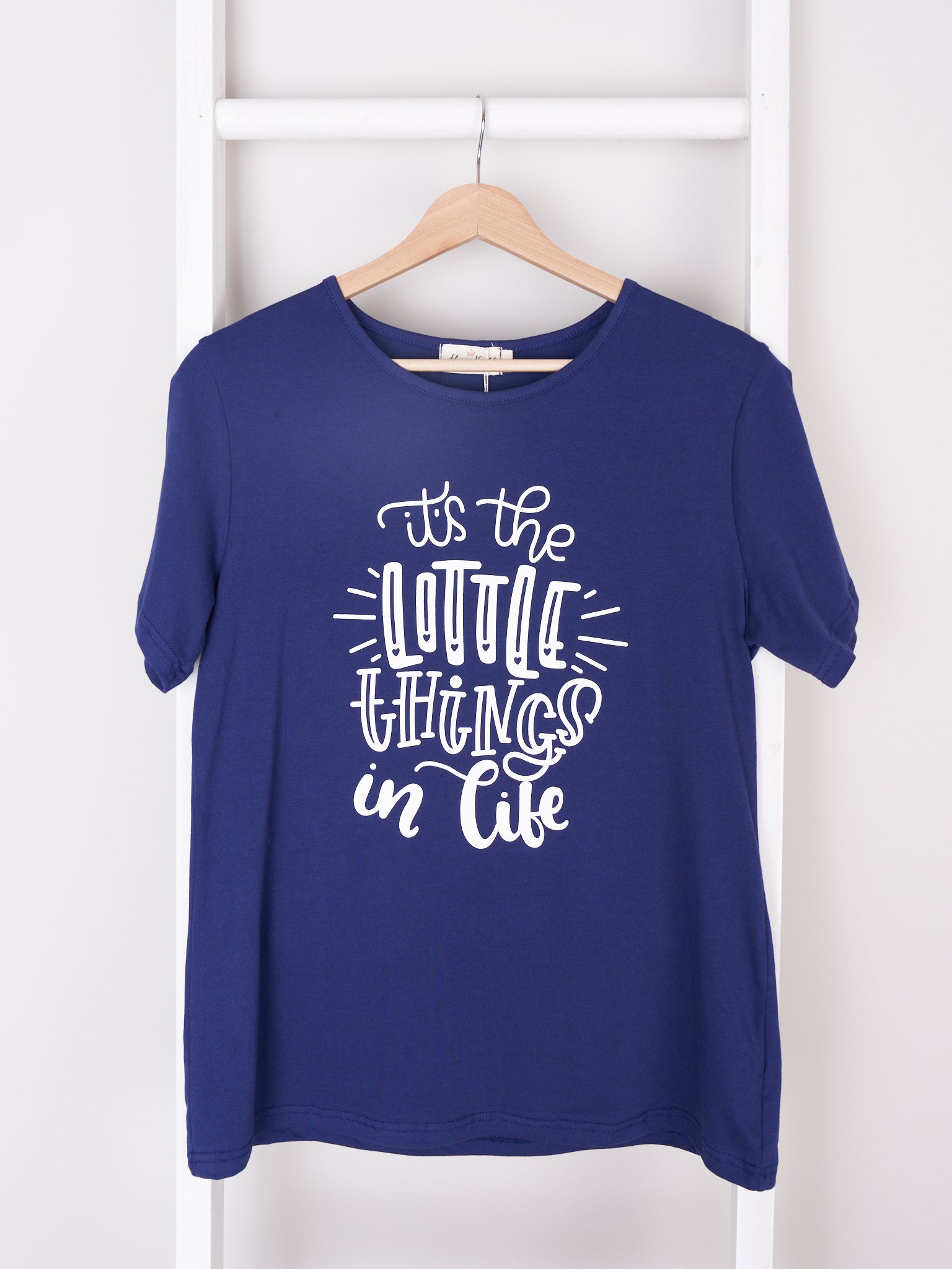 This Mom & Me "Little Things In Life" Shirt & Romper set is a guaranteed way to make you and your mini-me laugh! Featuring a classic blue color and a sweet reminder to "It's the little things in life," this matching set is sure to make all the moms out there smile.