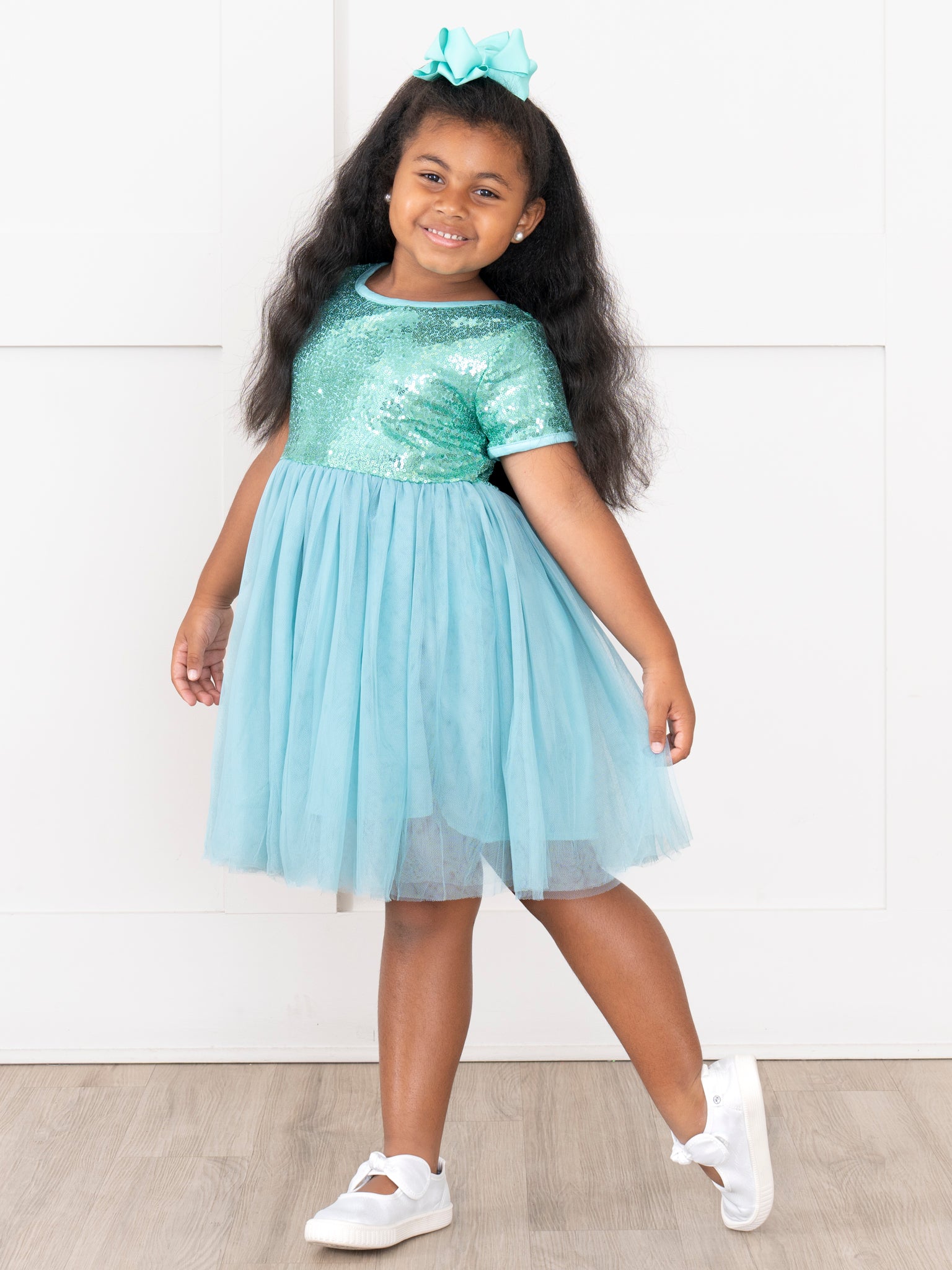 Teal Sparkly Tulle Swing Dress