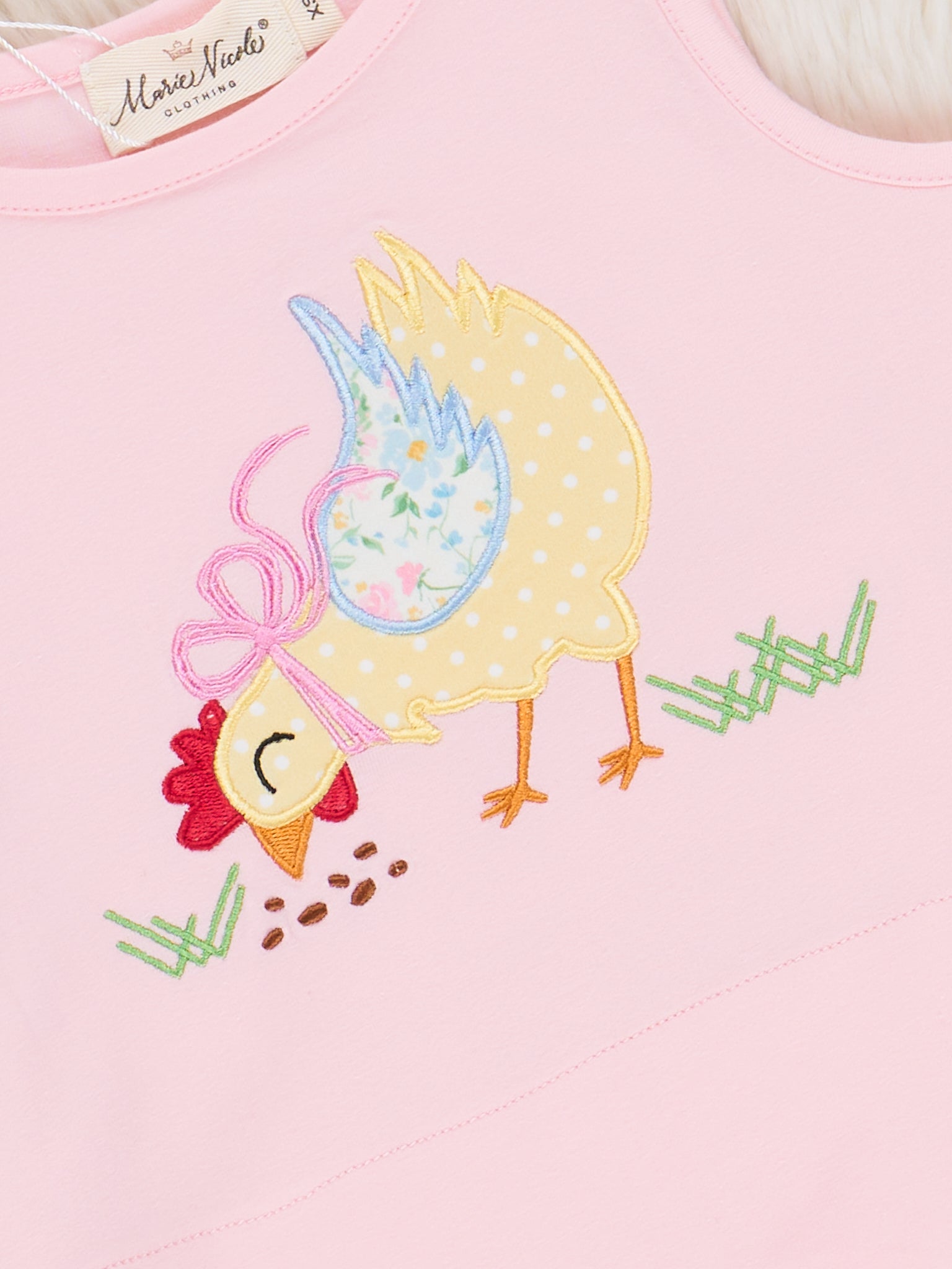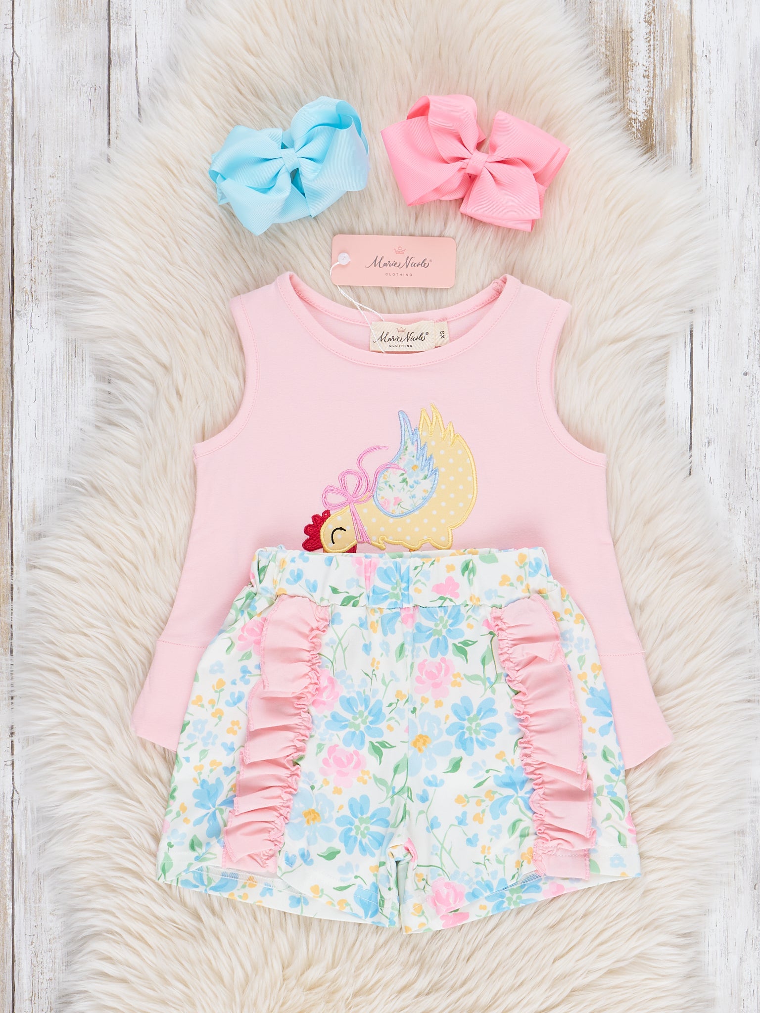 Bring a touch of farmyard charm to her day with the Grazing Hen Embroidered Ruffle Outfit from Marie Nicole Clothing. Featuring delicate hen embroidery and sweet ruffle accents, this outfit blends whimsy with comfort for everyday play or special outings. It's a chirping cute look she’ll love to wear!