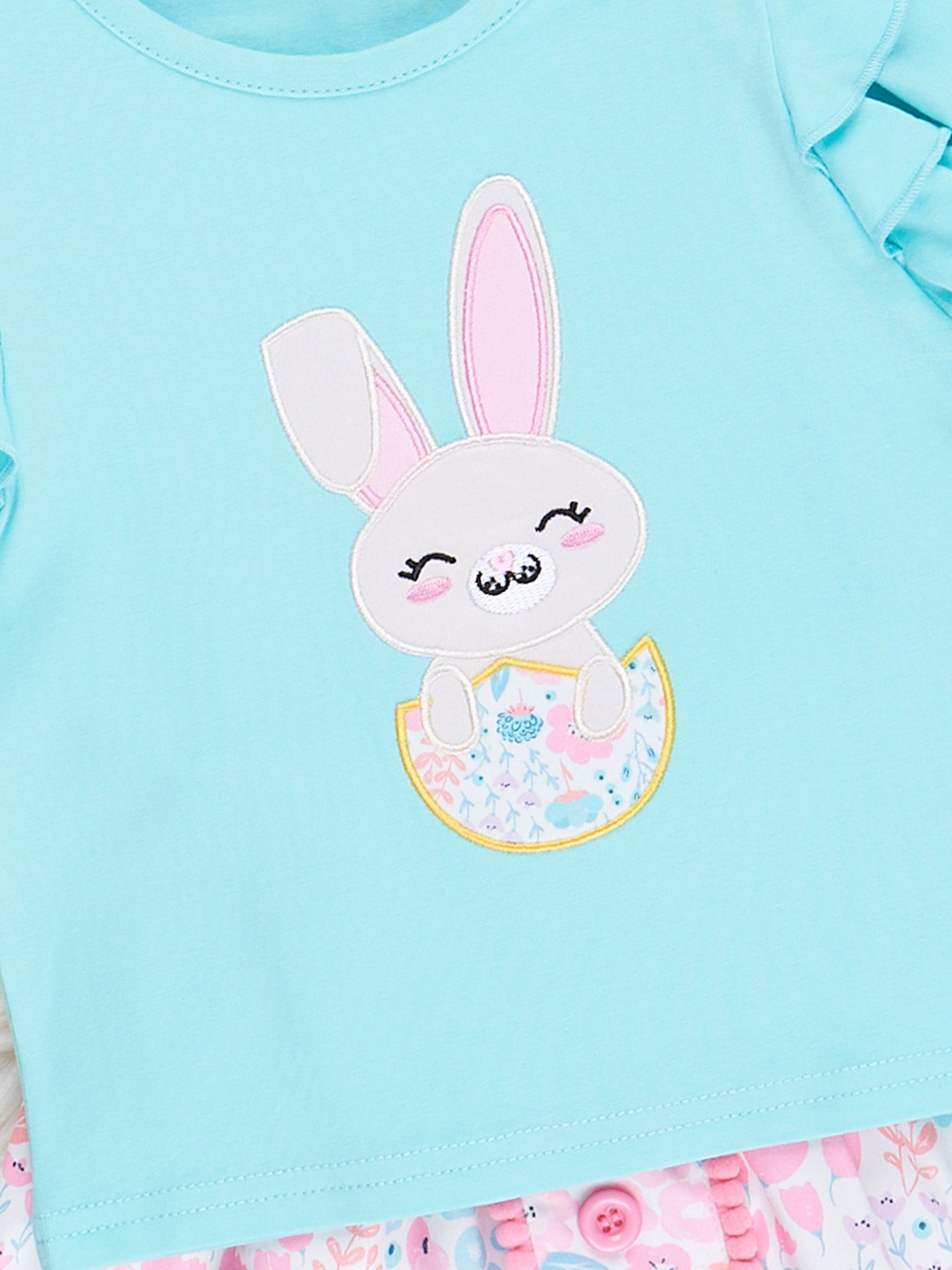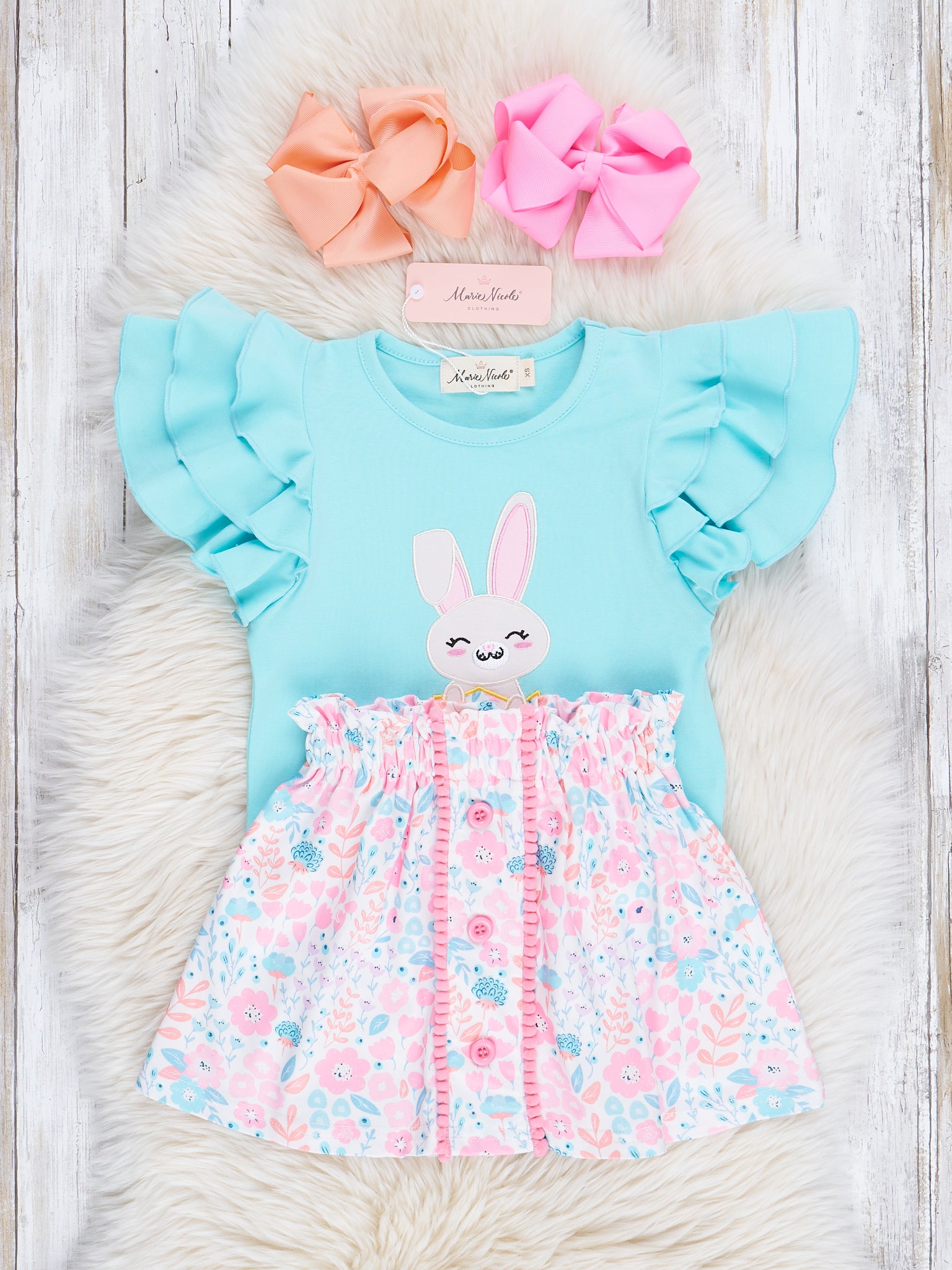 Ditsy Florals Bunny Embroidered Outfit w/ Skirt