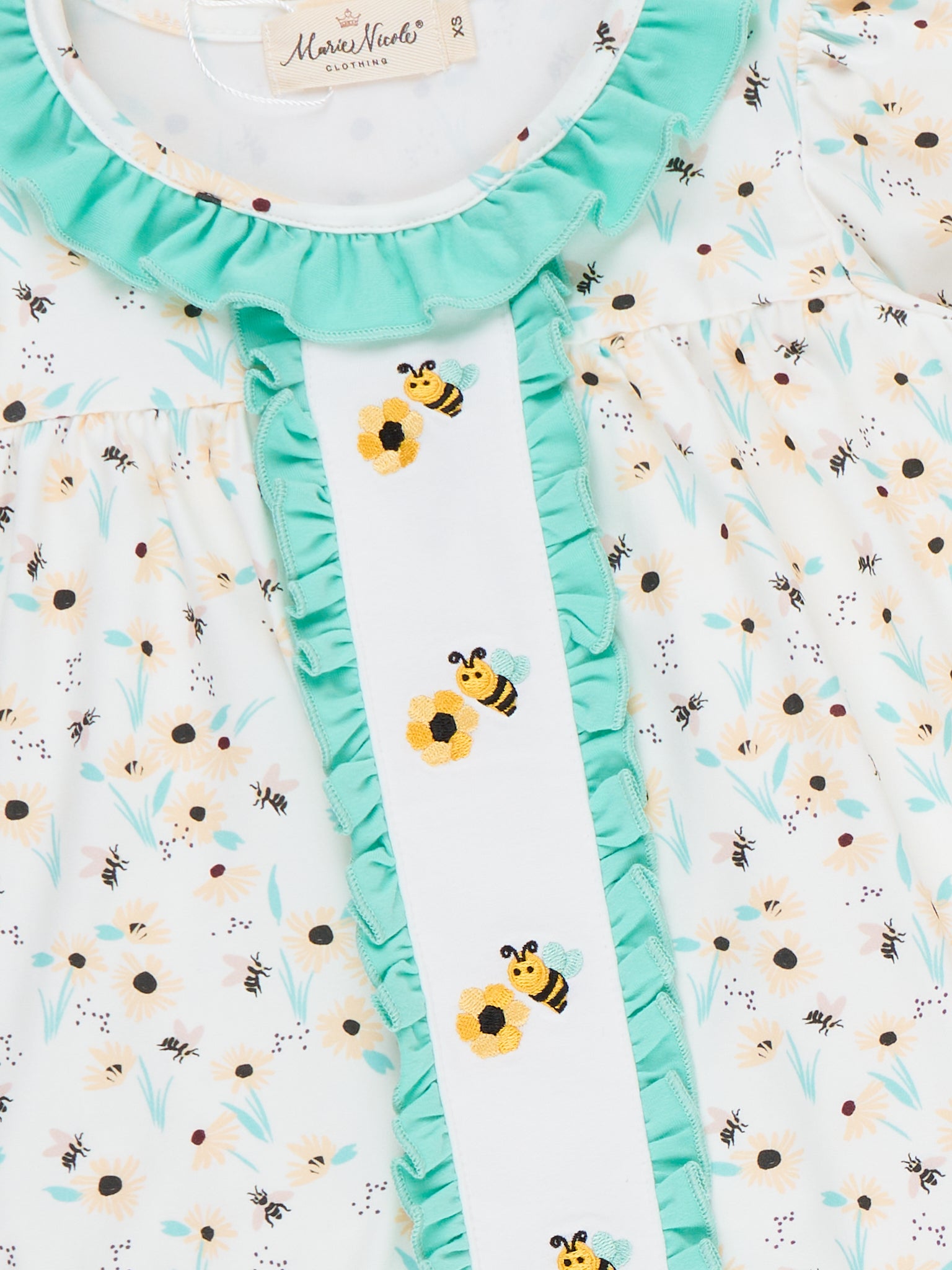 The Honey Meadow Embroidered Ruffle Dress by Marie Nicole Clothing brings springtime charm to every occasion with its fluttery silhouette and embroidered whimsical bees and flowers. Crafted in a soft, breezy fabric and finished with ruffled details, this dress is perfect for garden parties, seasonal festivities, or simply twirling on sunlit afternoons. Its design celebrates boutique artistry and the sweet delight of childhood moments among blooming meadows.