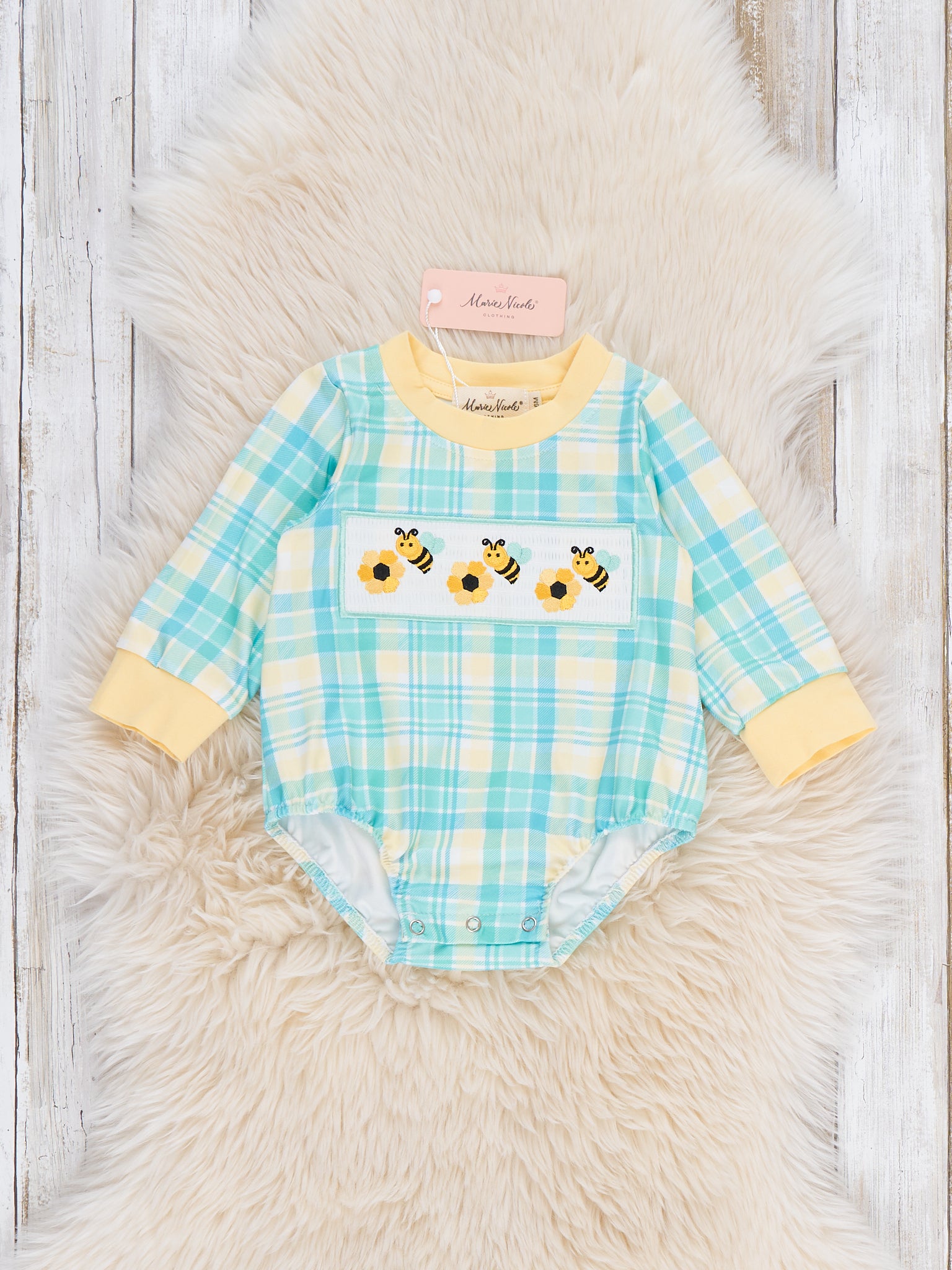 Honey Blossom Smocked Plaid Onsie