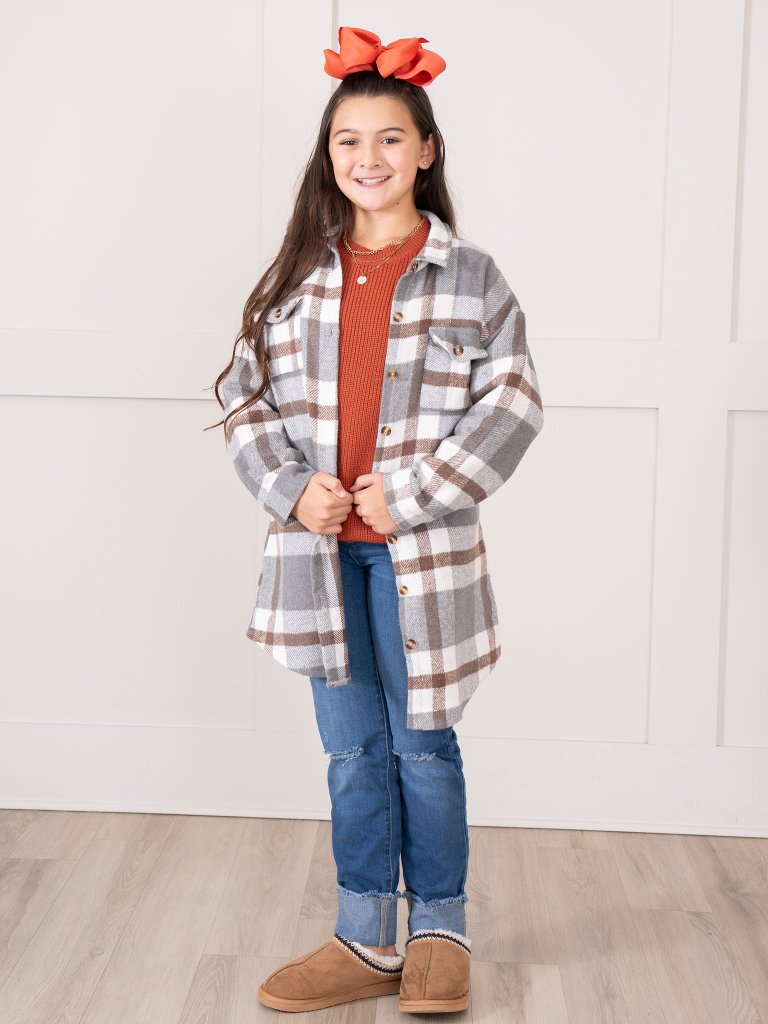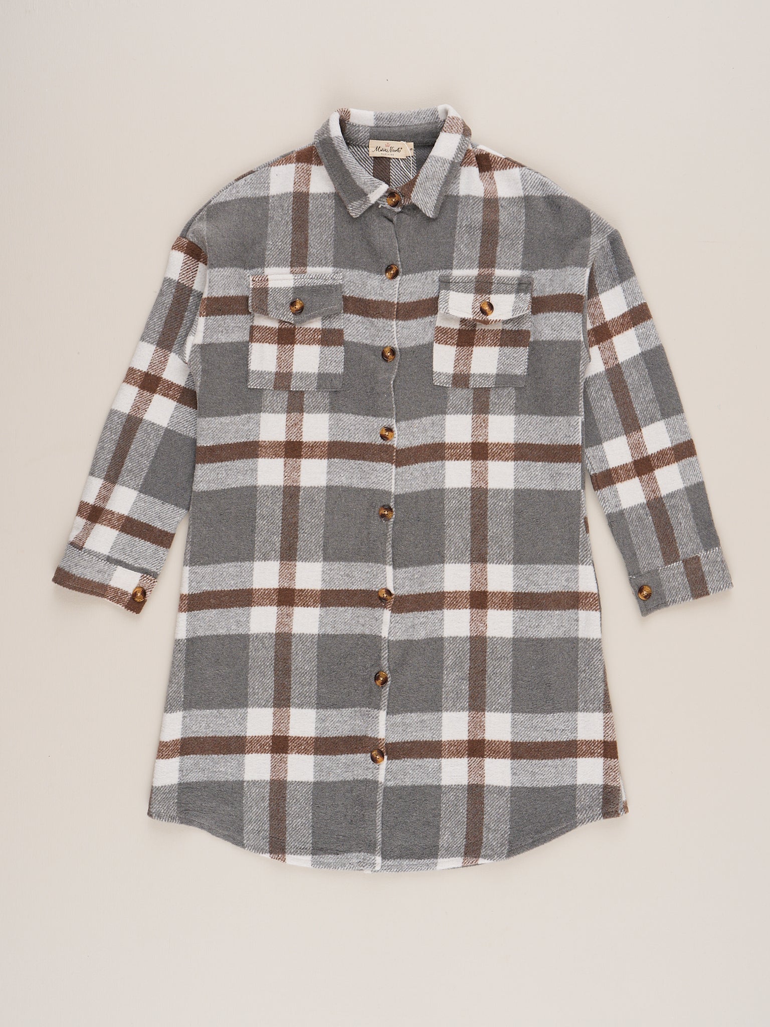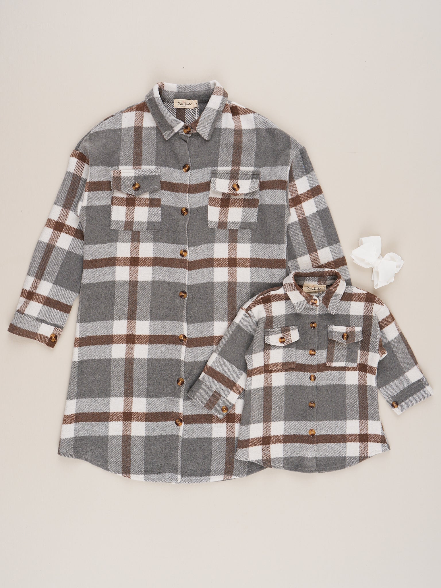 Mom & Me Long Flannel Shacket - Grey Plaid