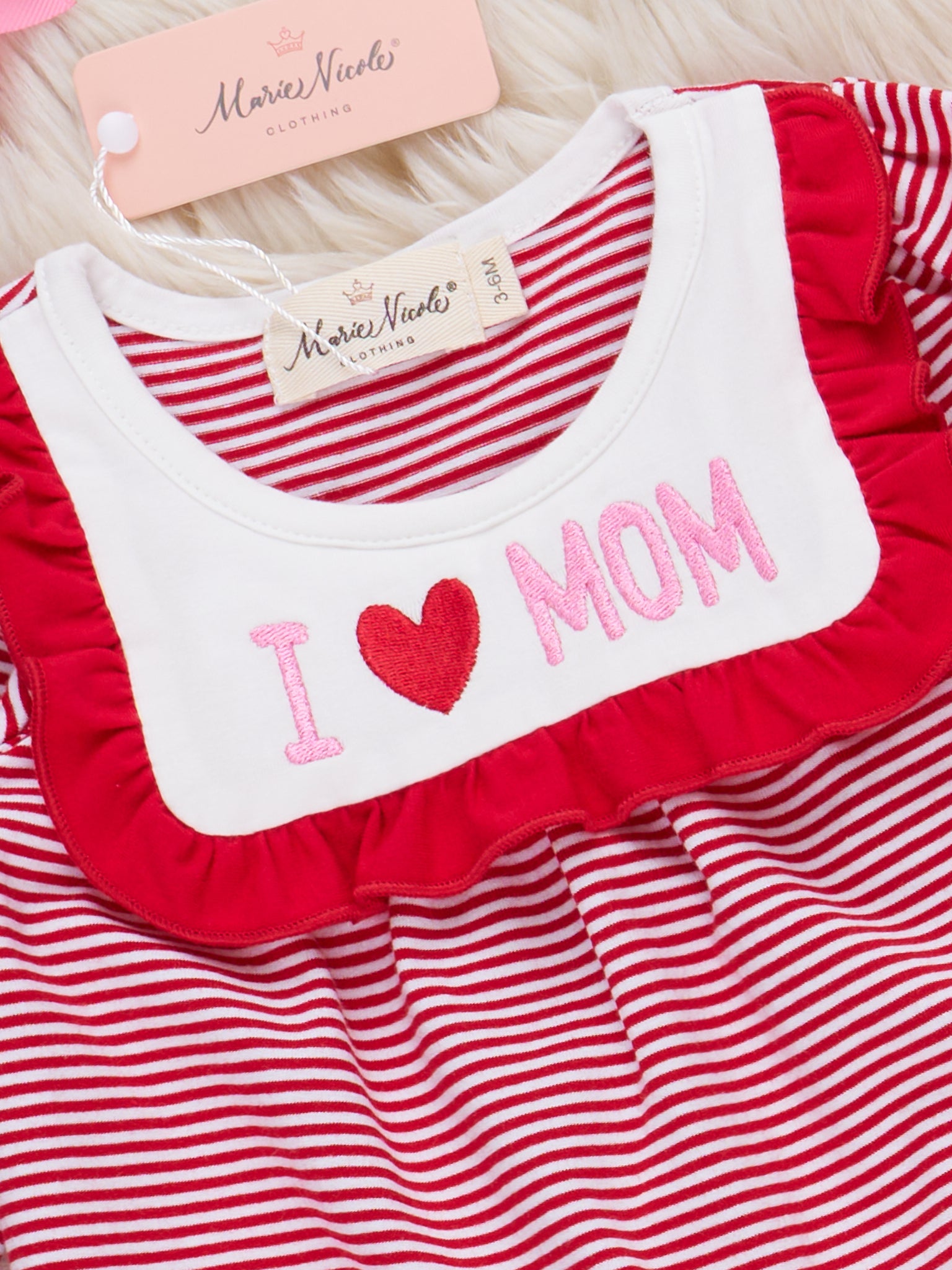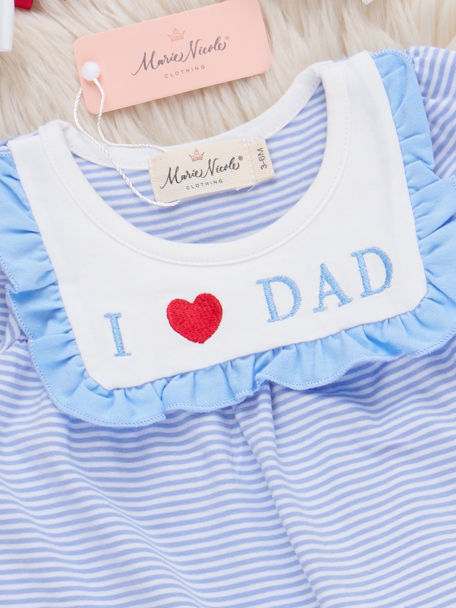 Blue & Red Stripes Embroidered Hearts Ruffle Romper