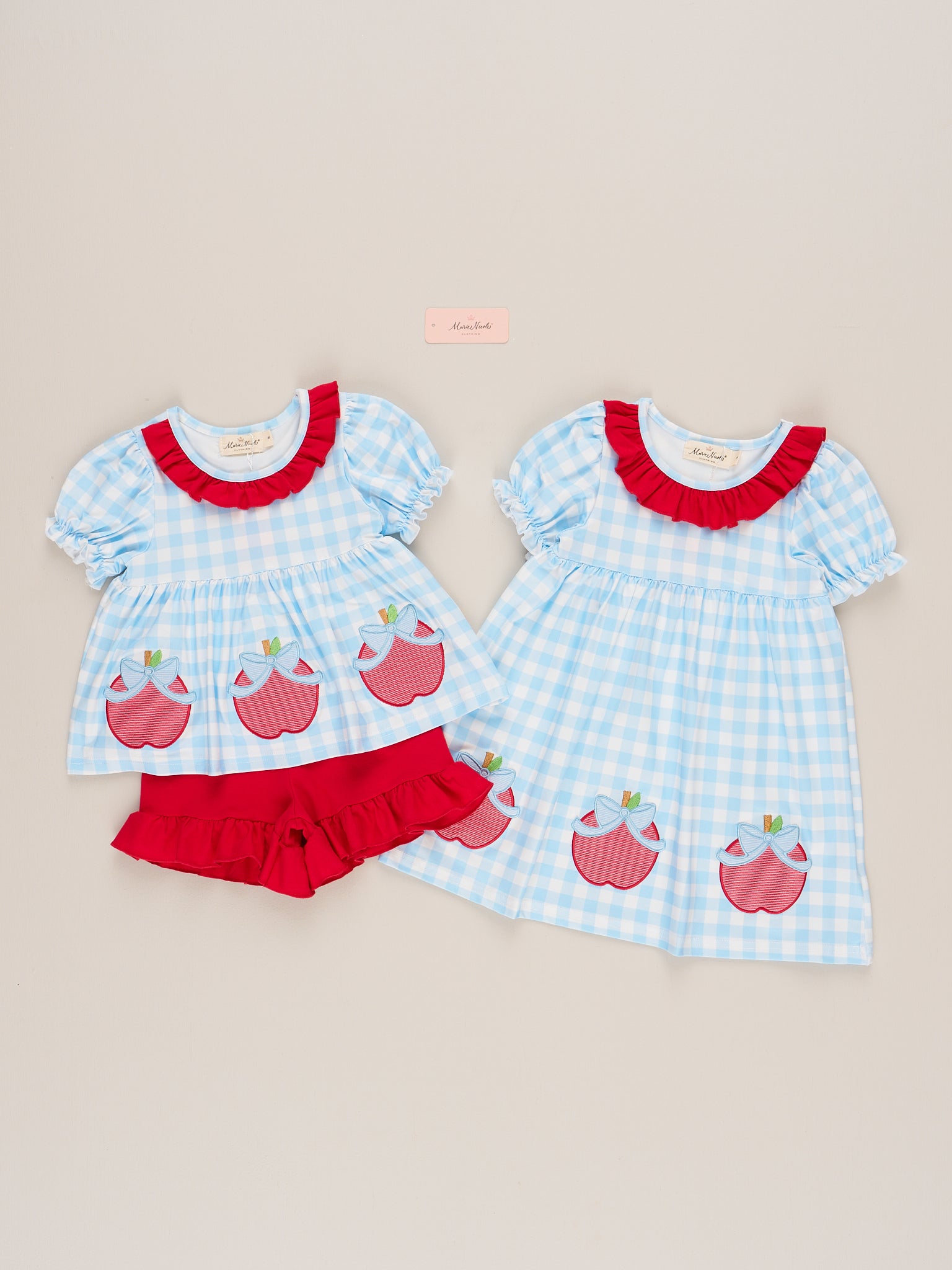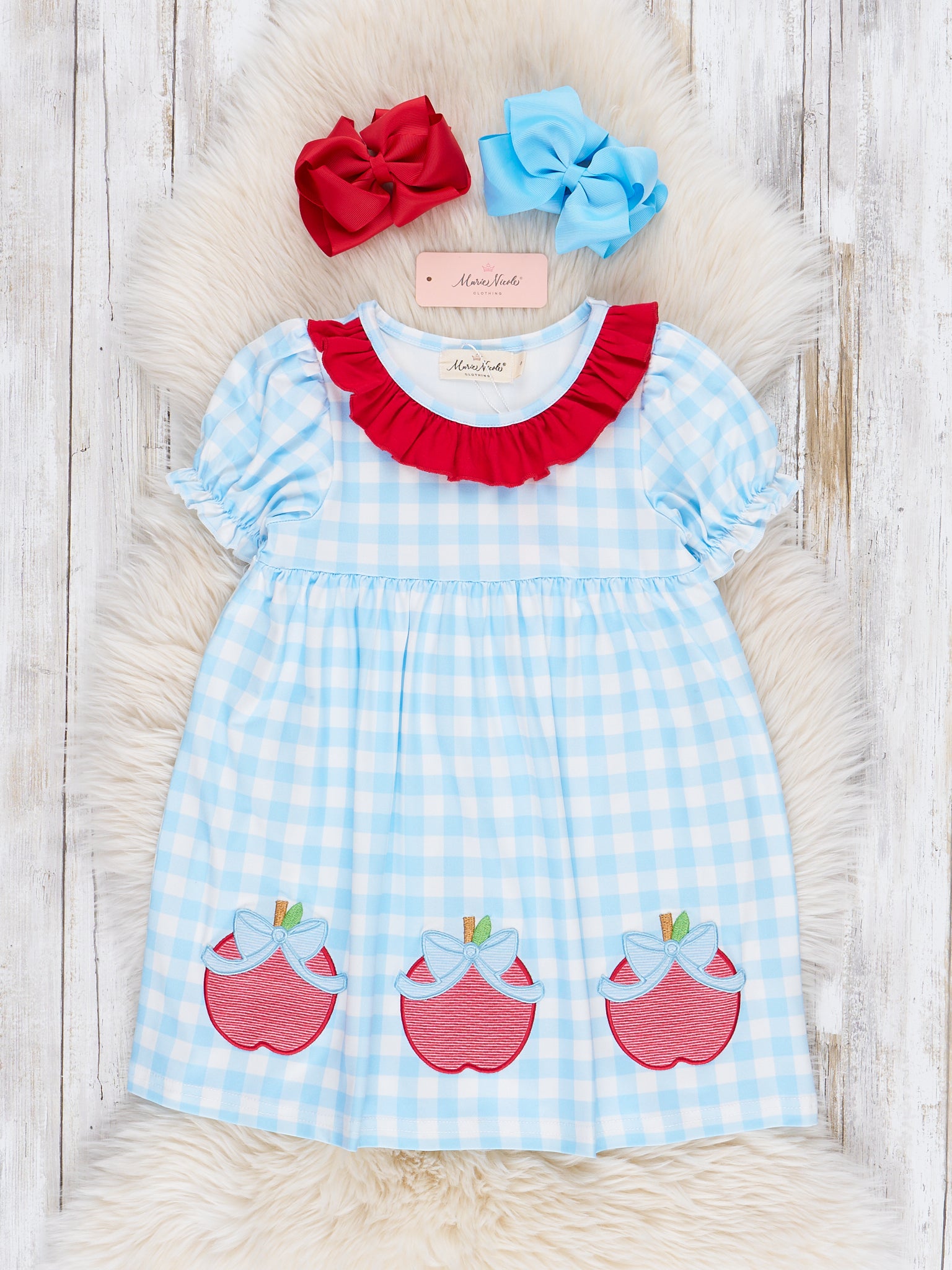 The Fresh Picked Apples Dress is a classic and charming choice, perfect for school days, apple picking, and sweet fall moments. Featuring a delightful apple print and finished with soft ruffle accents, this dress from Marie Nicole Clothing brings together timeless style and playful comfort. Lightweight and breathable, it’s made for twirls, smiles, and picture-perfect memories.