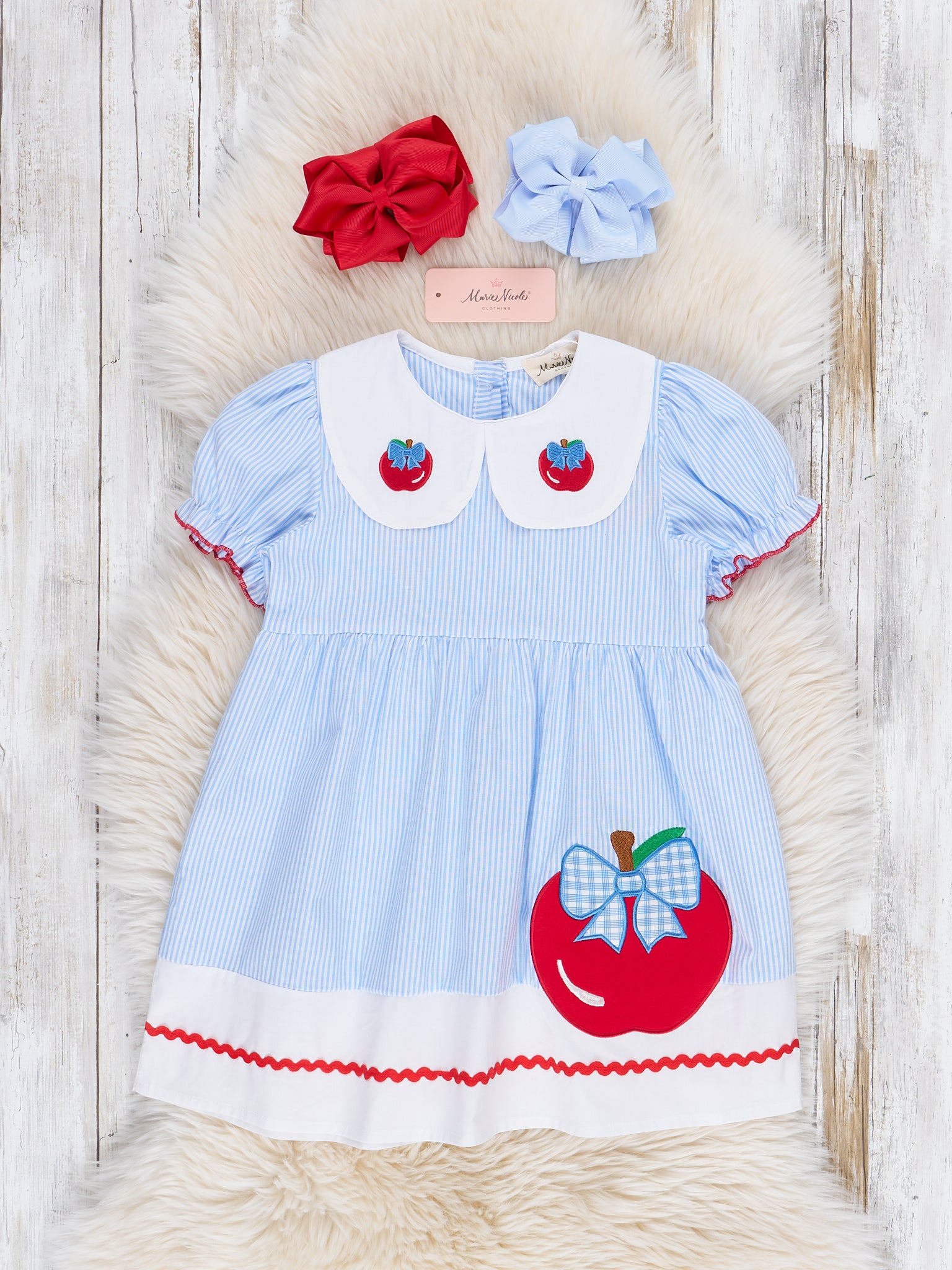 The Gingham Ribbon Apple Dress is a sweet and timeless look perfect for school days and fall outings. Featuring a classic gingham print accented with charming apple and ribbon details, this dress from Marie Nicole Clothing blends playful design with traditional style. Soft, lightweight, and easy to wear, it’s ideal for classroom fun, family photos, or any day she wants to look extra adorable.