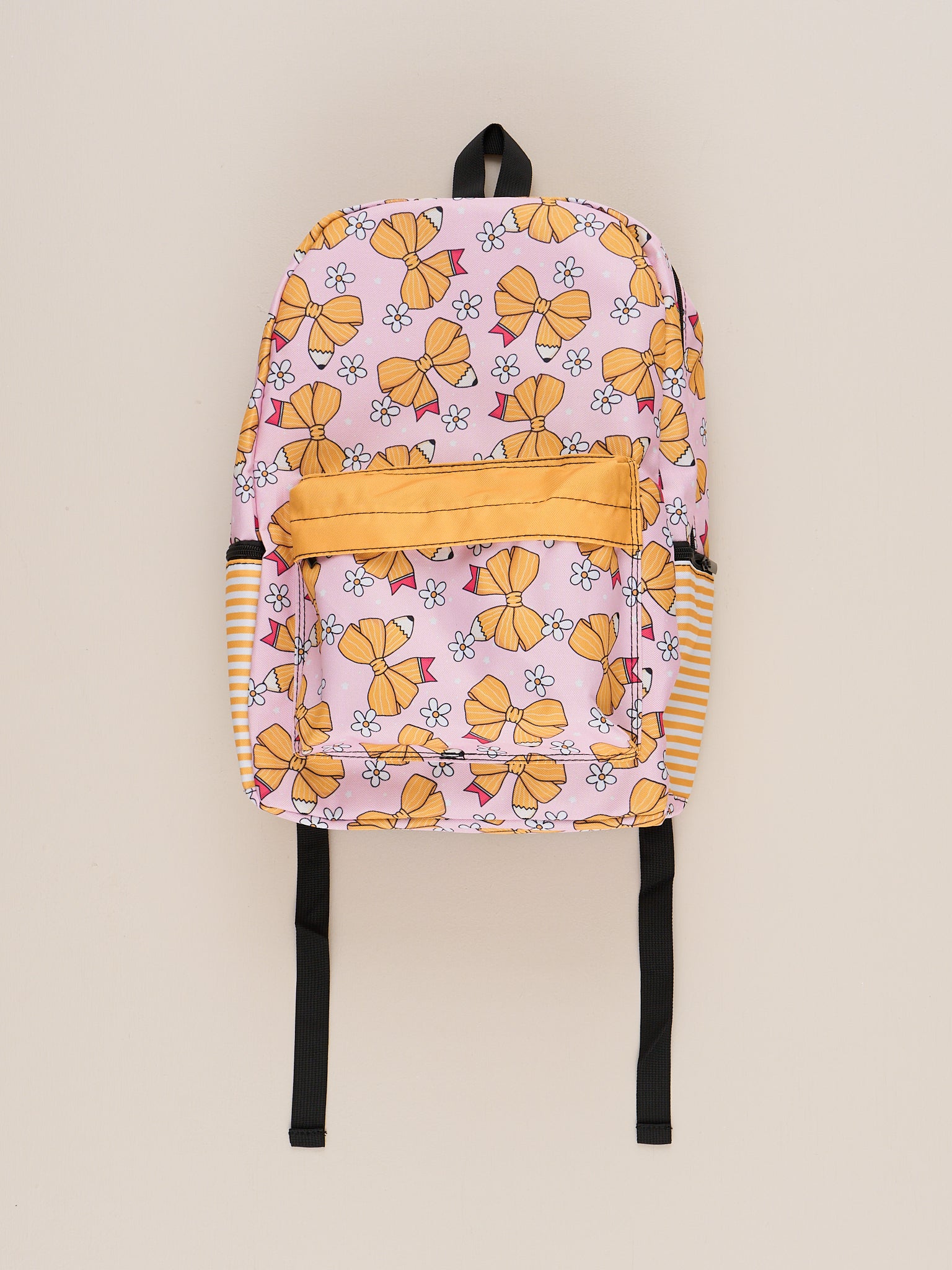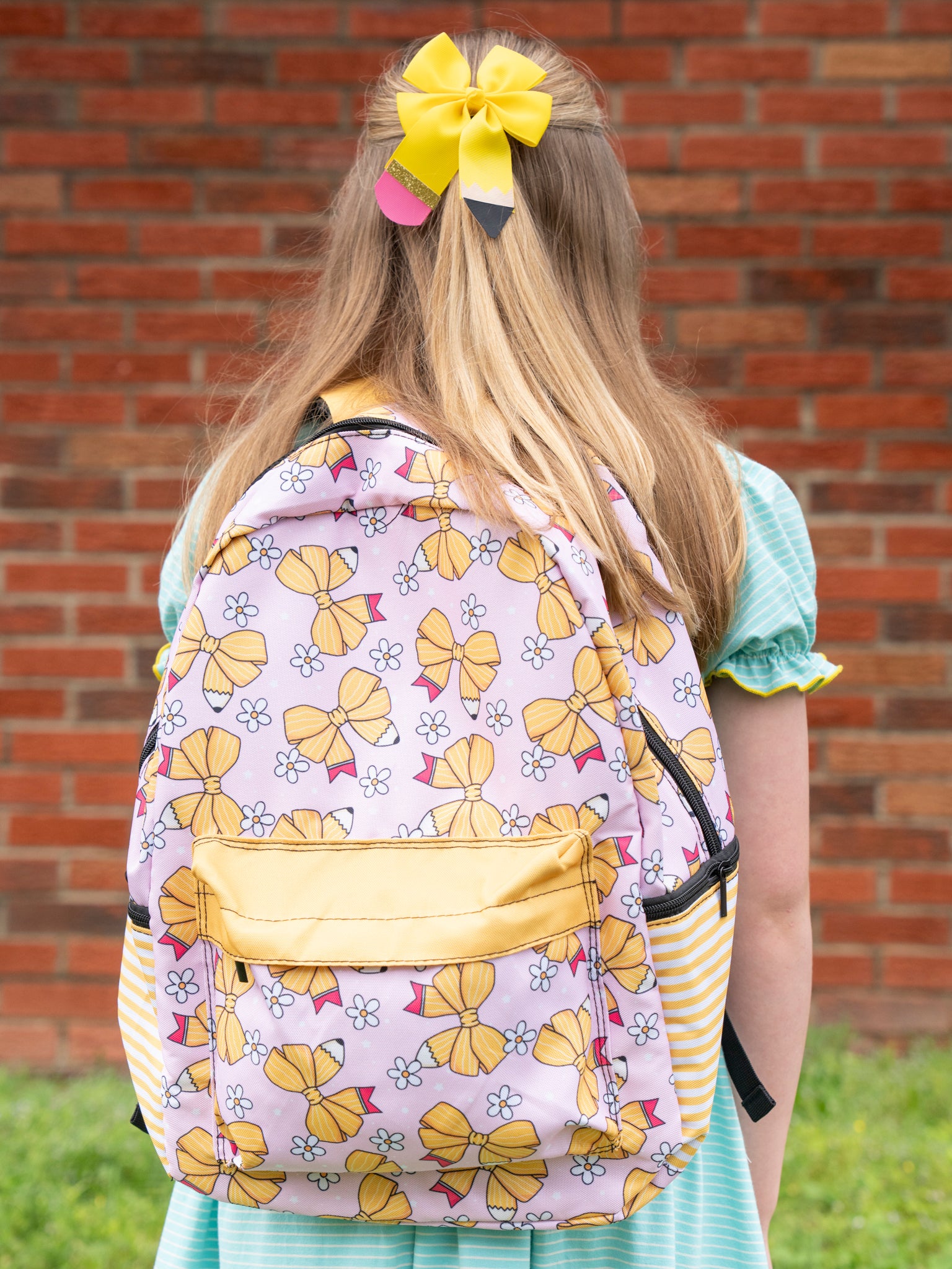 School days just got a little brighter with the No. 2 Pencil Bows & Daisies Backpack! Featuring a playful design with adorable pencil graphics, bow details, and cheerful daisies, this backpack from Marie Nicole Clothing combines fun and functionality. With plenty of room for books, supplies, and more, plus padded straps for comfort, it’s the perfect way to carry all her essentials in style. A must-have for any little student ready to take on the day with a smile!