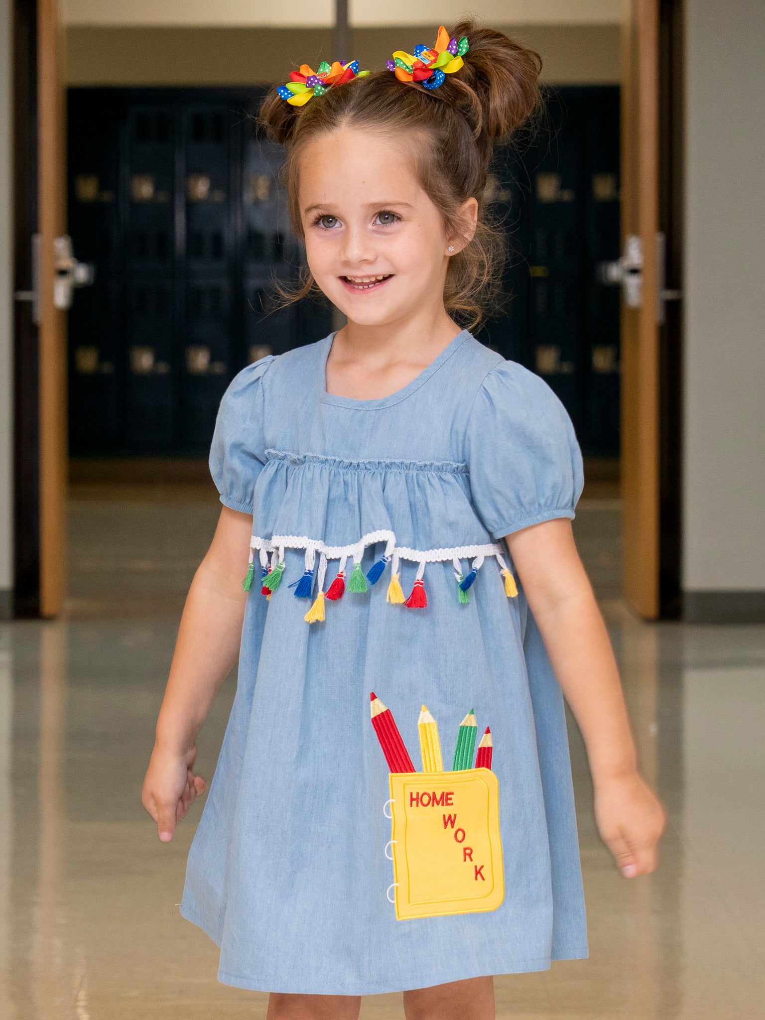 The Tassel Colors Chambray Dress is a playful twist on a classic favorite, perfect for bright days and big smiles. Made from soft chambray and accented with colorful tassel trim and embroidered detailing, this dress from Marie Nicole Clothing blends fun textures with timeless charm. Lightweight and breezy, it’s ideal for twirling through playdates, parties, or any day she wants to add a pop of color to her look.