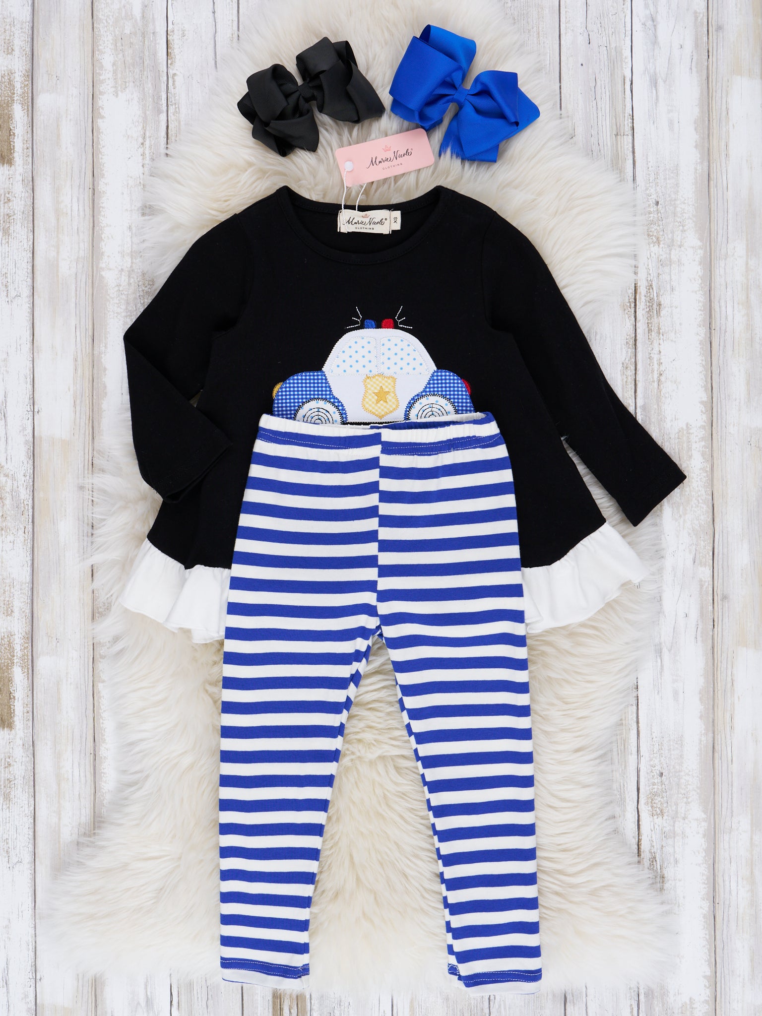 Black & Blue Stripe Little Cop Ruffle Outfit