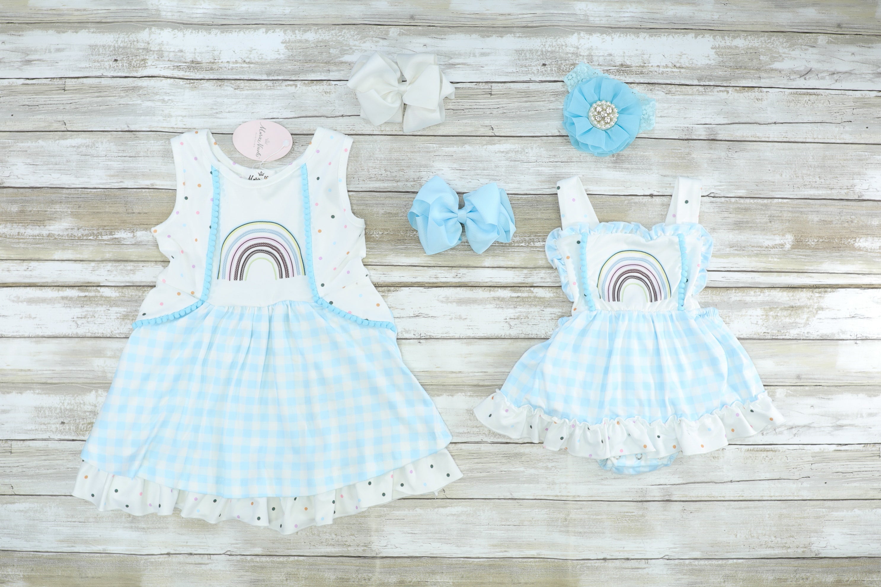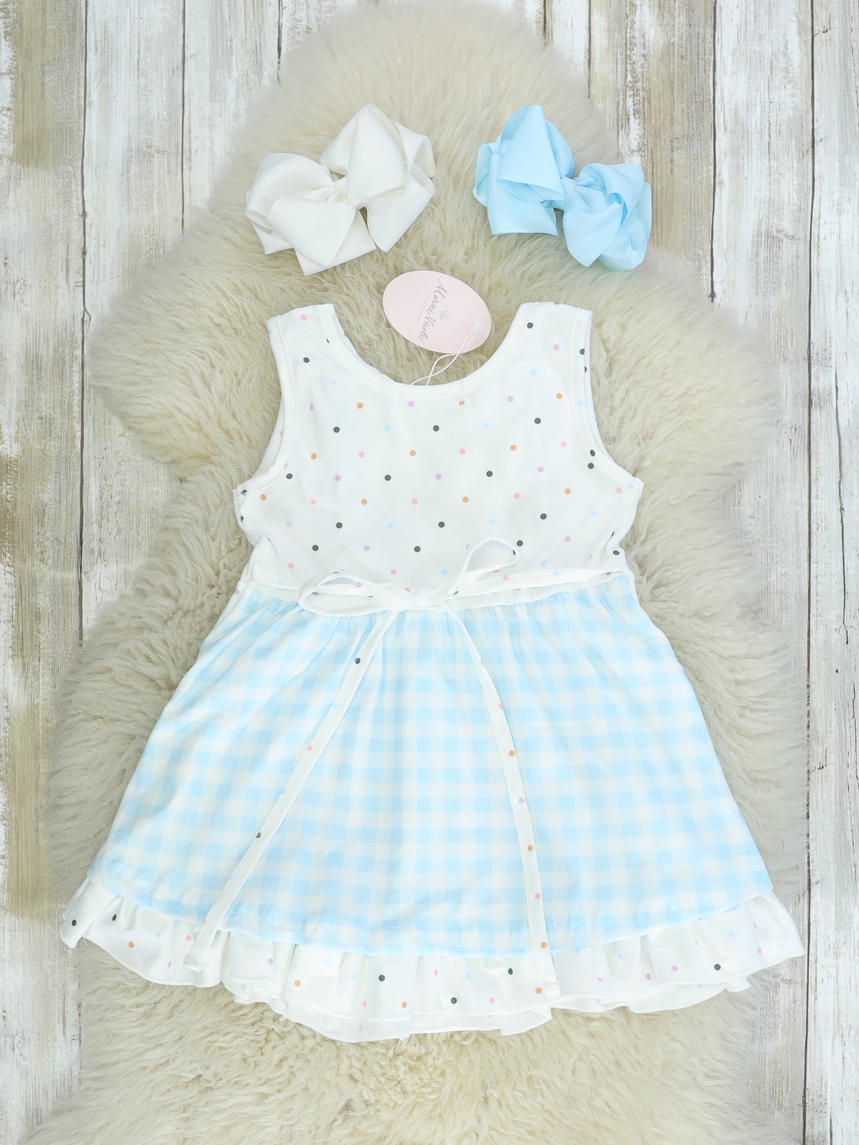 Blue Check Rainbow Ruffle Dress