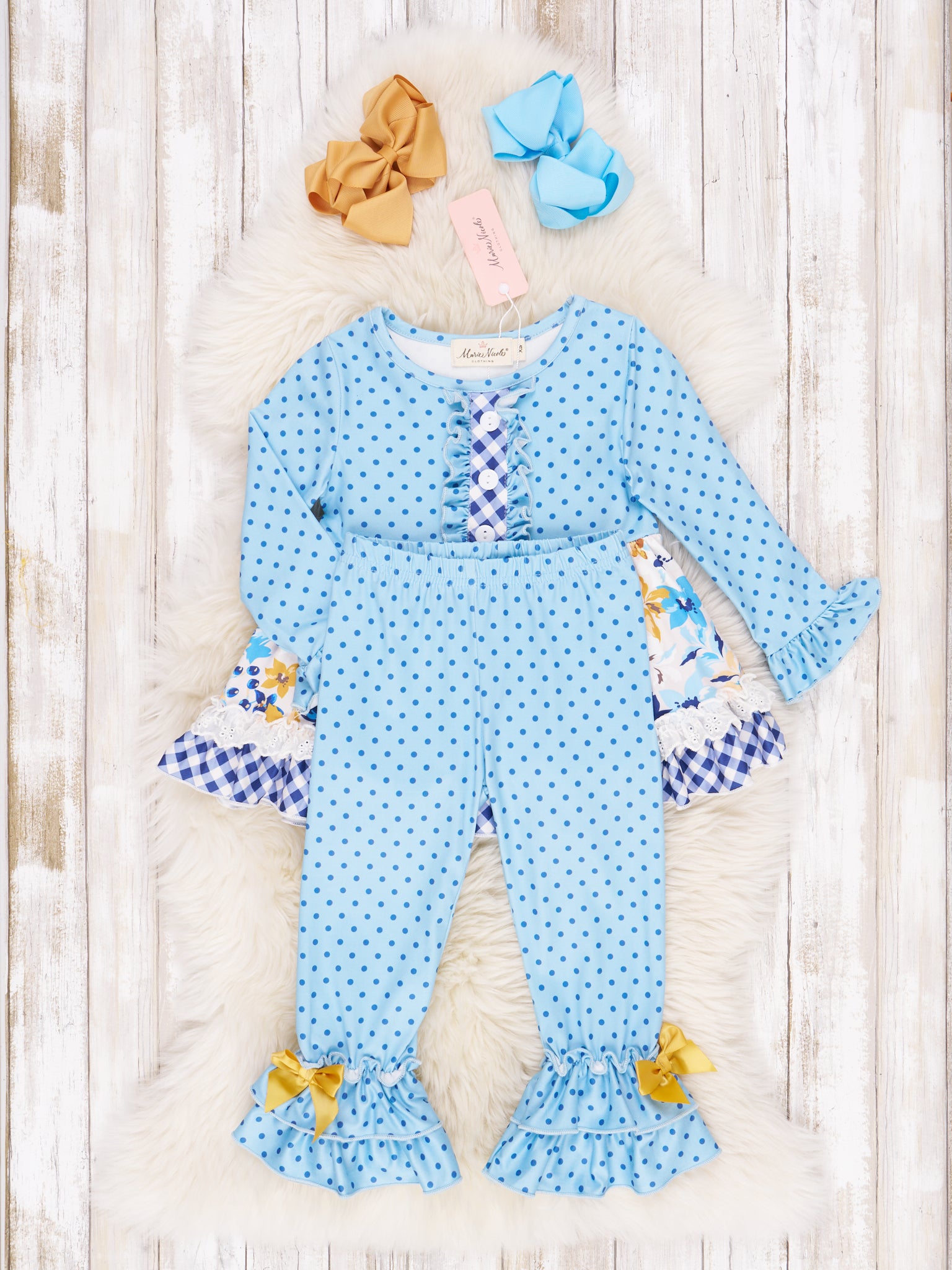 Blue Floral & Gingham Ruffle Outfit