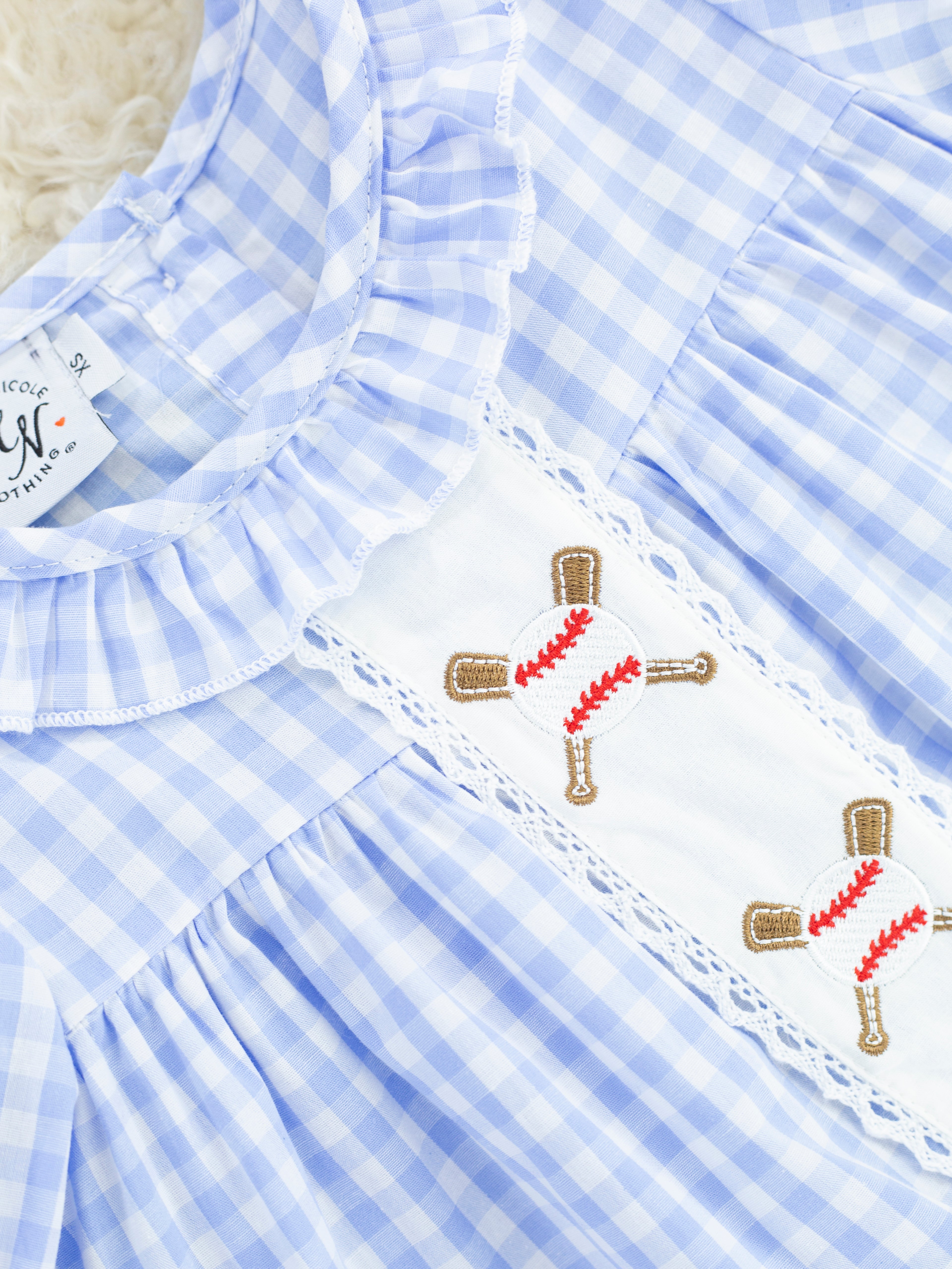 Blue Gingham Baseball Ruffle Dress