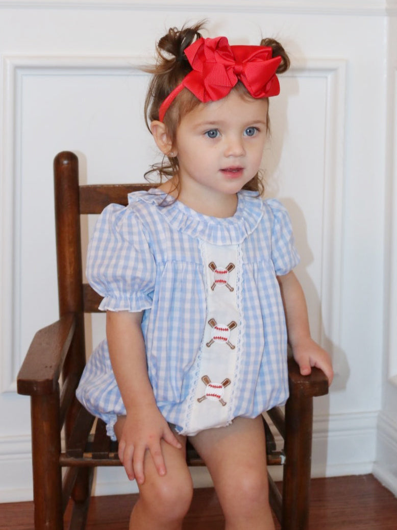Blue Gingham Baseball Ruffle Bubble