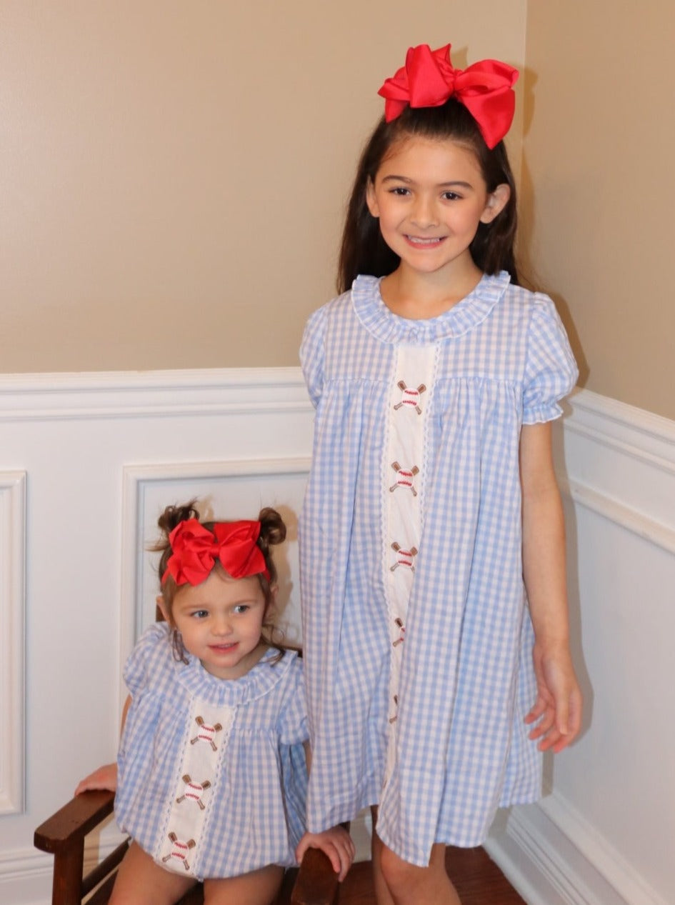 Blue Gingham Baseball Sister Set