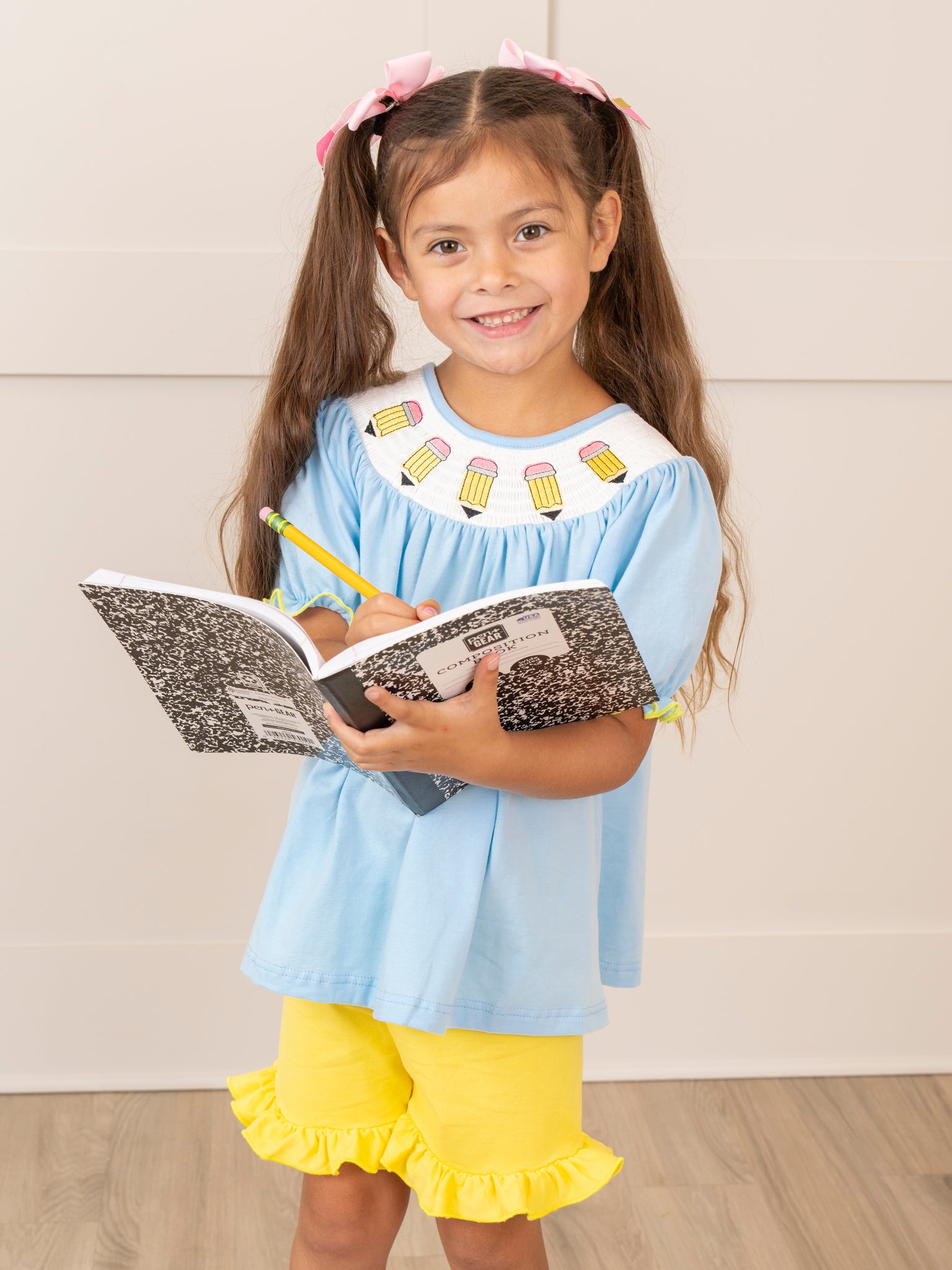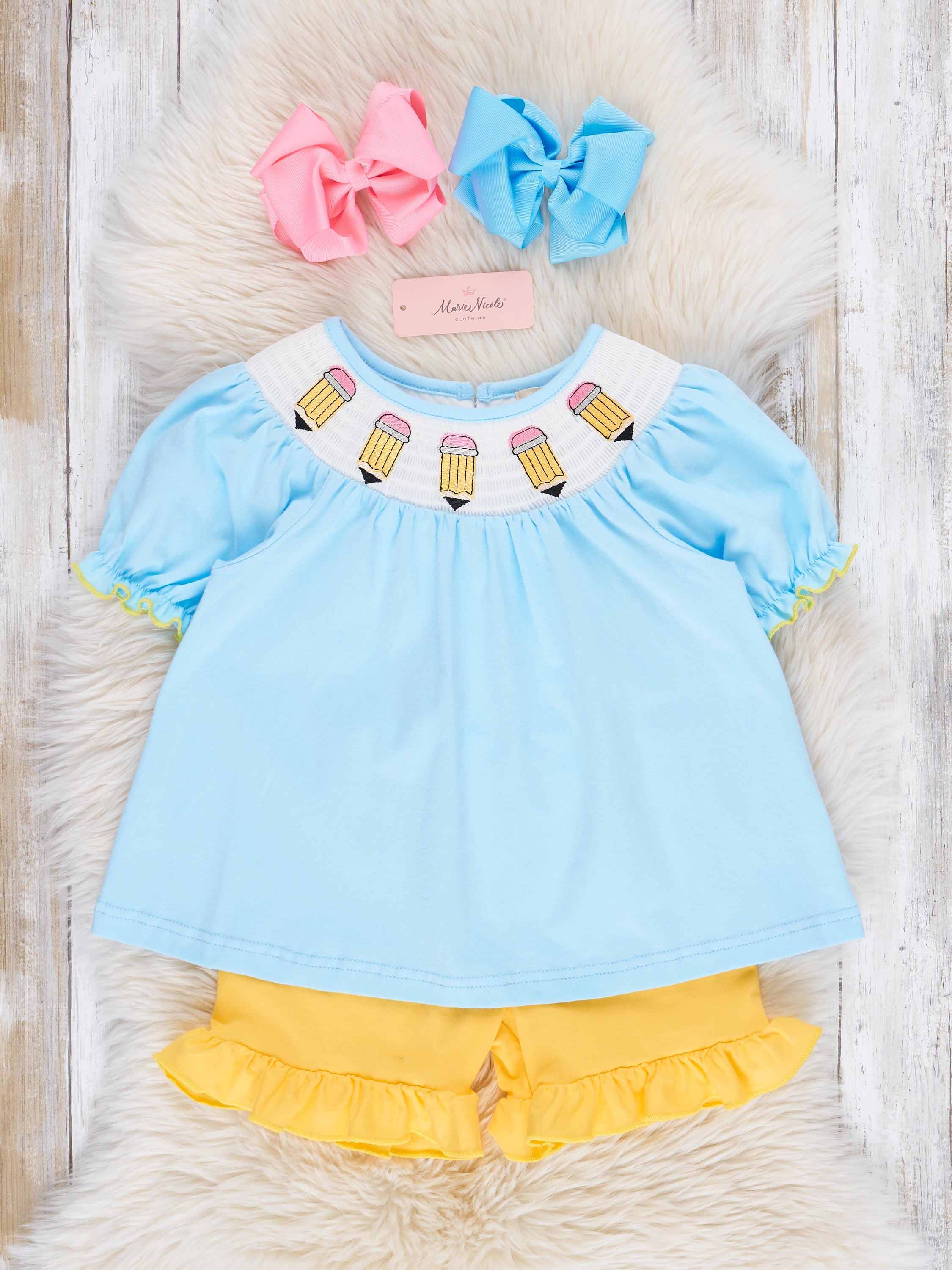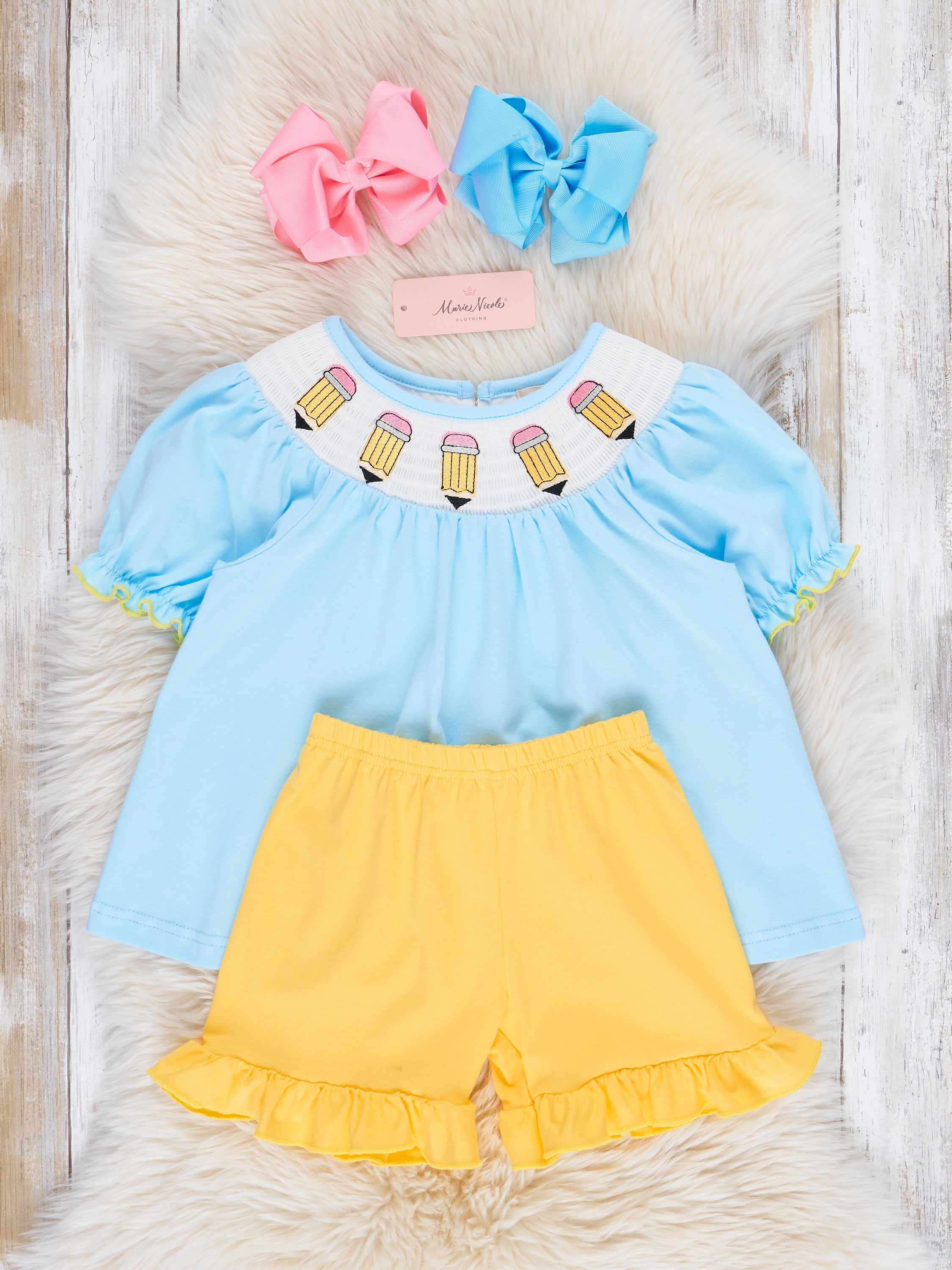 Blue & Yellow Smocked "Mama's Girl" Outfit