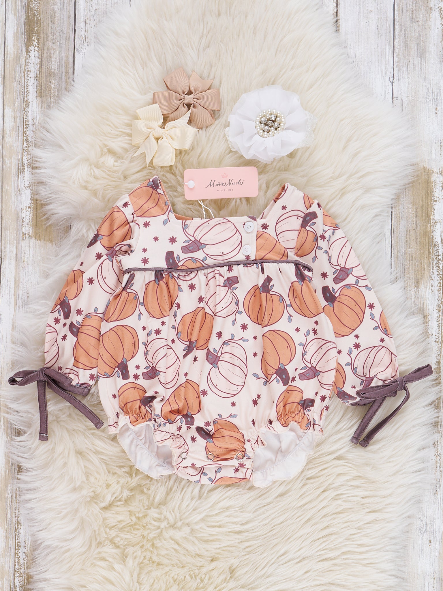 Bow Sleeve Pumpkins Romper