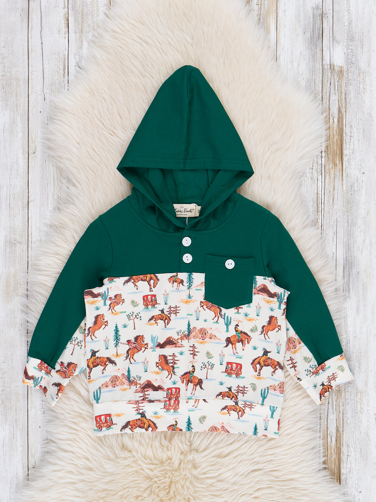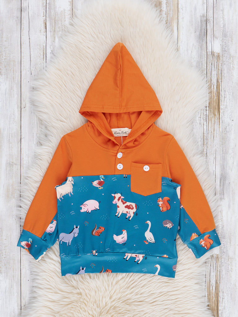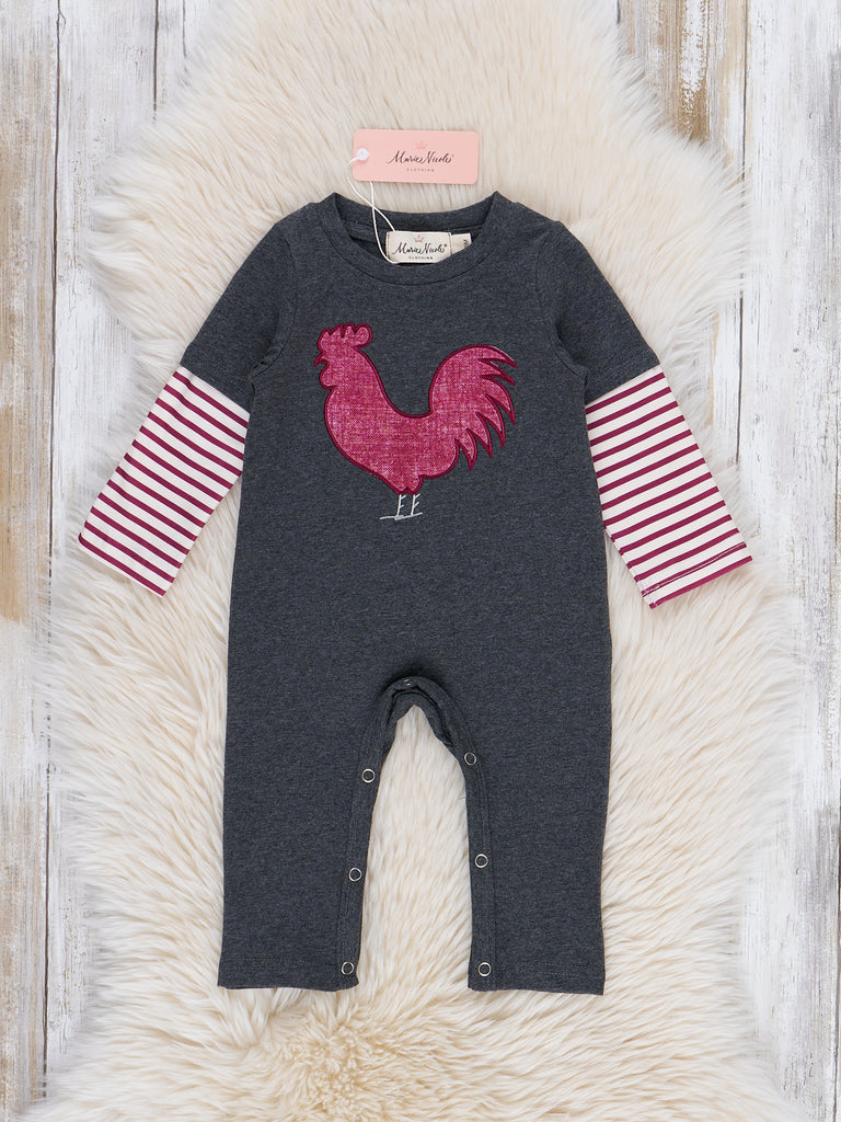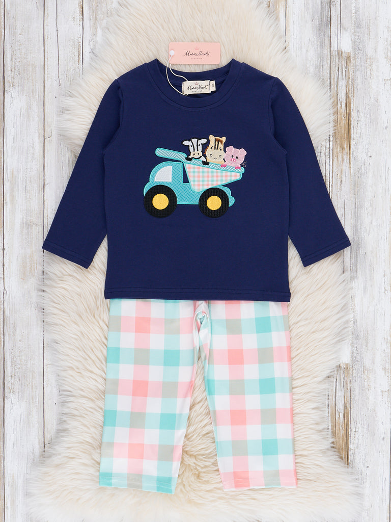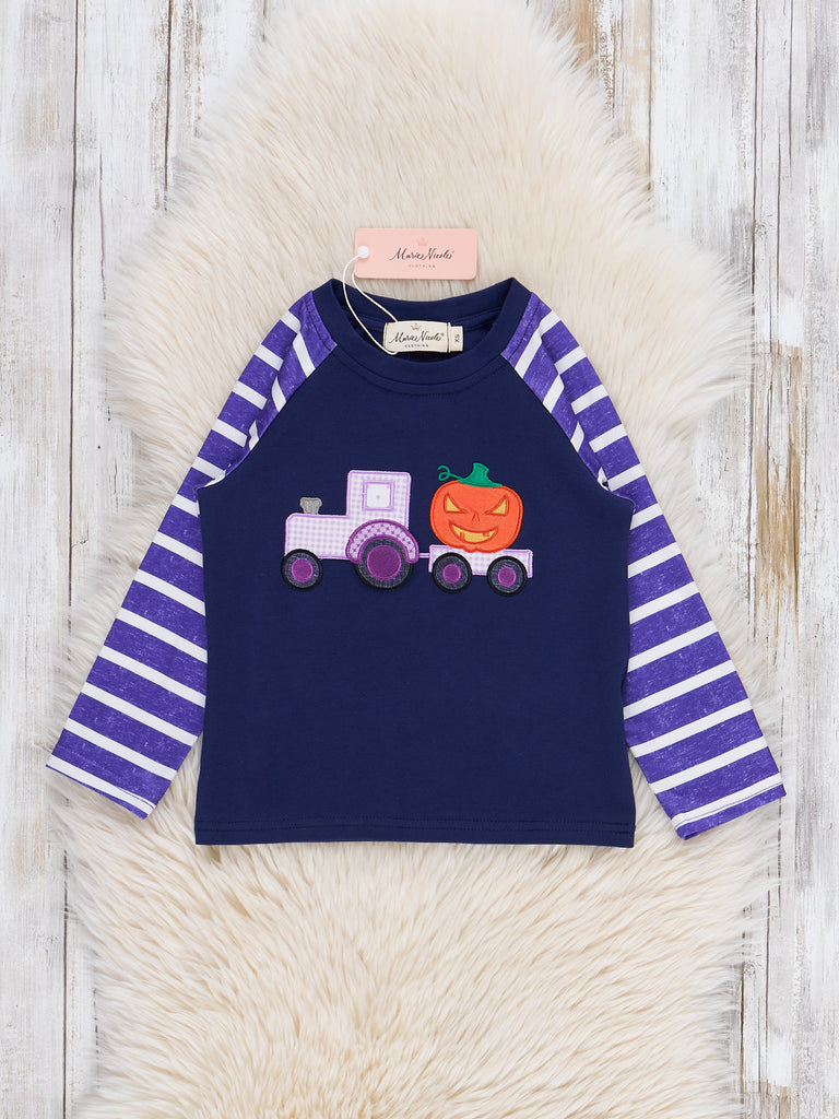 Coral & Teal Embroidered Triceratops Raglan Shirt