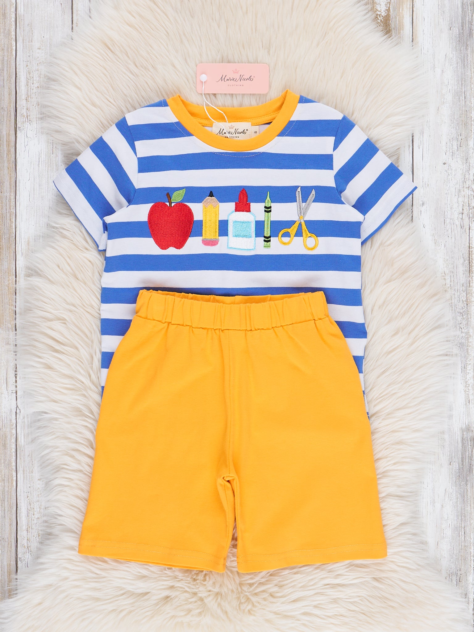 Blue & Green Striped "Moon & Back" Bloomers Outfit